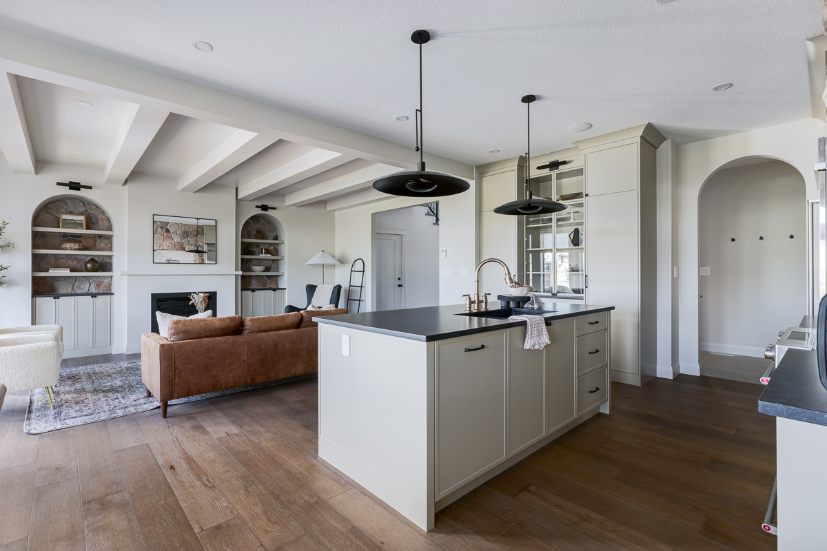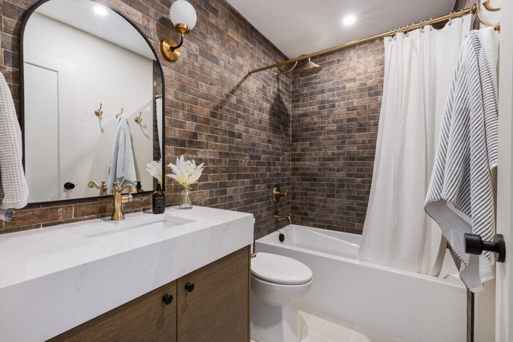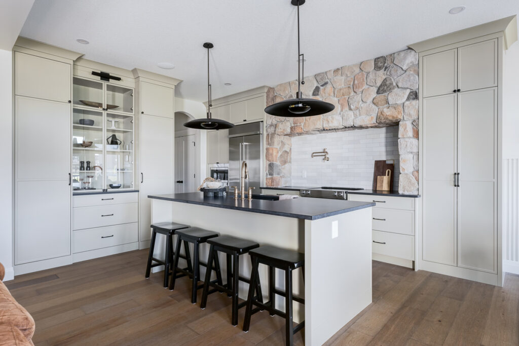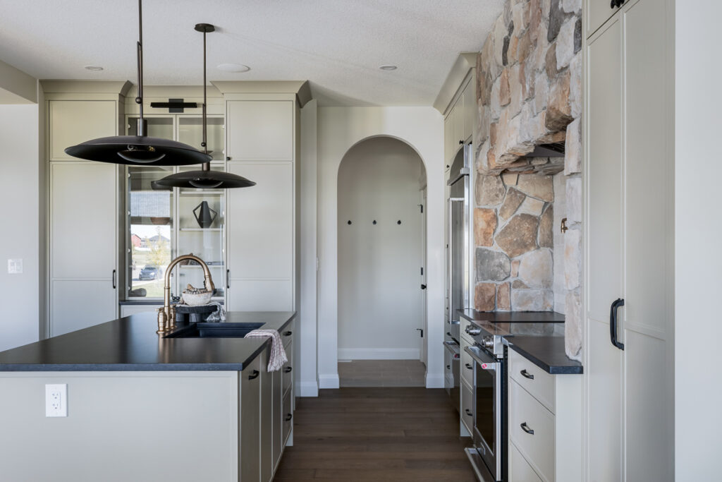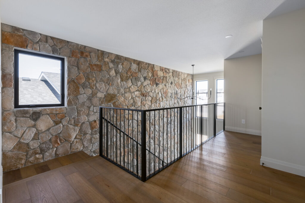 This custom home is filled with detail and high-end finishes. It has a modern, yet traditional, and European vibe. There is an abundance of high-end, earthy finishes used. These include waterproof hardwood, cultured stone walls, brick walls, and beautiful neutral tiles used throughout. Every detail has been meticulously designed and executed.