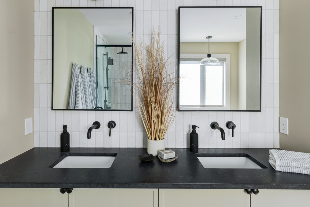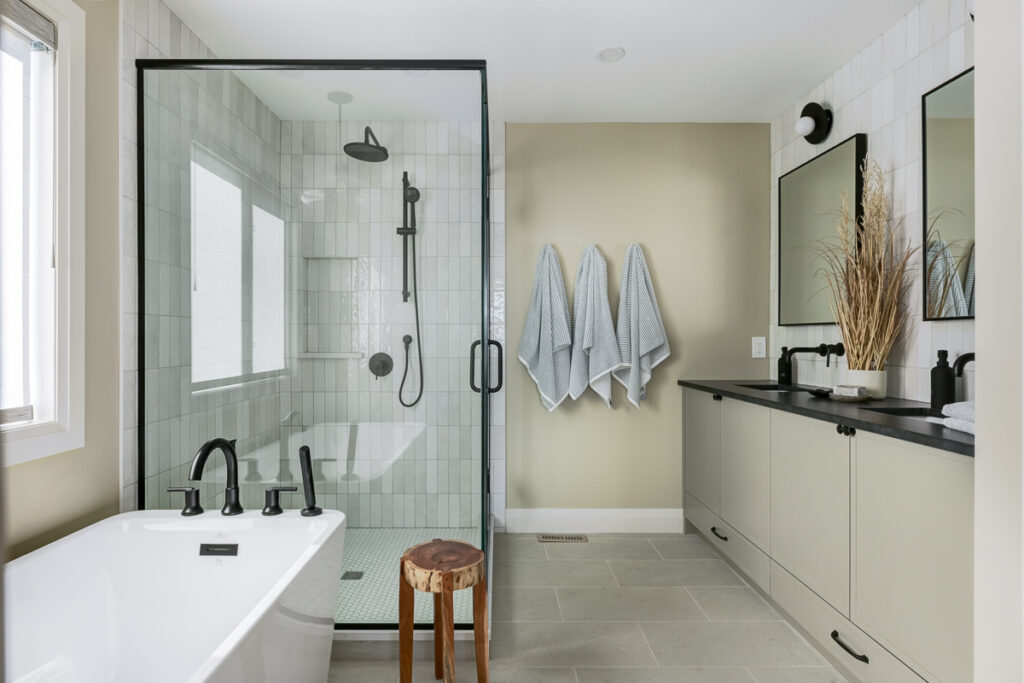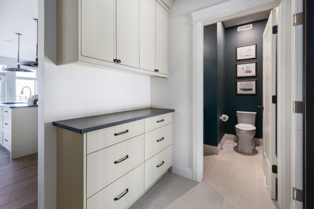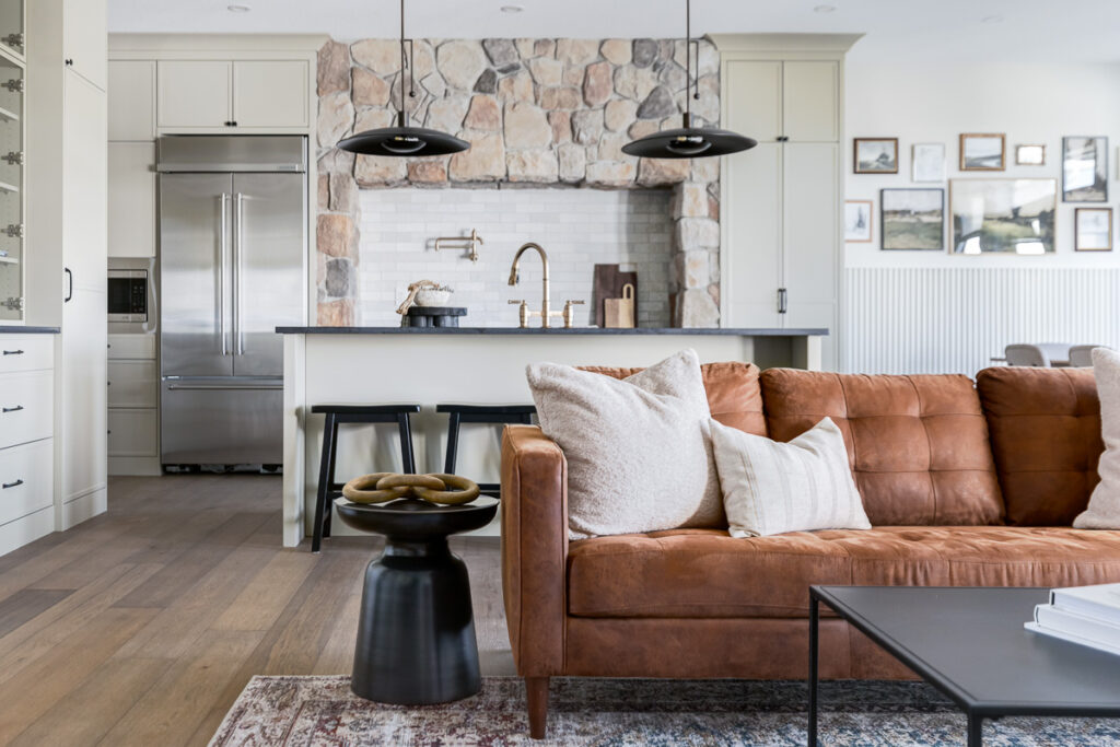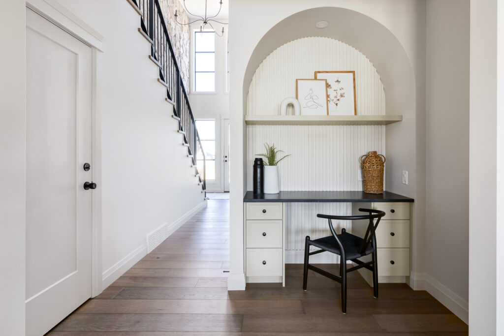 This custom home is filled with detail and high-end finishes. It has a modern, yet traditional, and European vibe. There is an abundance of high-end, earthy finishes used. These include waterproof hardwood, cultured stone walls, brick walls, and beautiful neutral tiles used throughout. Every detail has been meticulously designed and executed.