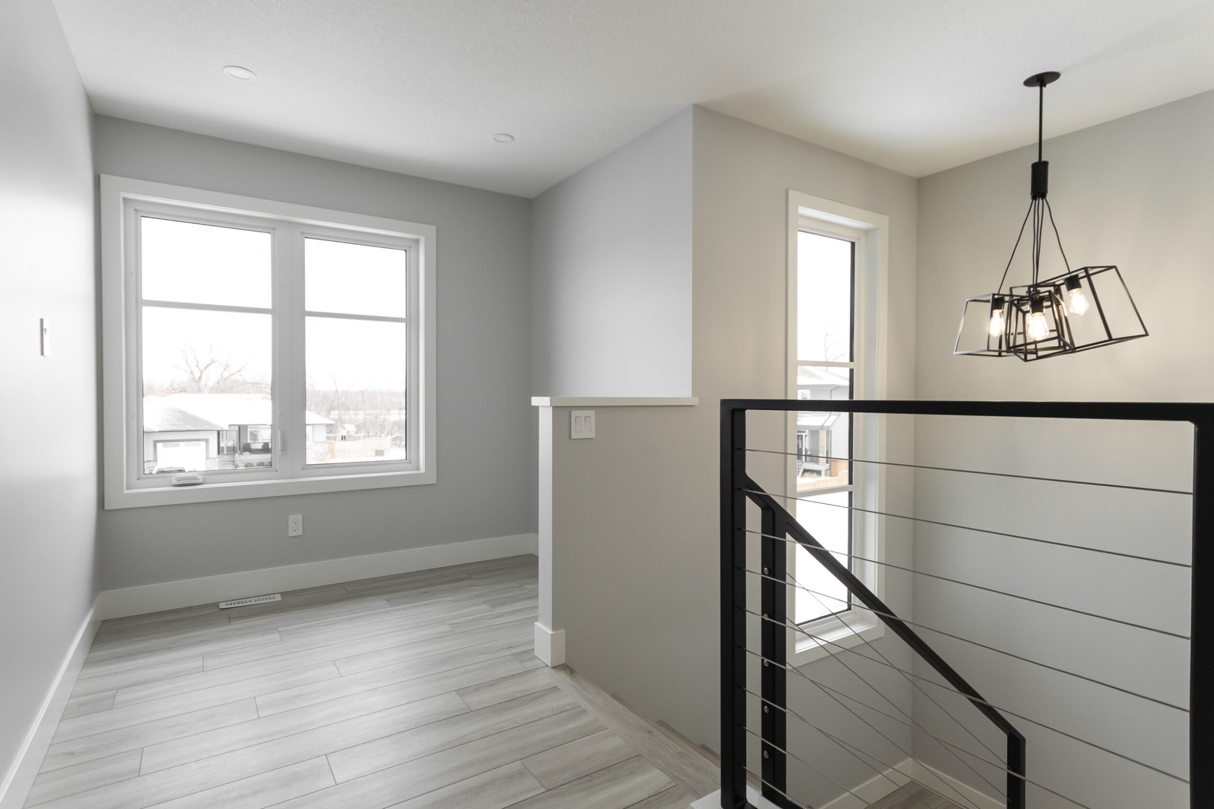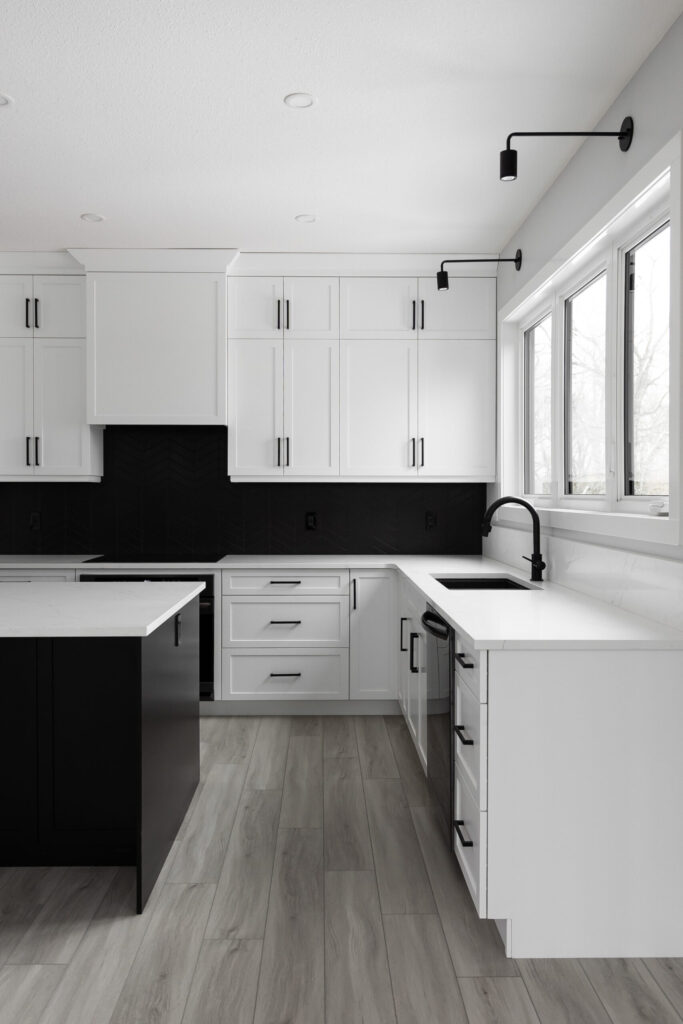 Beautiful home with lots of contrasting black and white detailing. Spacious and perfect for a family.