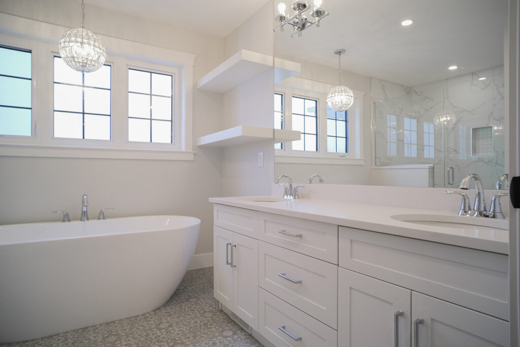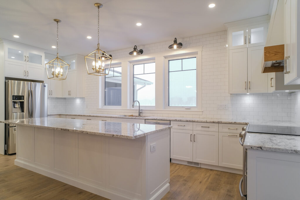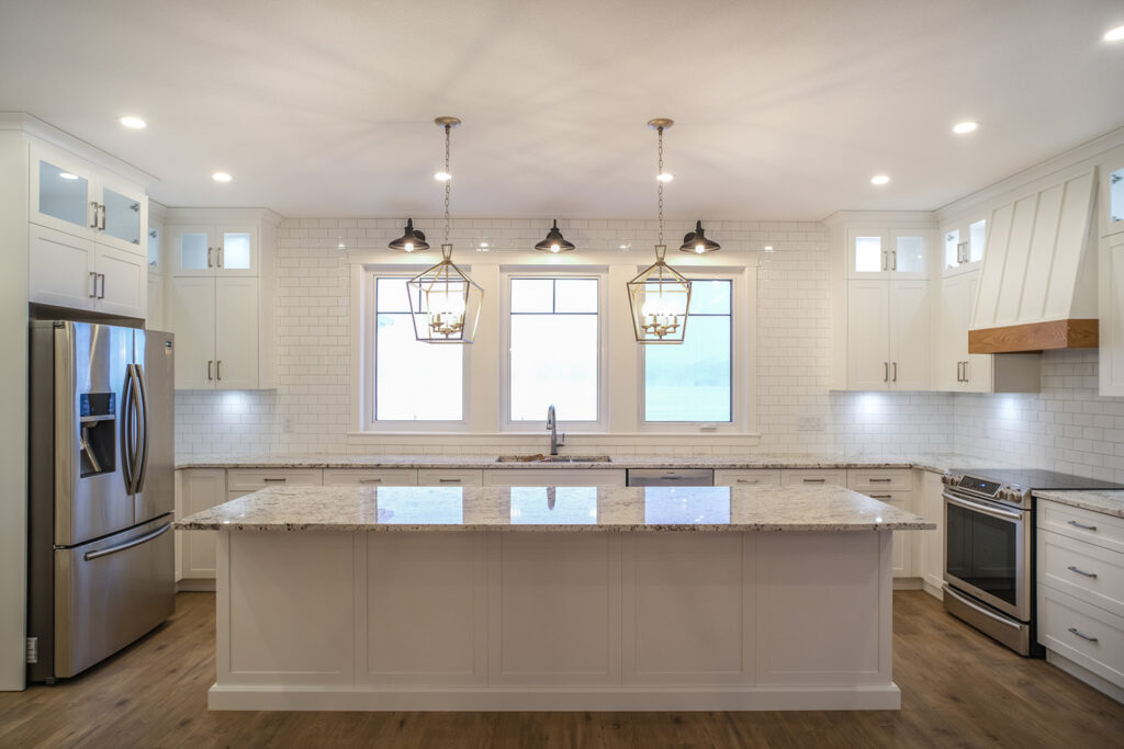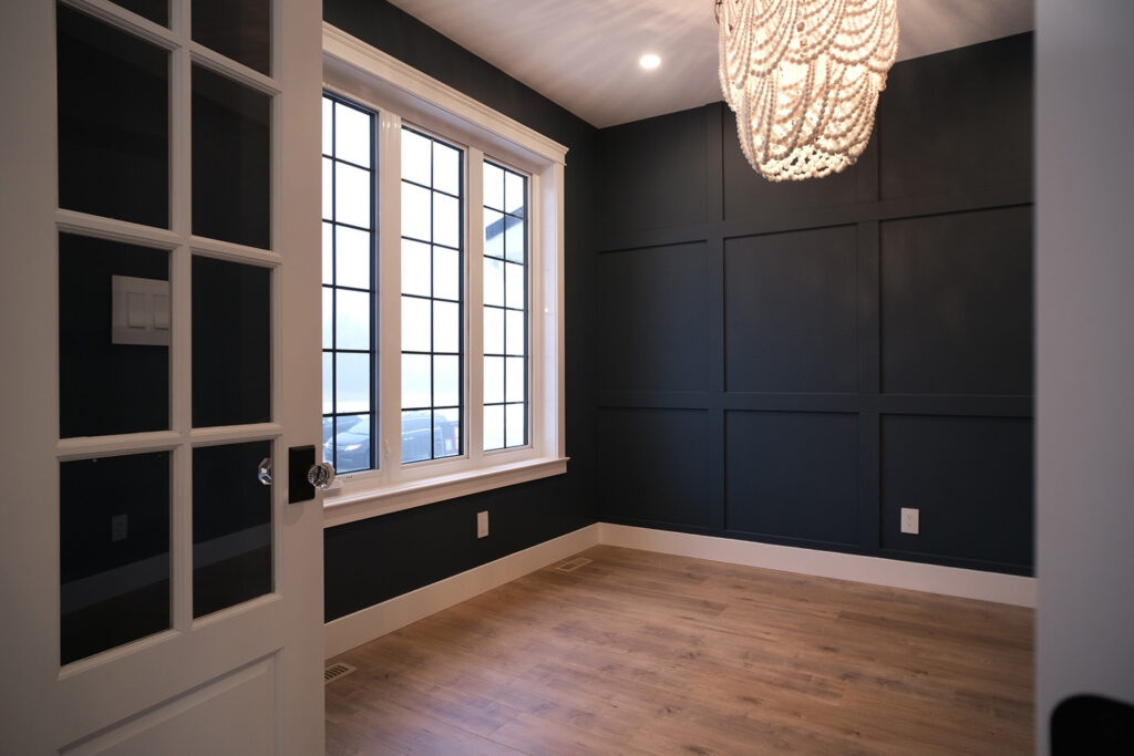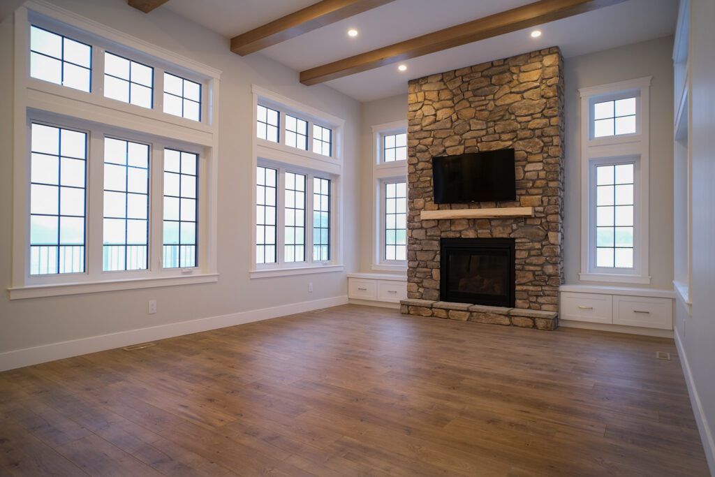 This expansive custom home was finished over two months early and features custom woodwork, exposed beams, and a large kitchen. The most impressive aspect of this build was how all the sub trades worked together to complete the work in time. The designer’s plans were exhaustive and detailed, which helped with scope of works, helping establish everyone’s role and being able to complete in a timely fashion.