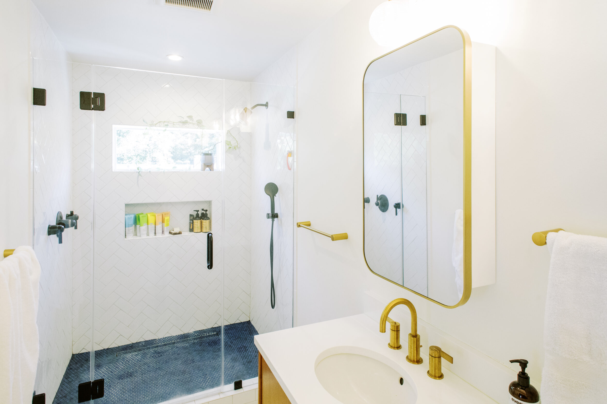 While matte black held the spotlight for years, we are now seeing a return to warmth with brushed bronze, champagne gold, and copper. Mixing these finishes adds a curated, designer feel to the space. No longer a no-no but instead a resounding yes, please!