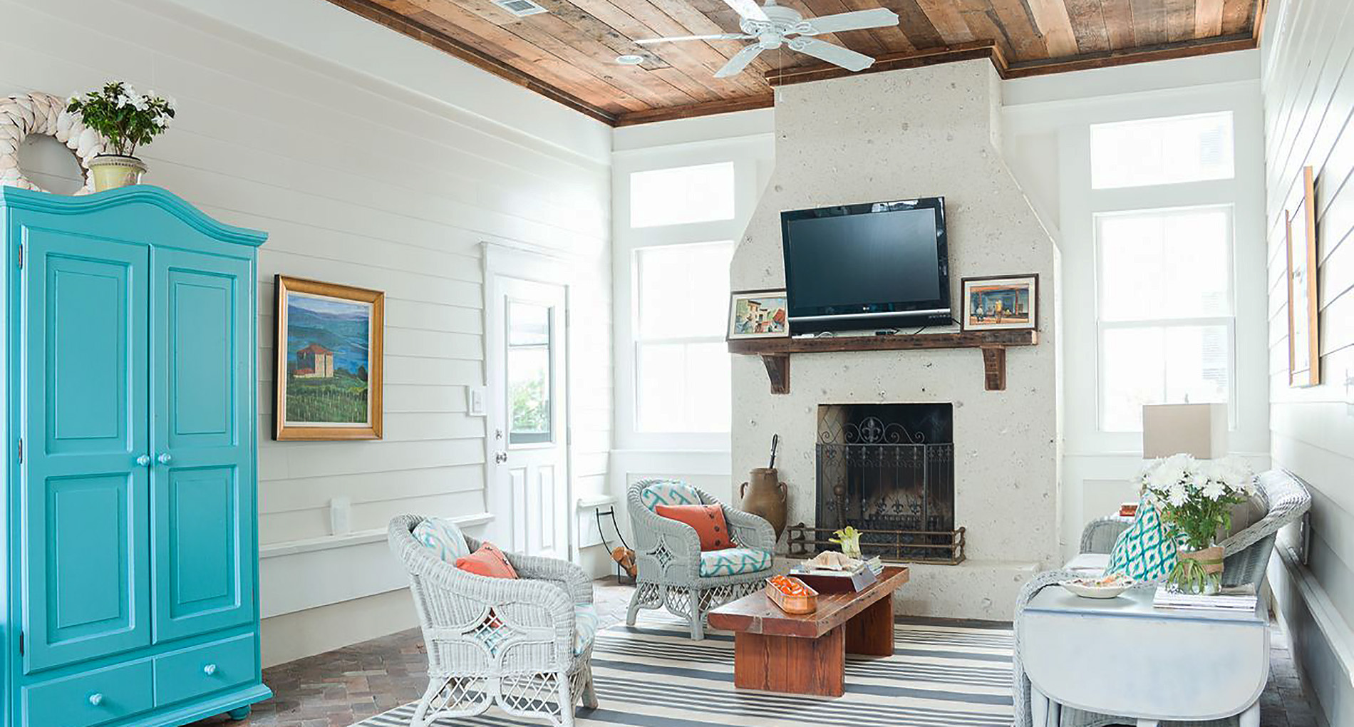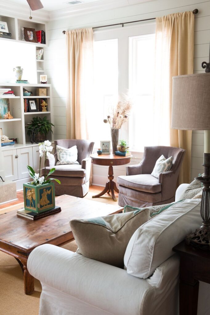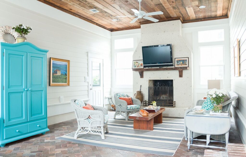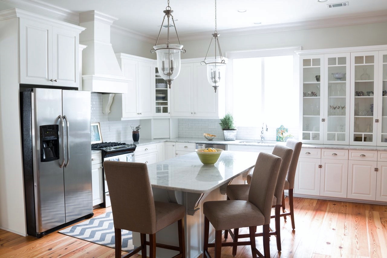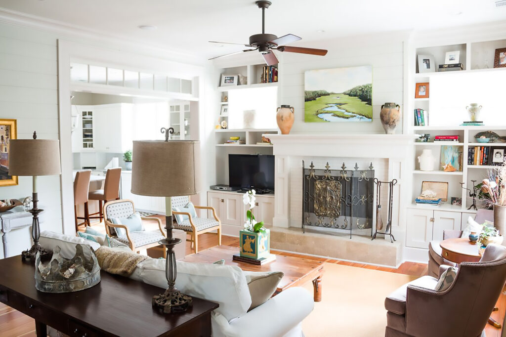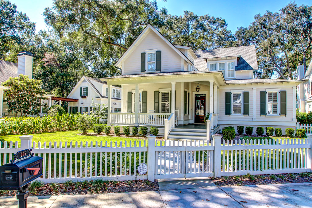 This custom home has a cottage style throughout with a traditional style kitchen and living space.