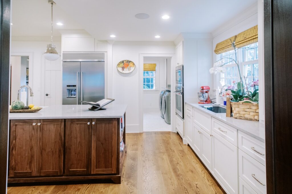 Reconfigured kitchen, laundry room, and primary suite on the first floor. Updated second floor bathroom. New floors throughout home.