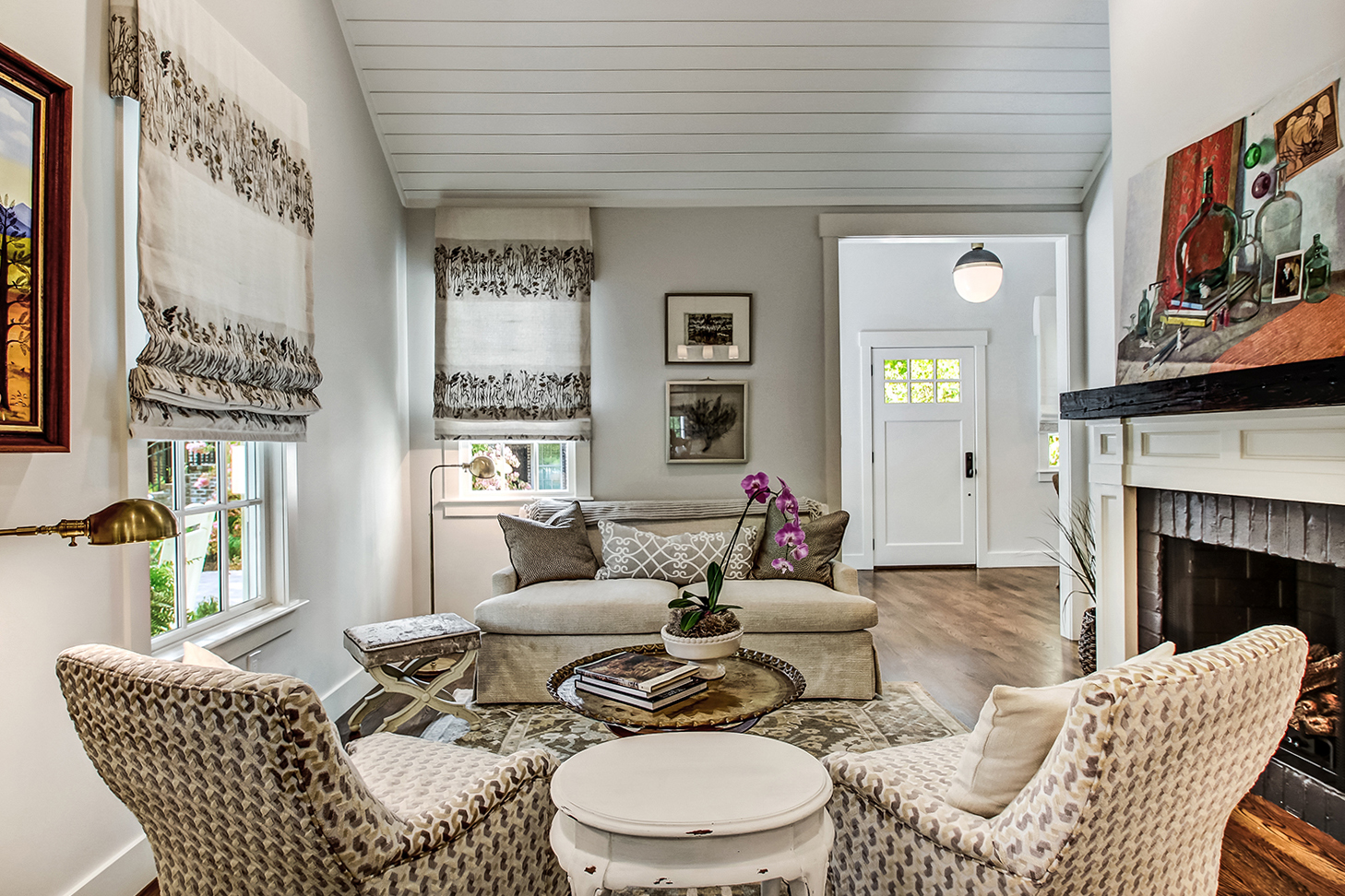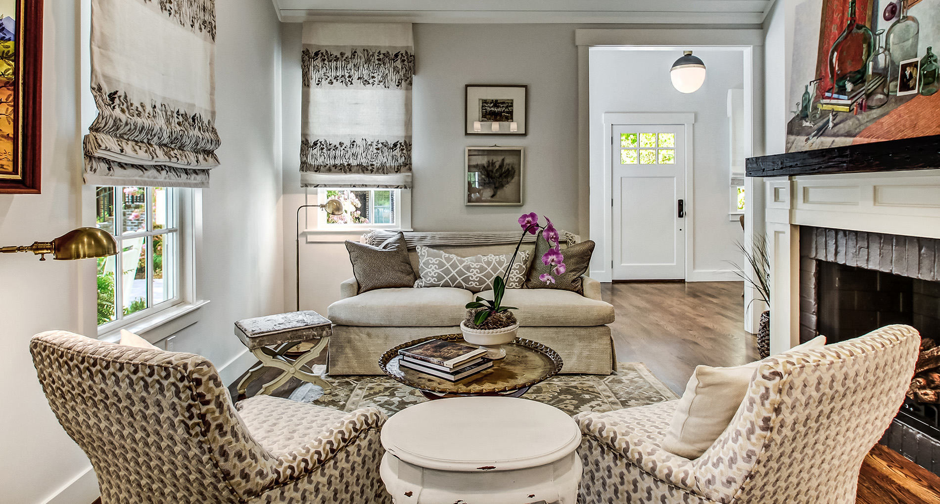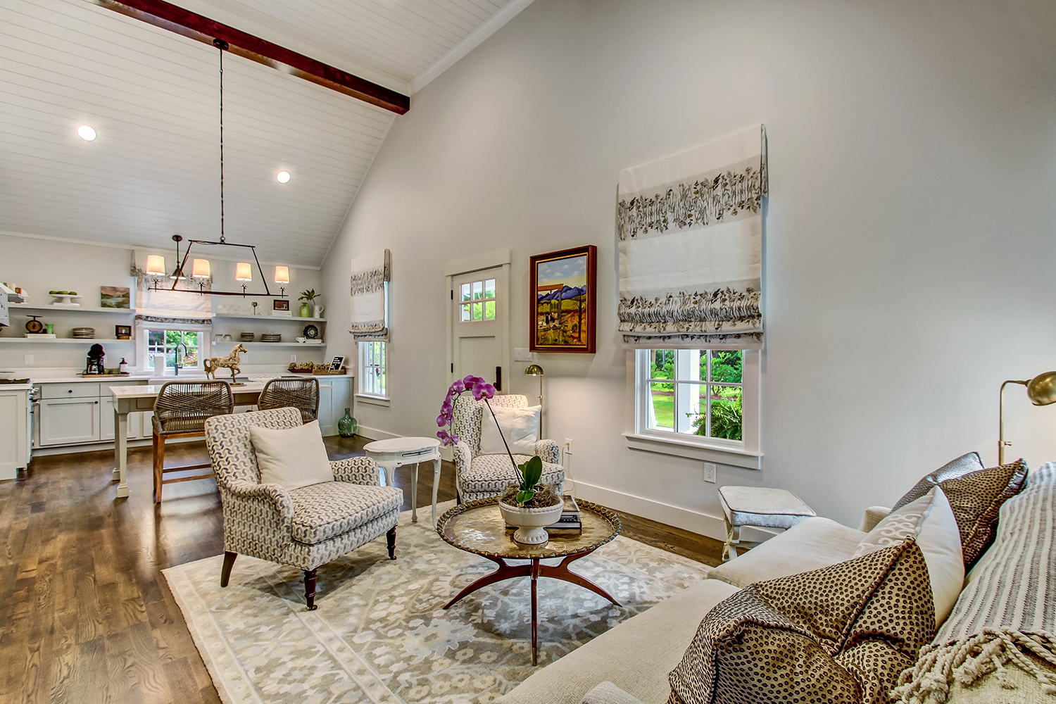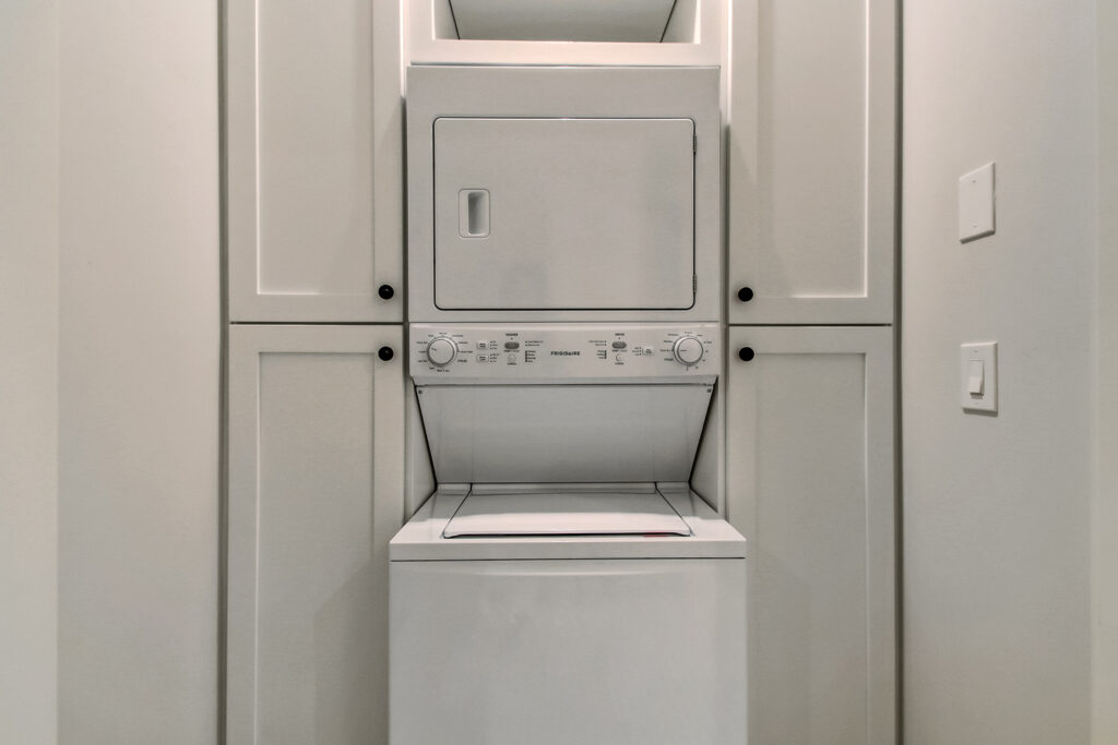 The exterior of our McAlpin Guest Cottage is just as sweet as can be! The vertical siding, metal roof, brick staircase, gas lanterns, and separate driveway create the absolute highest level in amenities for guests. The luxury continues inside with a built-in window seat and a full kitchen.