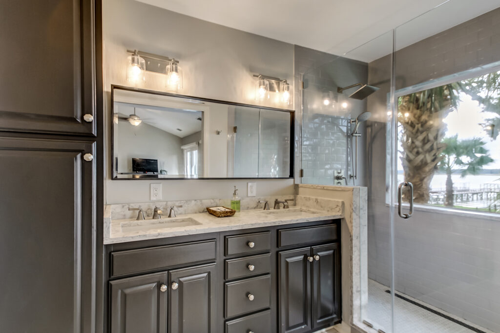 We did a renovation of the master bedroom and bathroom. We also did an addition of a secret wine room off the game room. This room is accessed with a hidden bookshelf door.