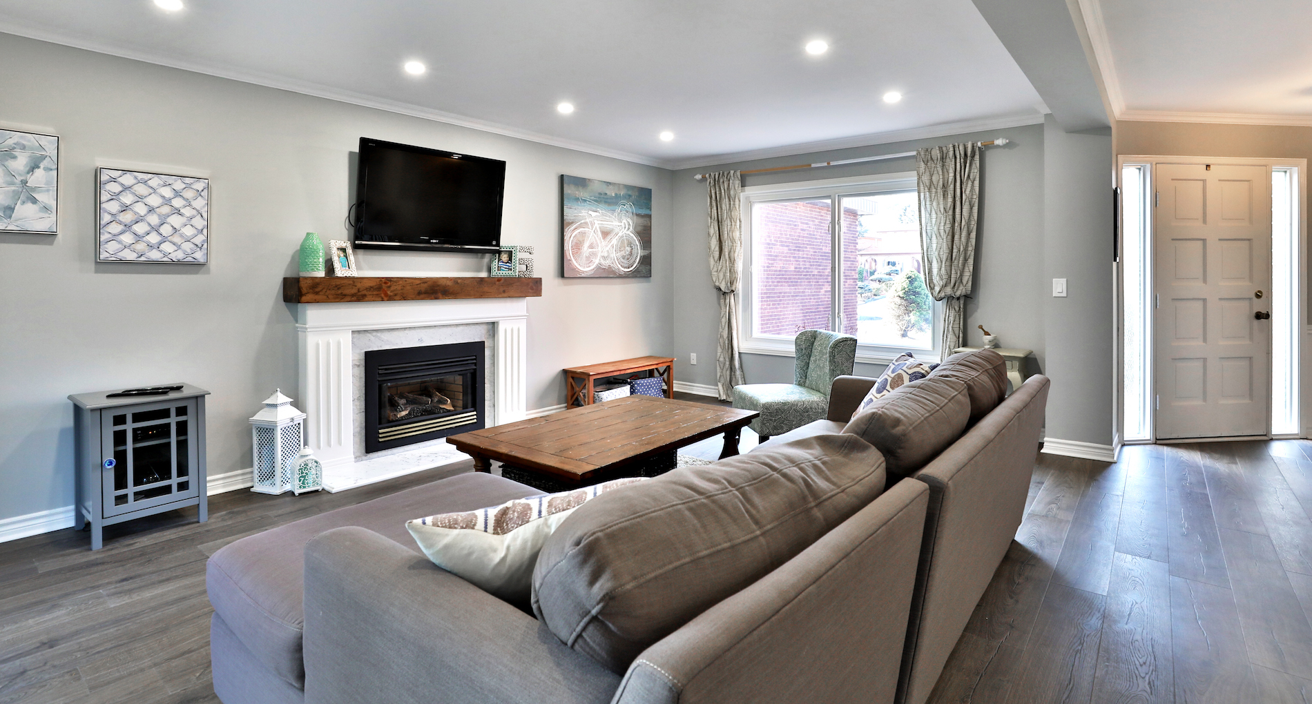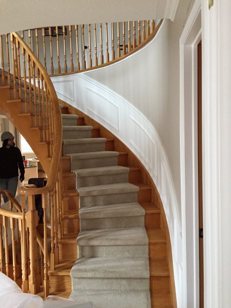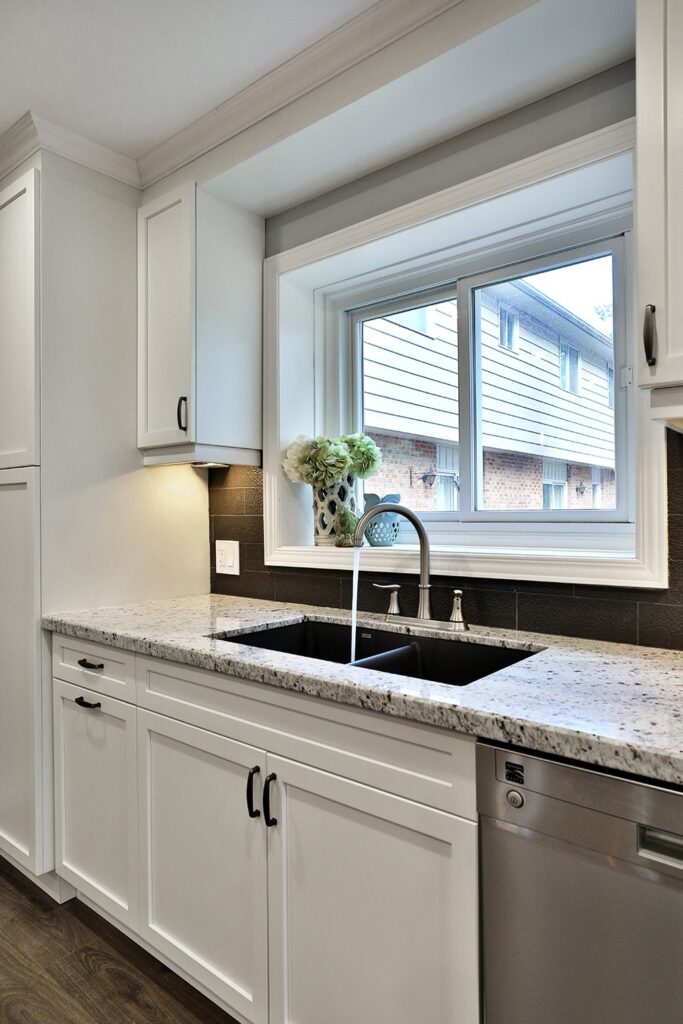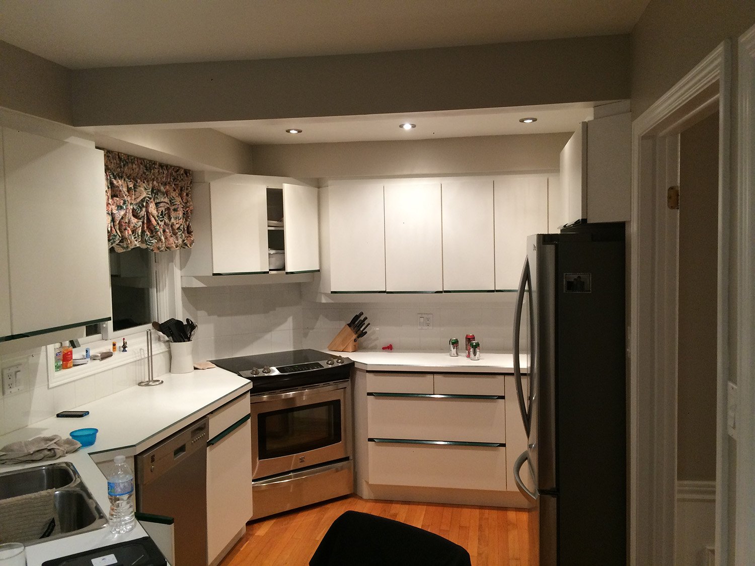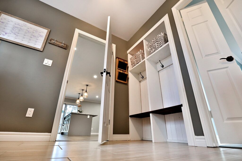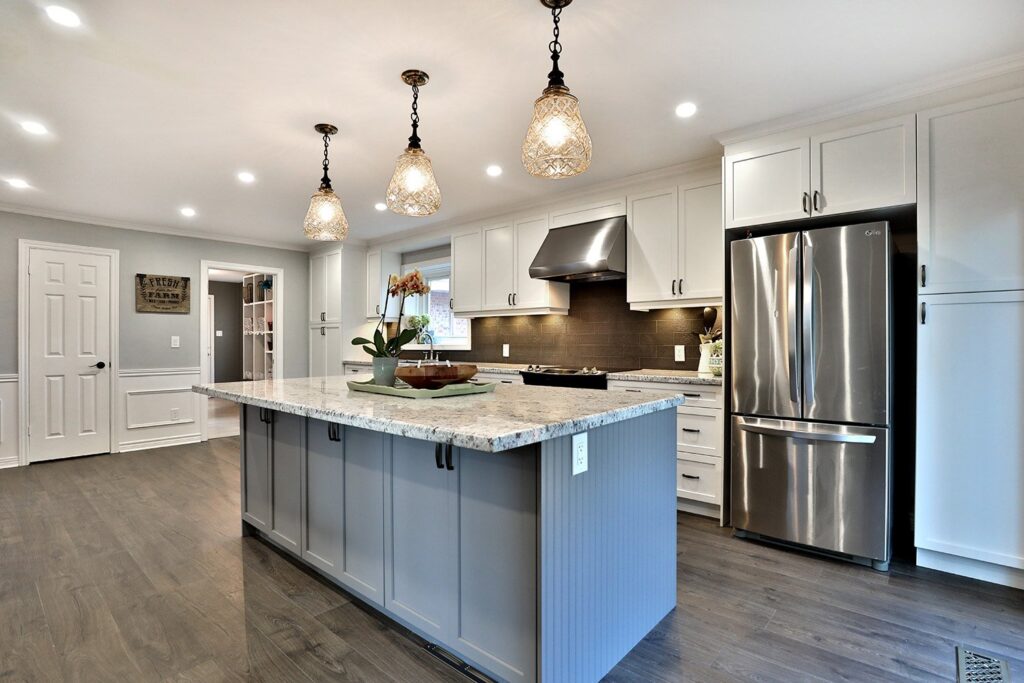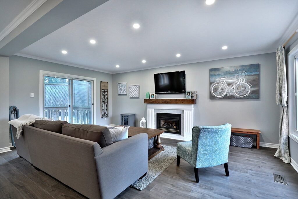 The main floor had the traditional rooms segregated from each other. Two load-bearing walls were removed and replaced with a beautifully functional open and airy main floor for this family of four to enjoy. The load-bearing wall between the kitchen and dining room was replaced with a steel beam located in the ceiling to provide a seamless transition.