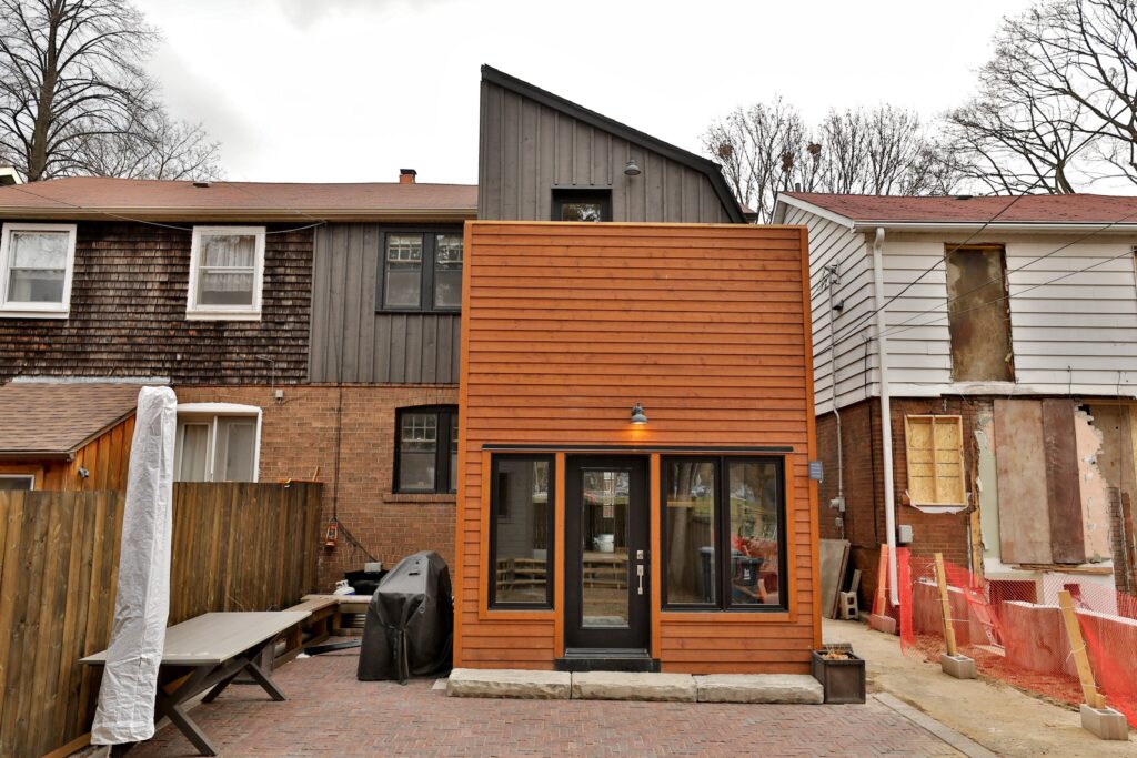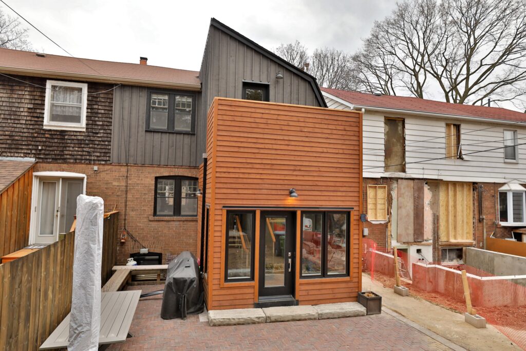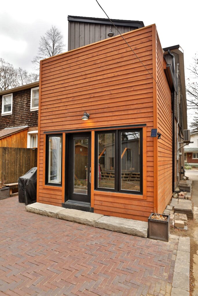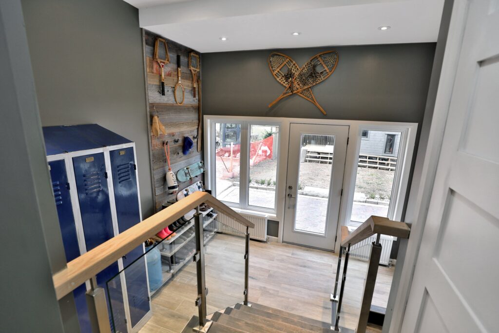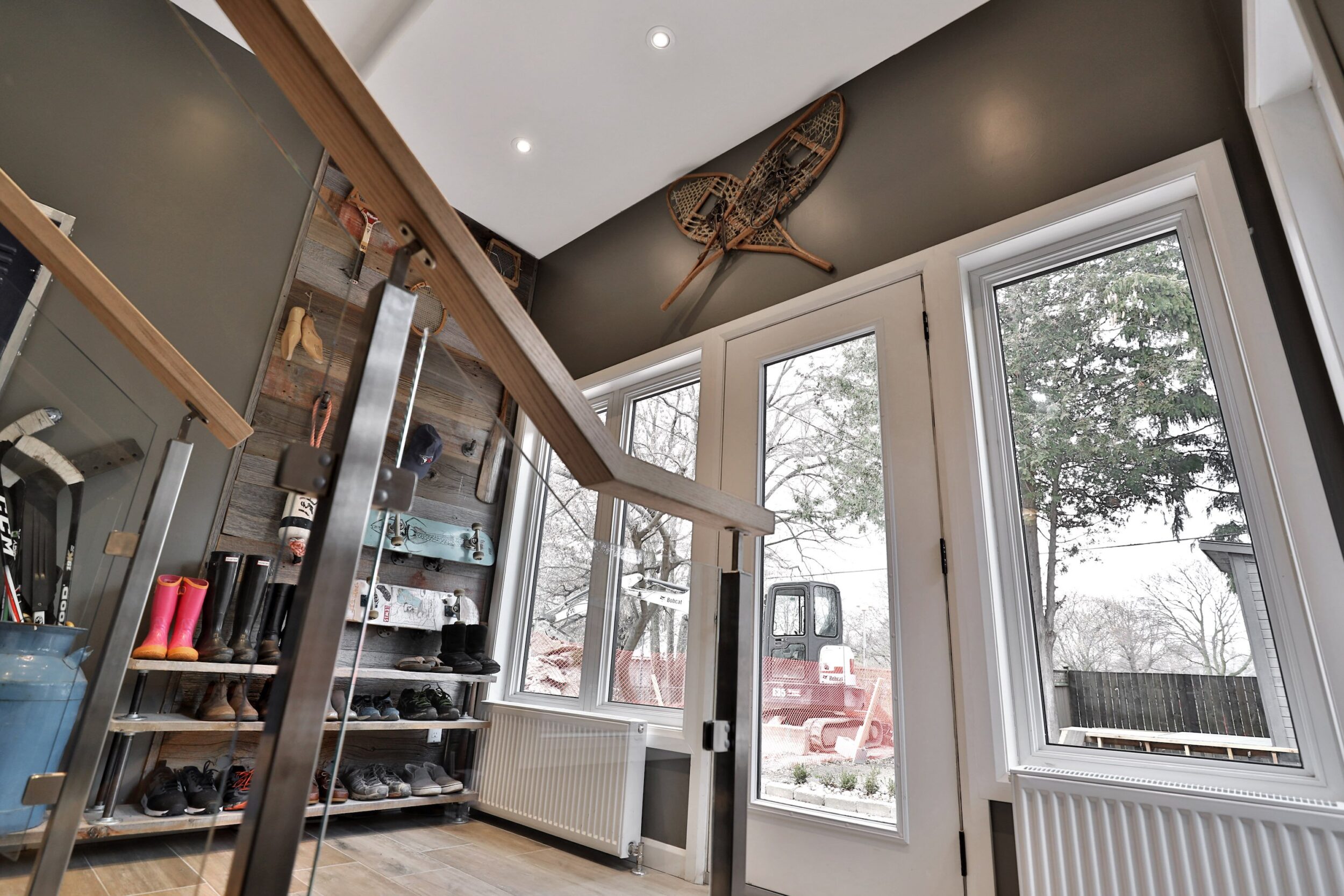 This mudroom is a wonderful addition to this semi-detached home providing a clean entry and storage for this active family. The addition also supported the renovation of the master bedroom and added an ensuite bathroom oasis and walk-in closet leading to a private 2nd floor balcony. The exterior design is finished with a combination of Board & Batten and horizontal wood siding.