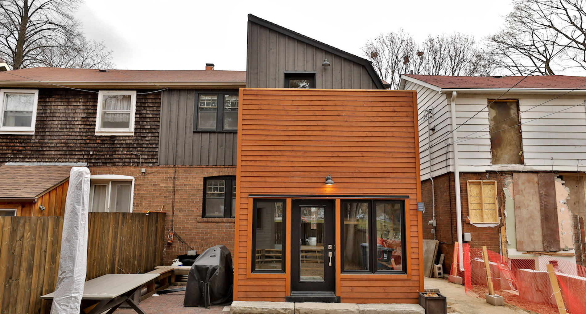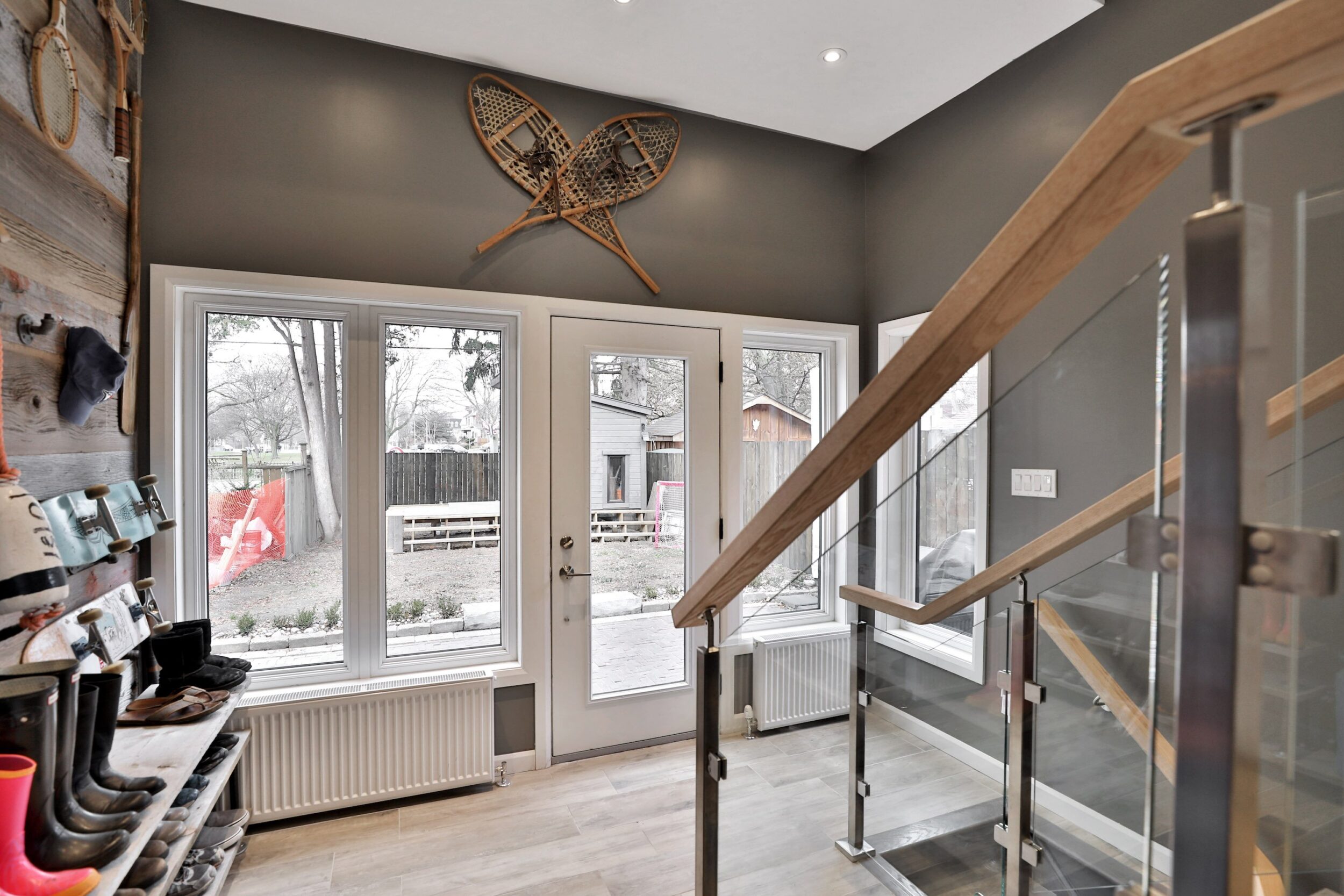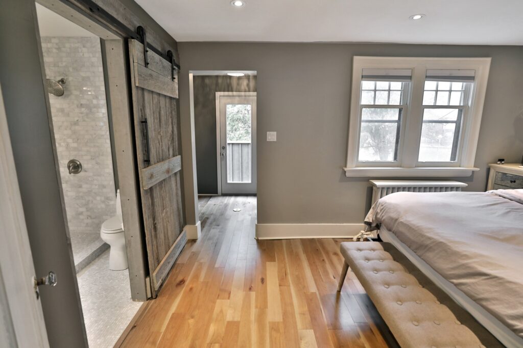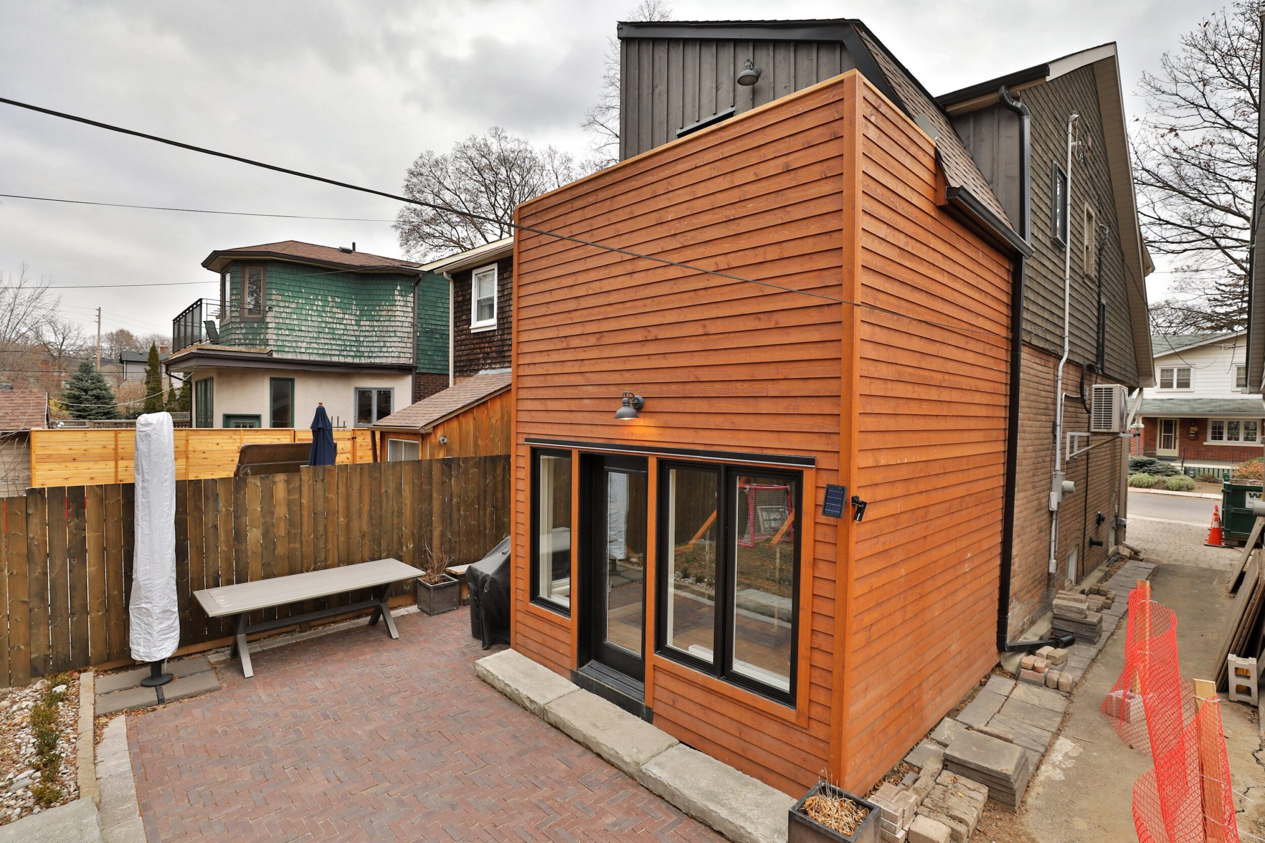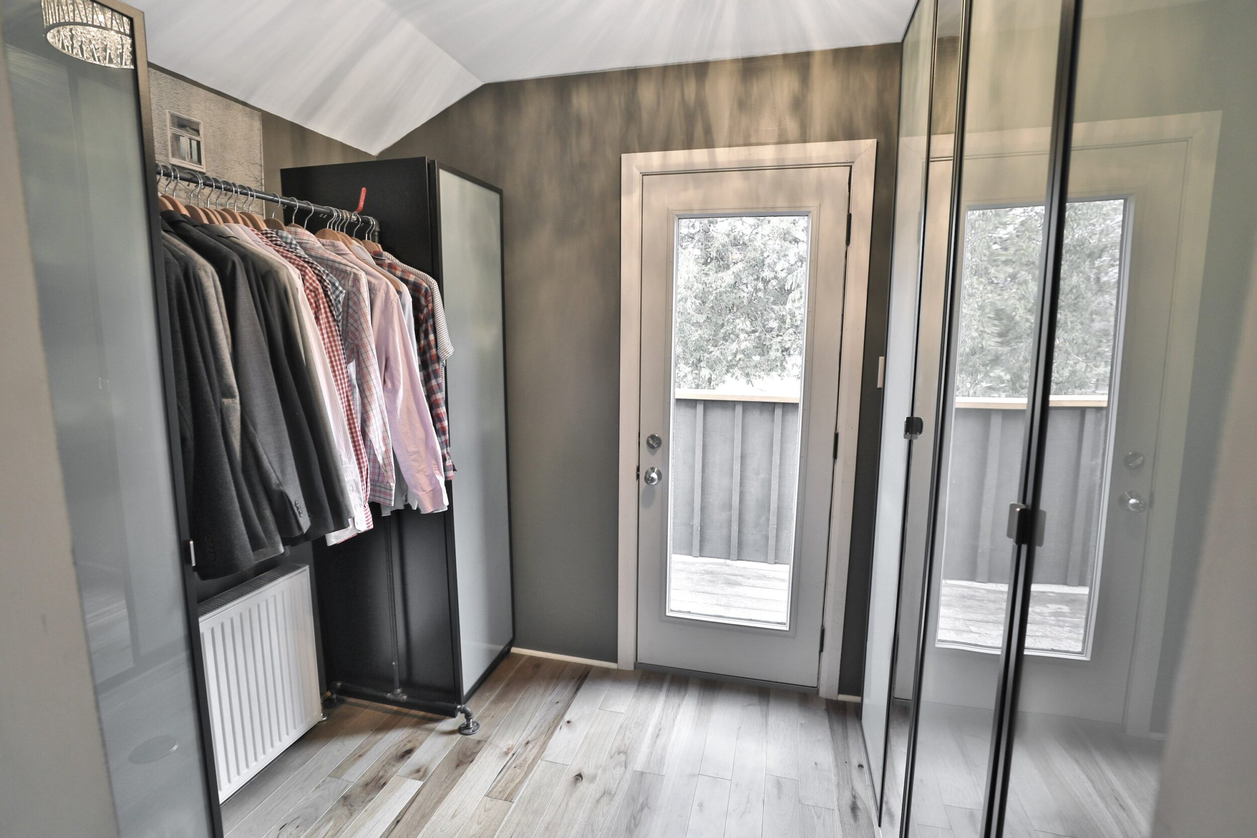 This mudroom is a wonderful addition to this semi-detached home providing a clean entry and storage for this active family. The addition also supported the renovation of the master bedroom and added an ensuite bathroom oasis and walk-in closet leading to a private 2nd floor balcony. The exterior design is finished with a combination of Board & Batten and horizontal wood siding.