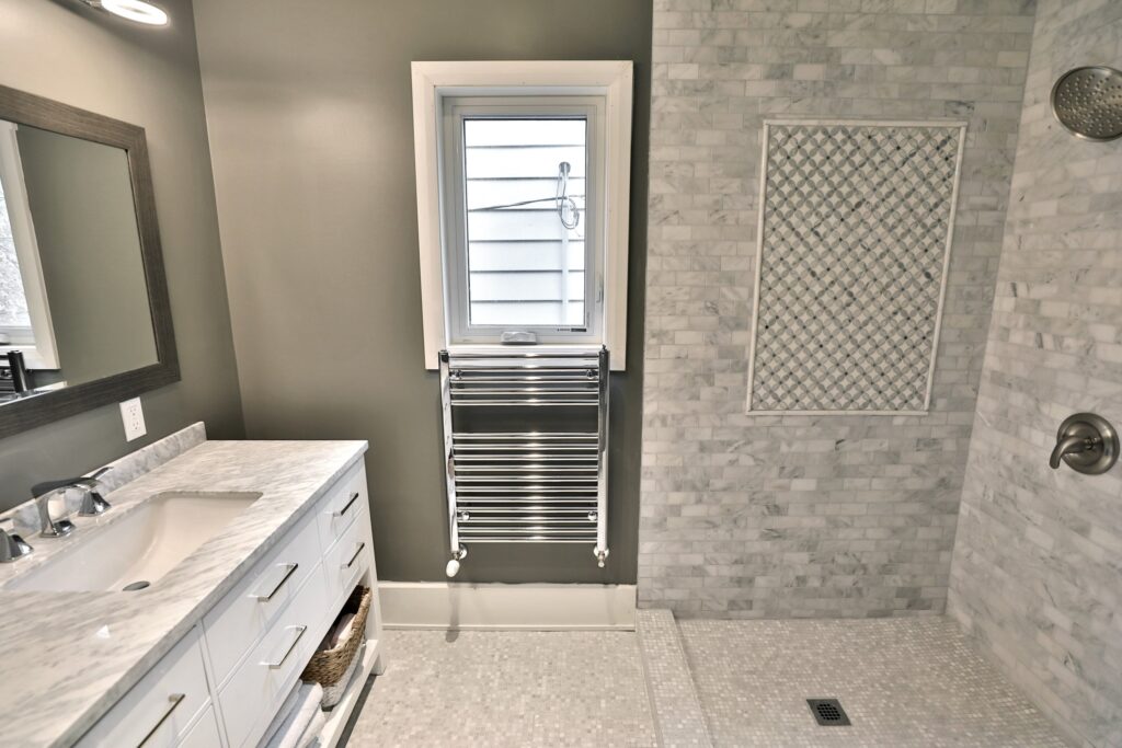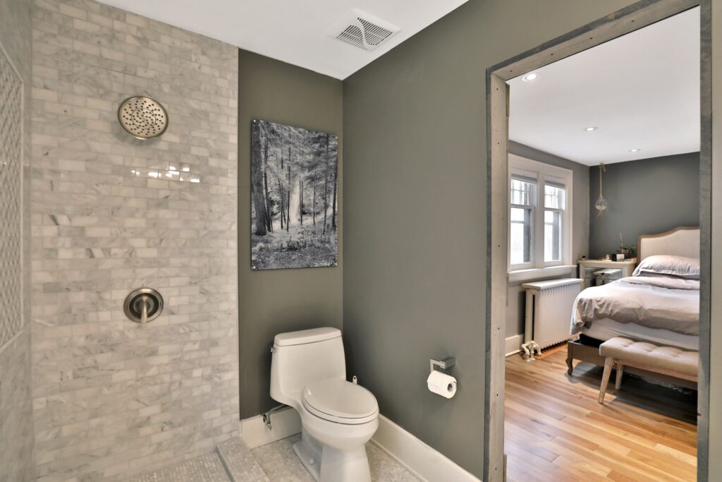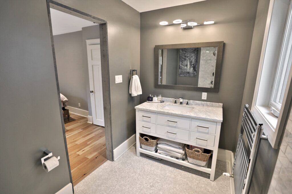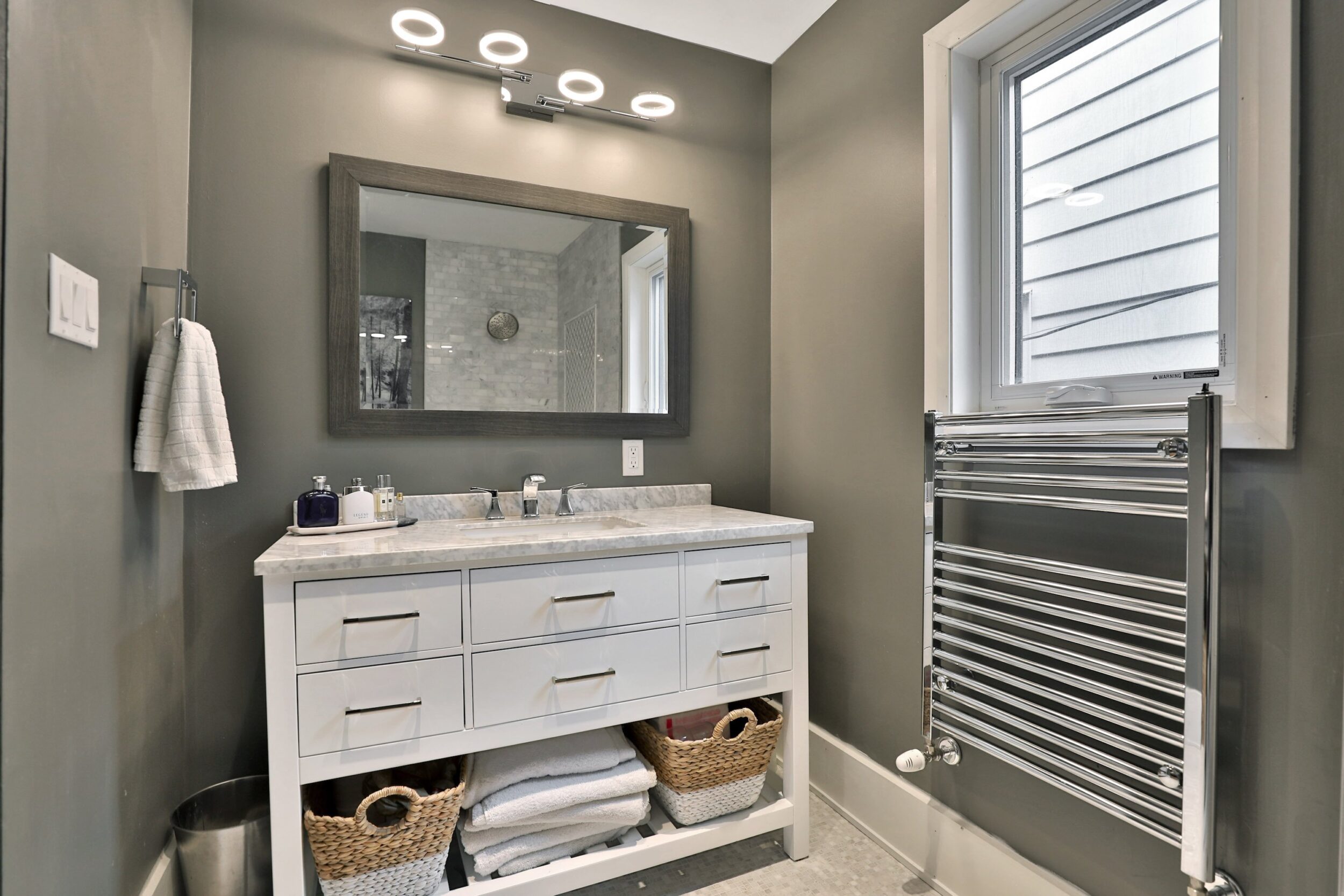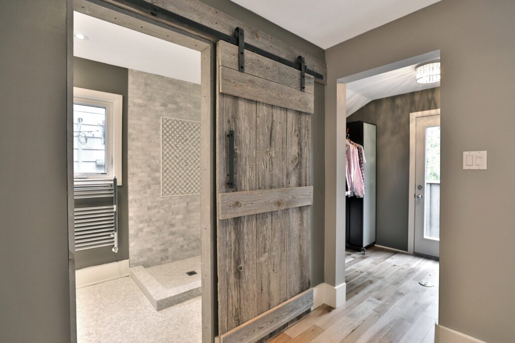 This mudroom is a wonderful addition to this semi-detached home providing a clean entry and storage for this active family. The addition also supported the renovation of the master bedroom and added an ensuite bathroom oasis and walk-in closet leading to a private 2nd floor balcony. The exterior design is finished with a combination of Board & Batten and horizontal wood siding.