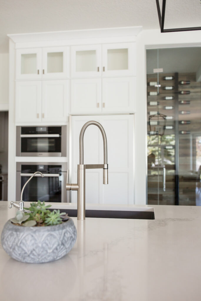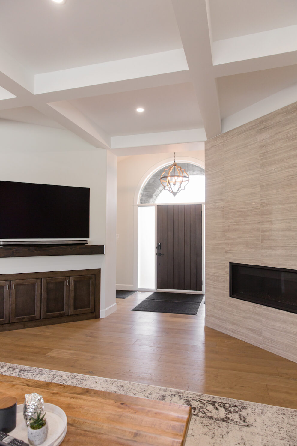 The client’s dad built the house when the client was a teenager. His Dad has lived in it ever since but had become ill with cancer and wanted to downsize. The client, planning on doing an alternate renovation with Alair, decided to purchase the house from the dad and complete a major transformation. We removed glass block and dust rose valances – transforming the interior from dated to modern.