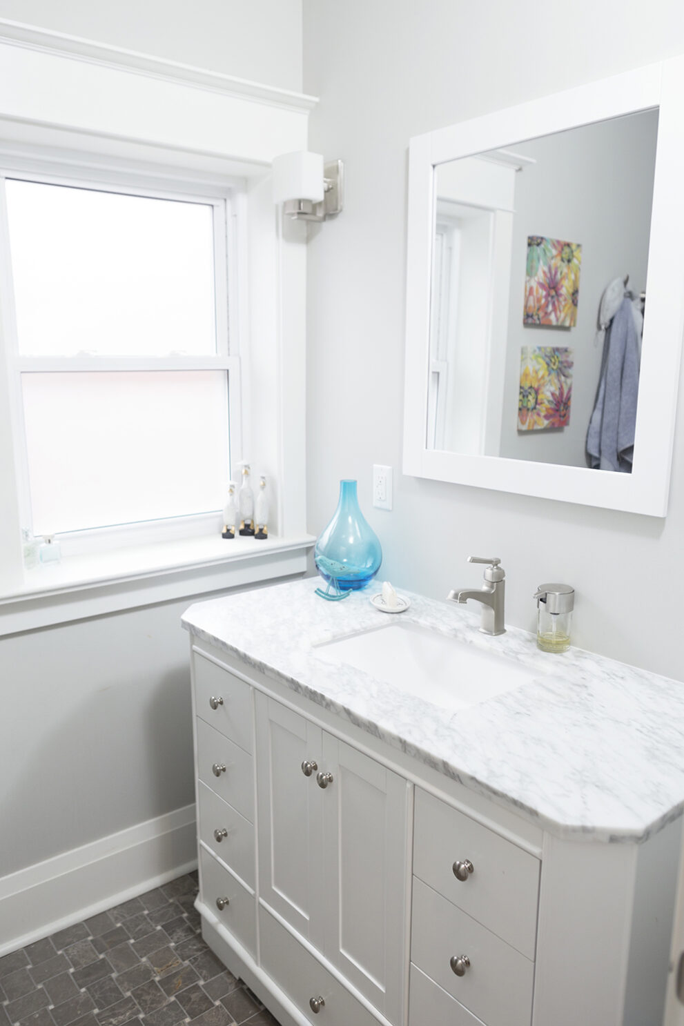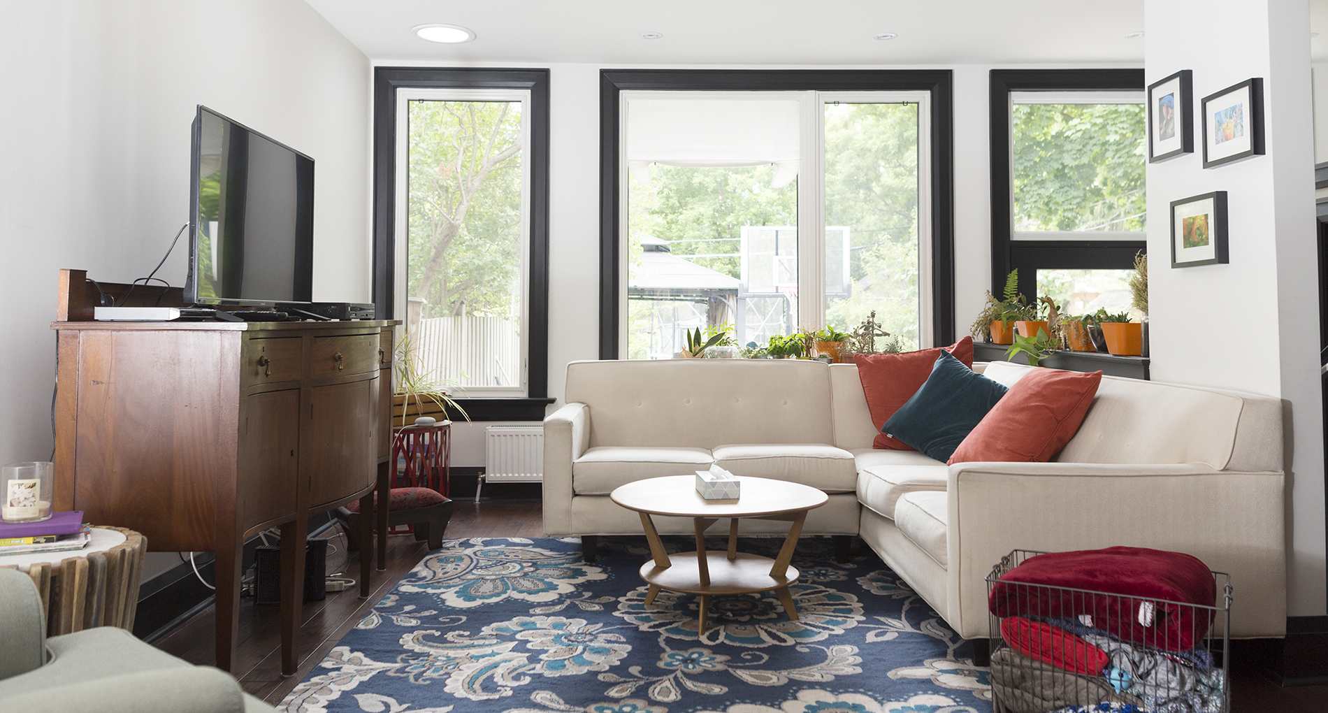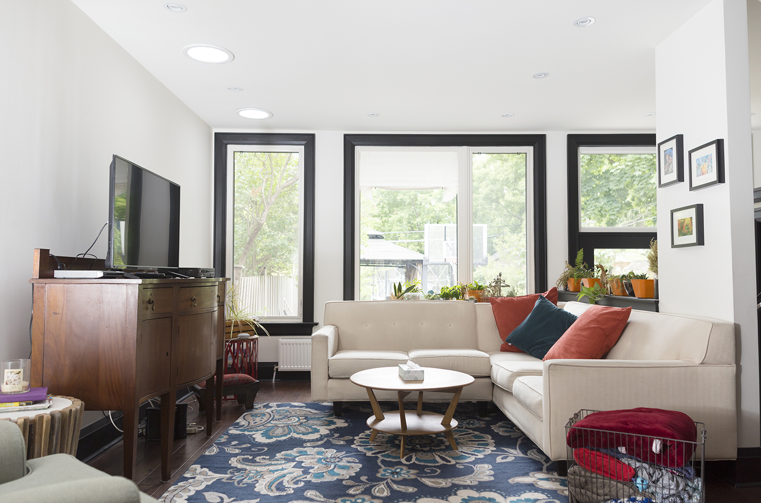 This full home renovation and addition in the West end of Toronto features solar tubes, brining in natural light to brighten up the space.