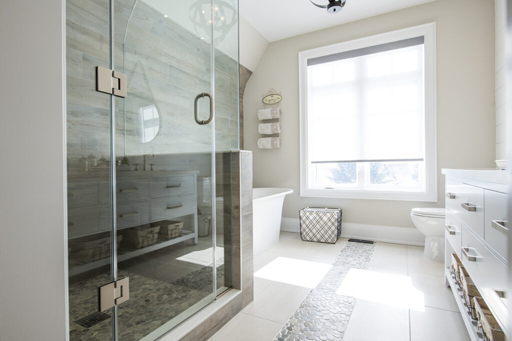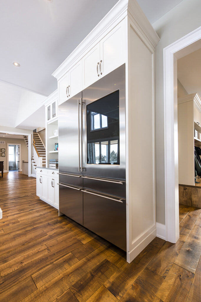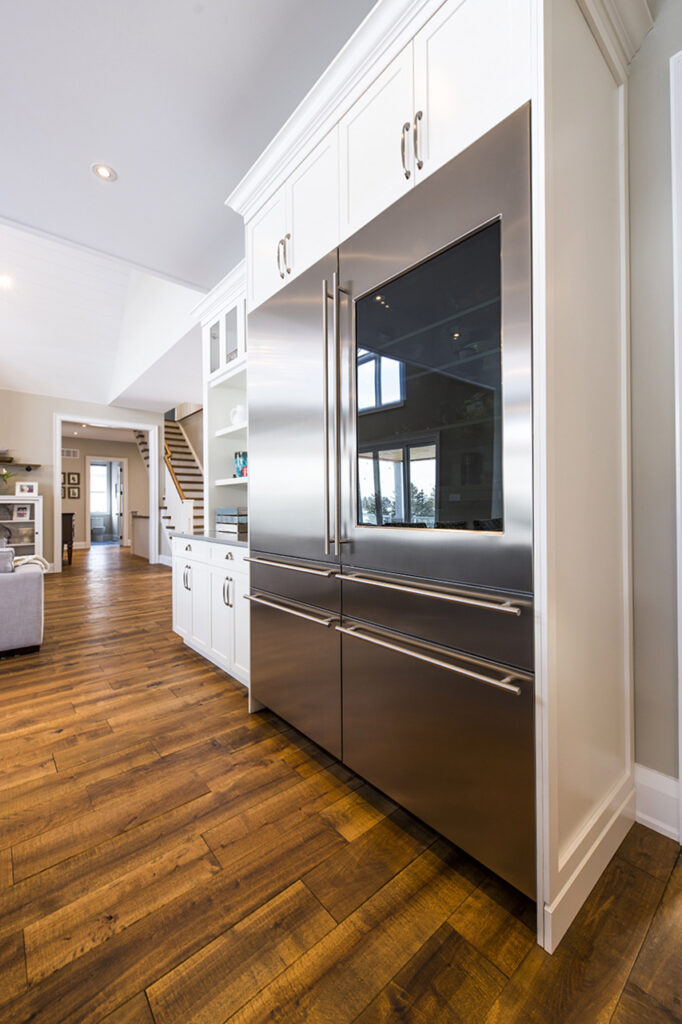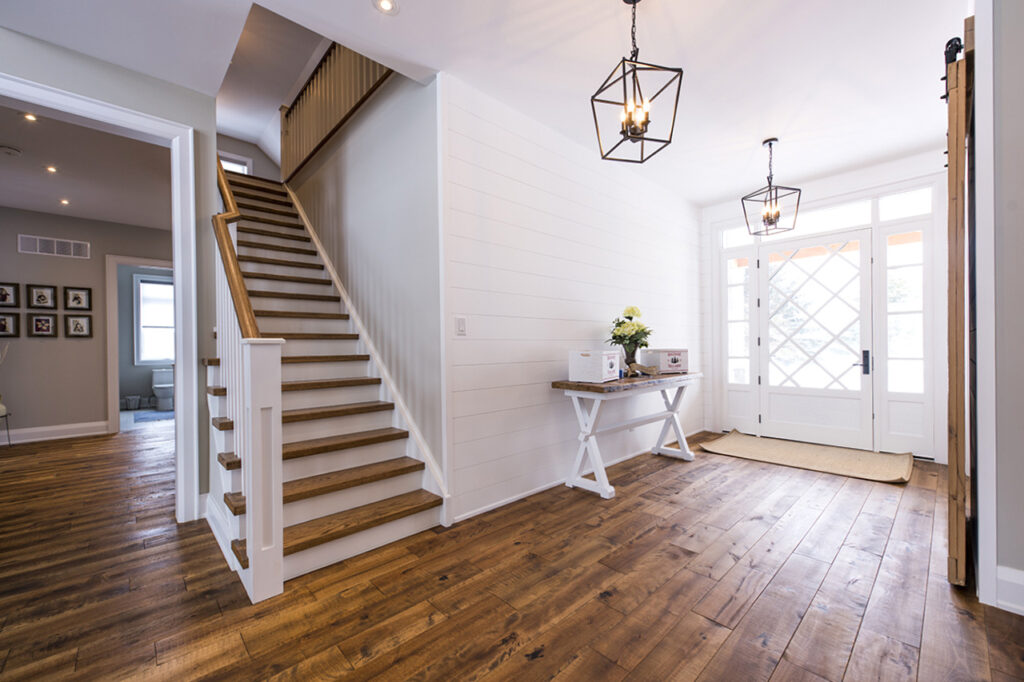 The beams in the living room are 300 years old and came from an old post office. The gorgeous fireplace is a Town & Country Fireplace with Essex County natural stone.