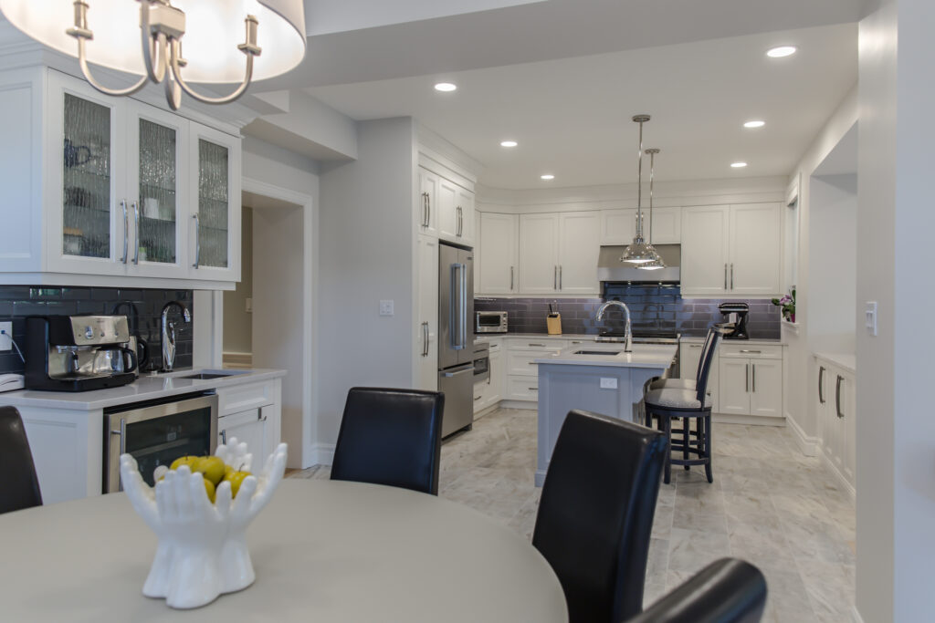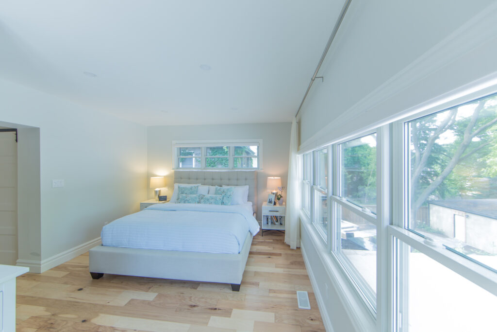 The kitchen was moved and expanded, and a breakfast nook was added where the old kitchen was. The upstairs layout was also reconfigured, moving the bathrooms for better overall flow and use of space. This made room for a grand master bedroom suite with a new walk in closet as well.