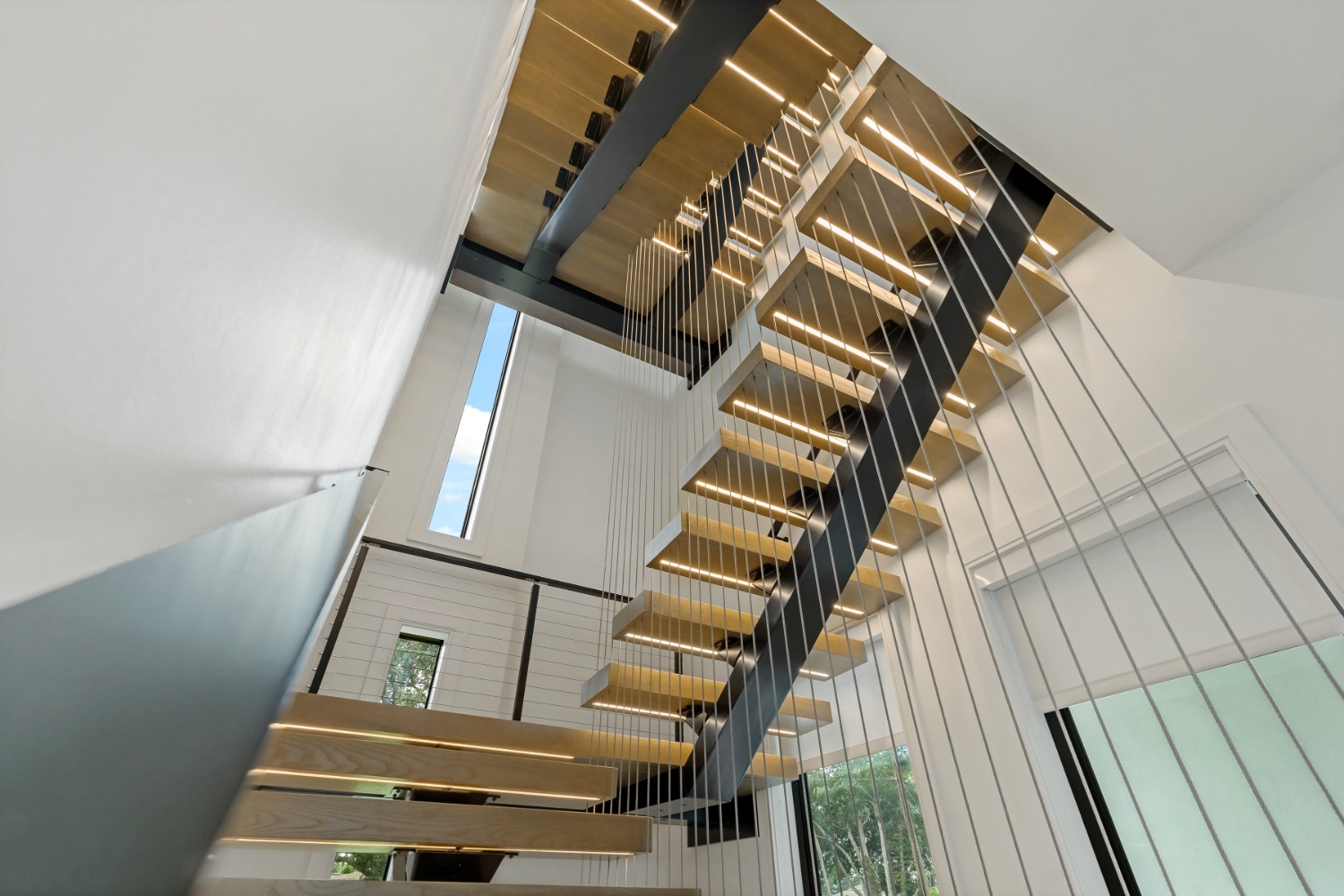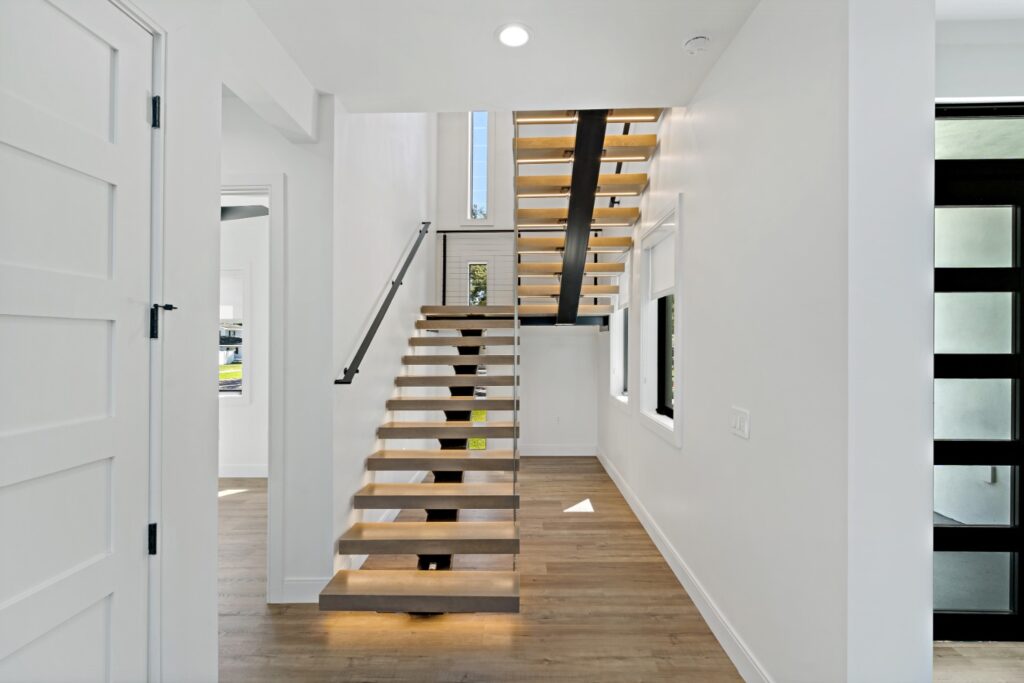 • Floating Staircase: A dramatic three-story staircase serves as a striking centrepiece.