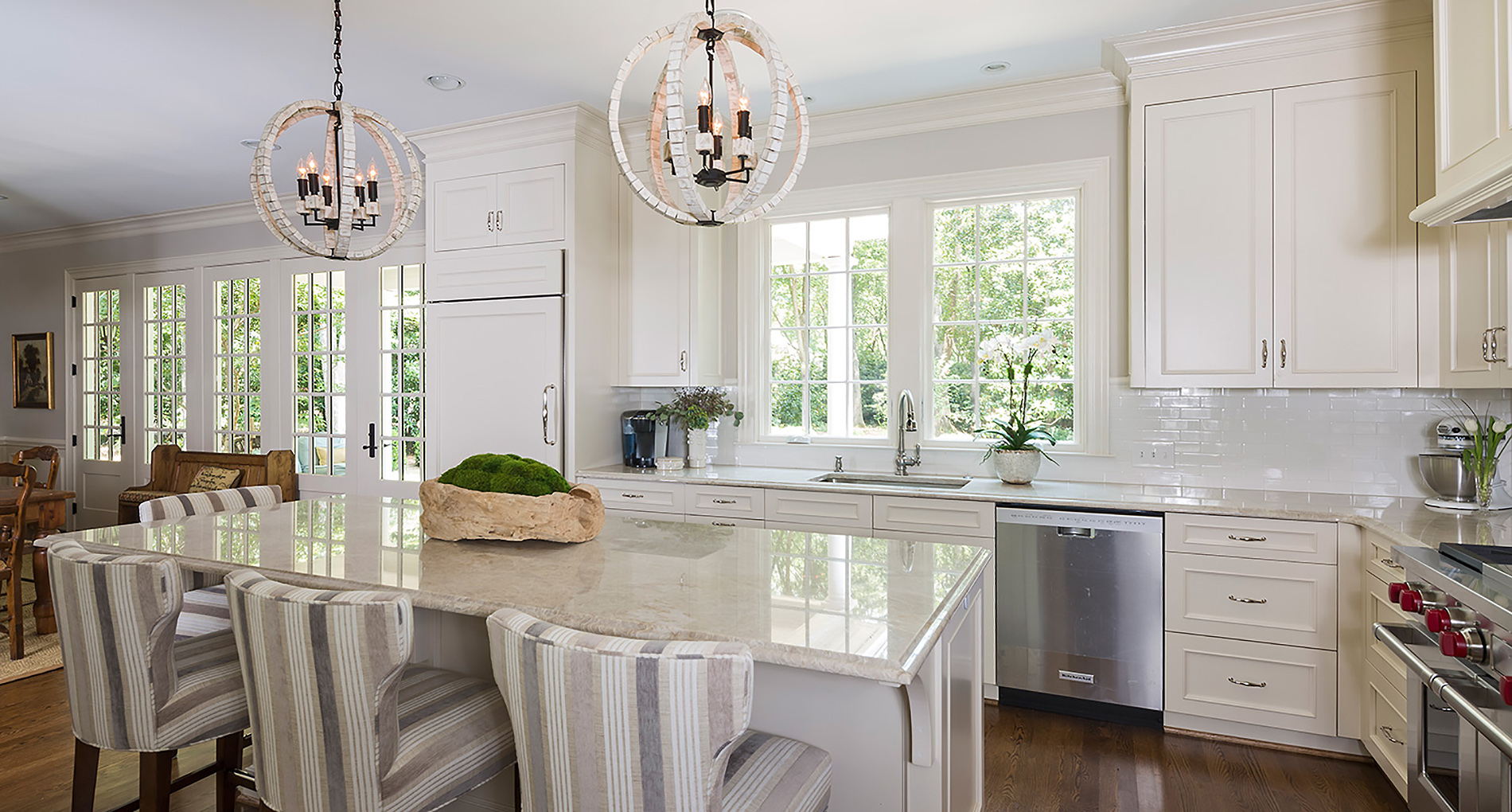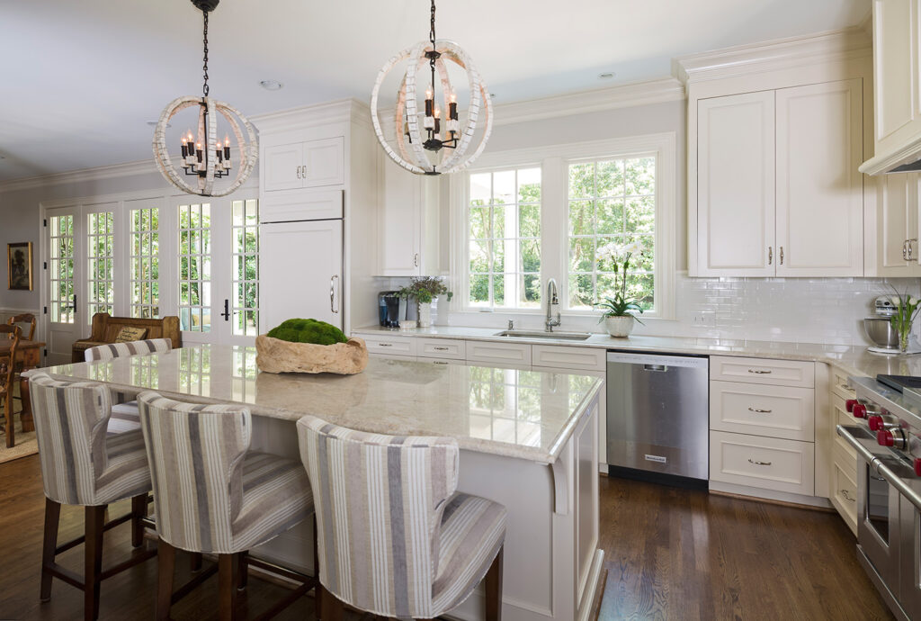 Renovation of a kitchen, breakfast room and bar area that transformed this traditional Foxcroft home. Architectural Design: Susan Dudley, Decorator: Lisa Britt, Photos by Jim Schmid