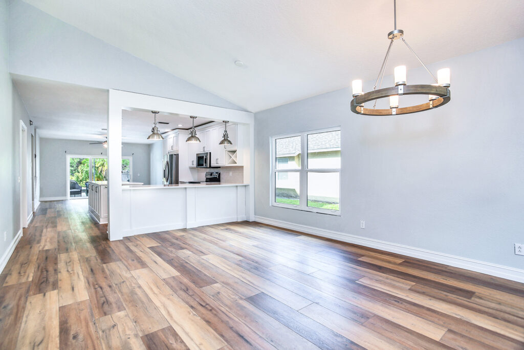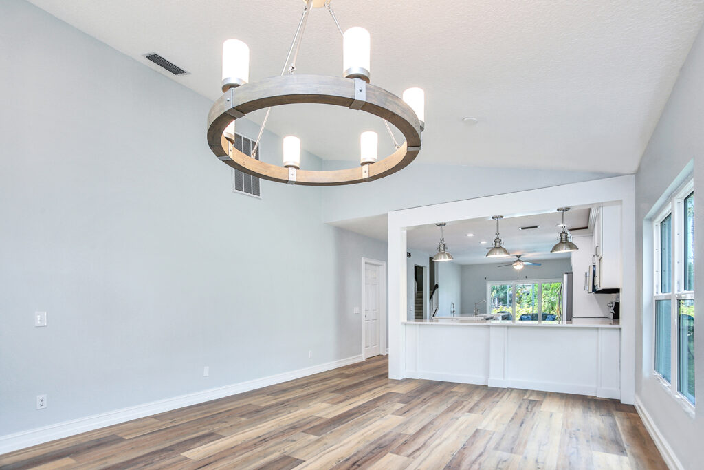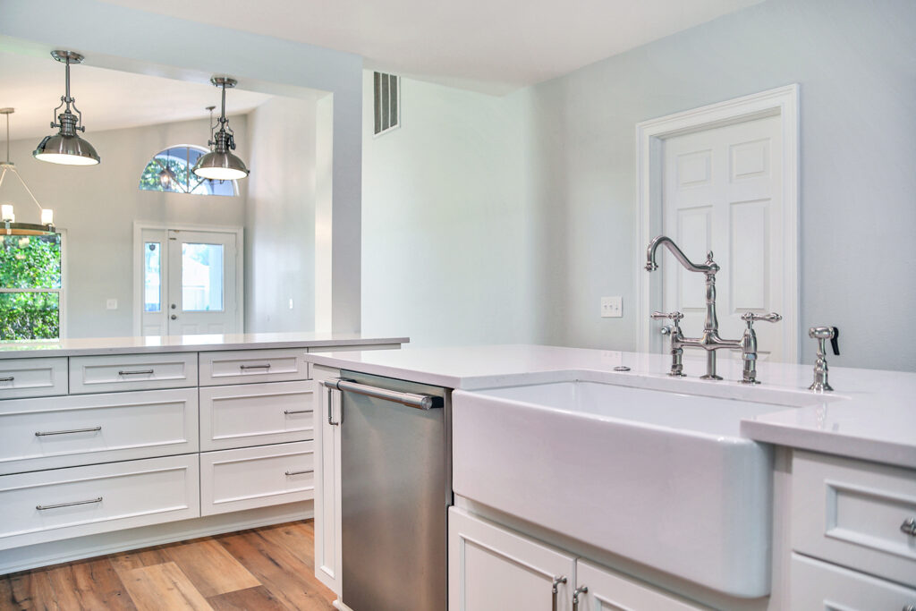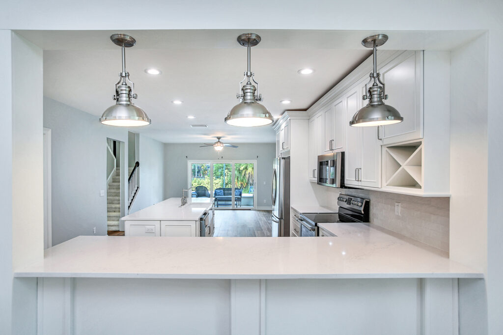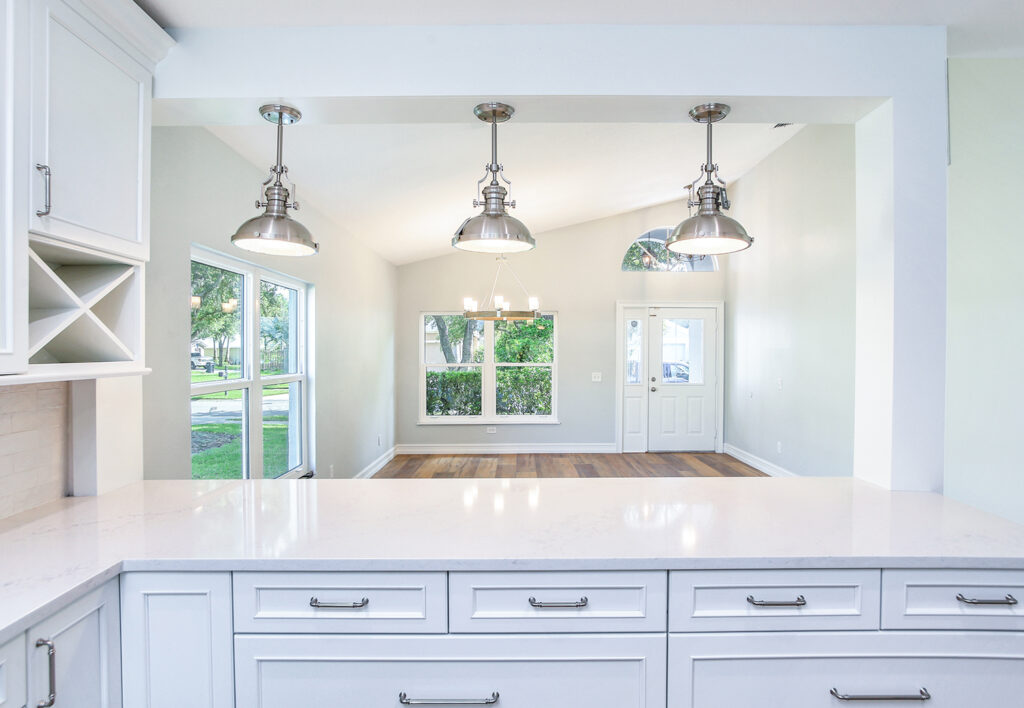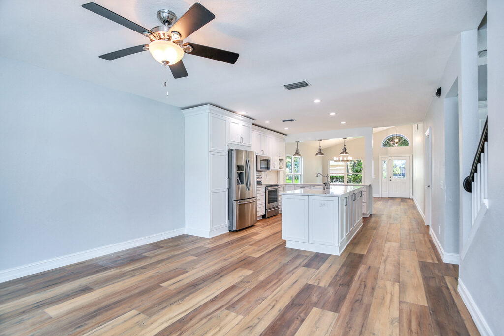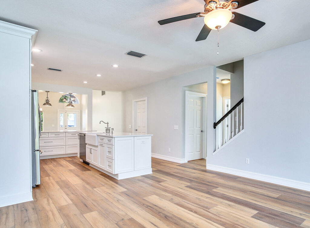 This post-flood renovation completely reimagined the home’s main floor, creating a modern and functional living environment. The project focused on restoring the property while enhancing layout and flow for everyday life and entertaining.
