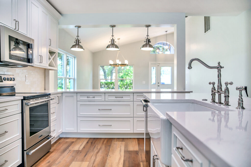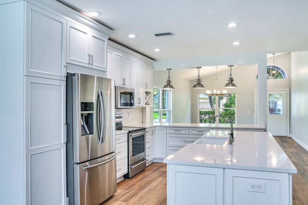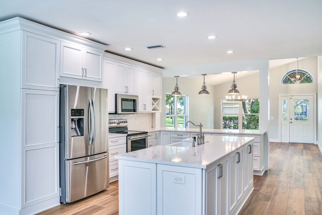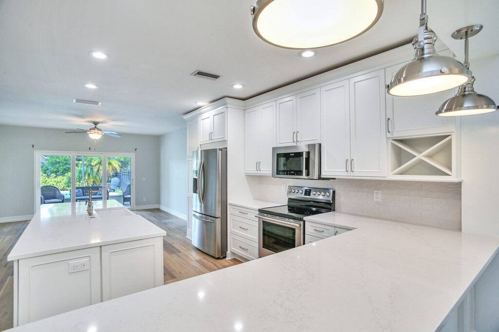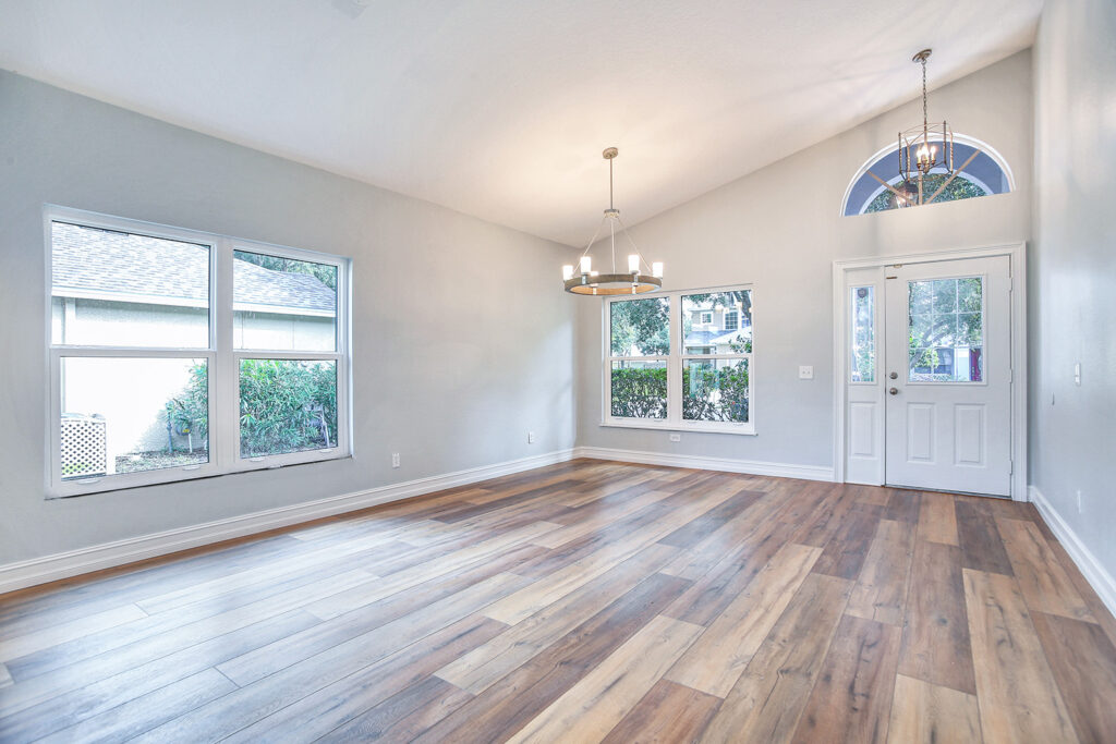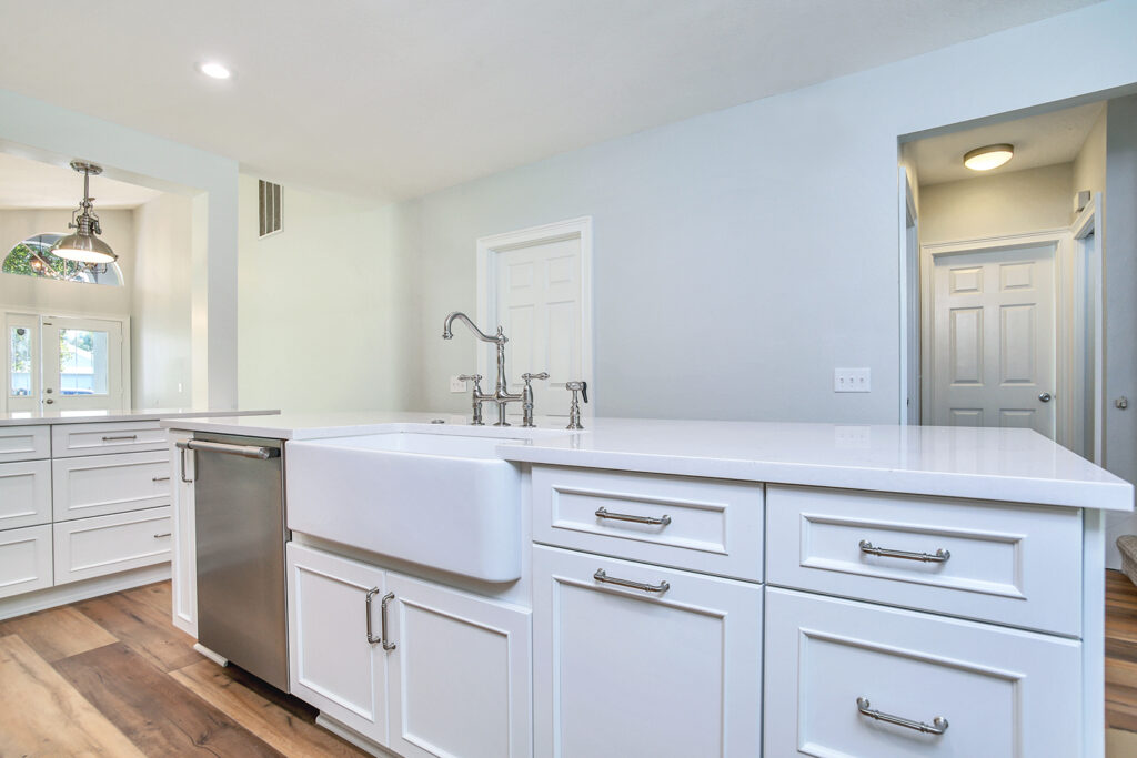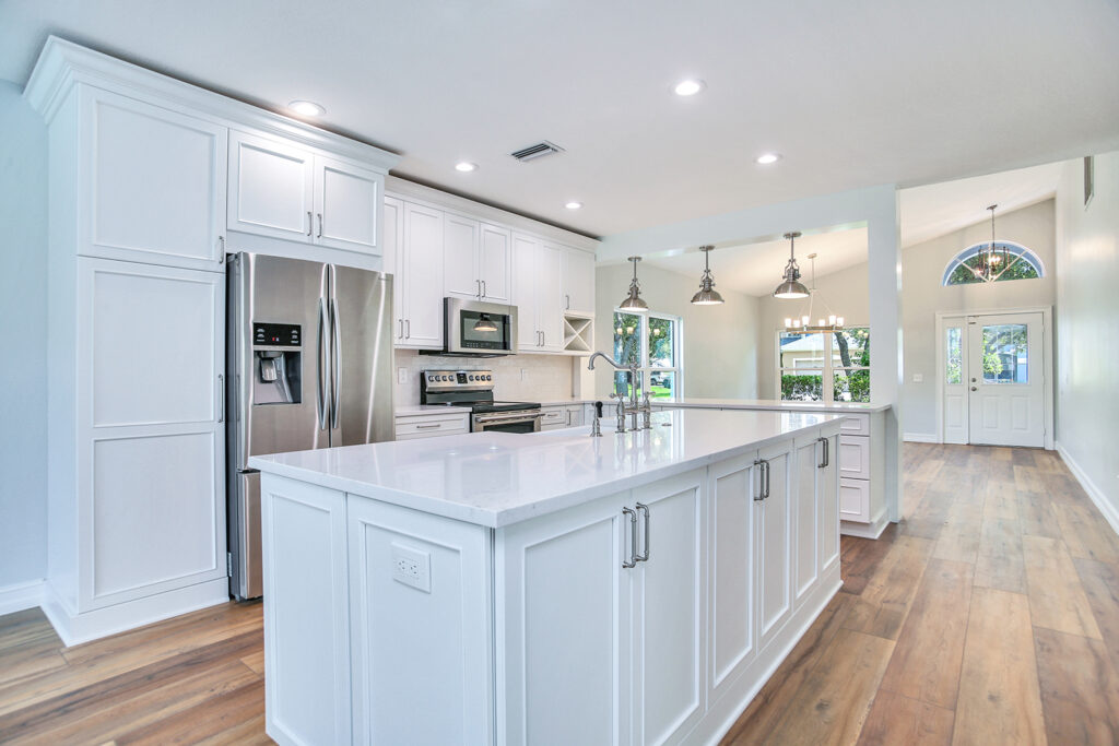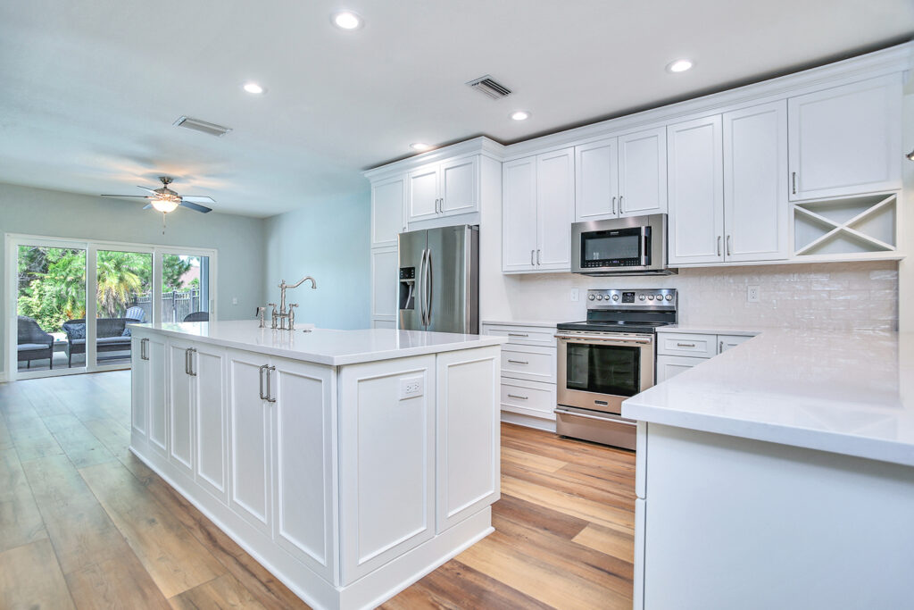 This post-flood renovation completely reimagined the home’s main floor, creating a modern and functional living environment. The project focused on restoring the property while enhancing layout and flow for everyday life and entertaining.