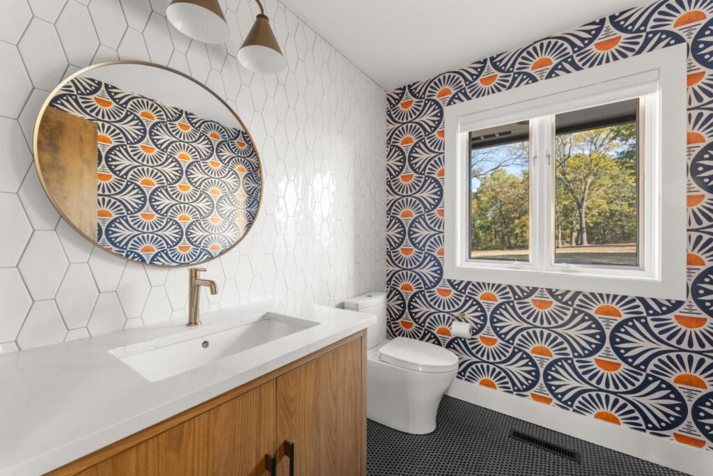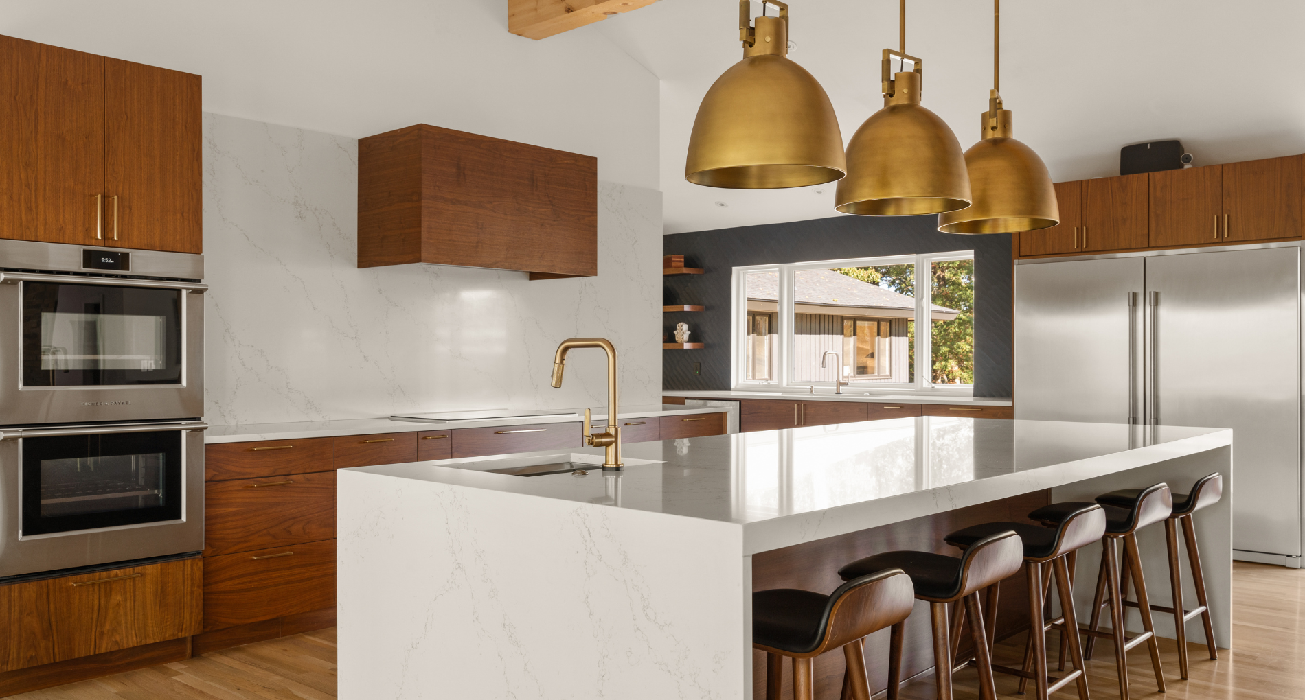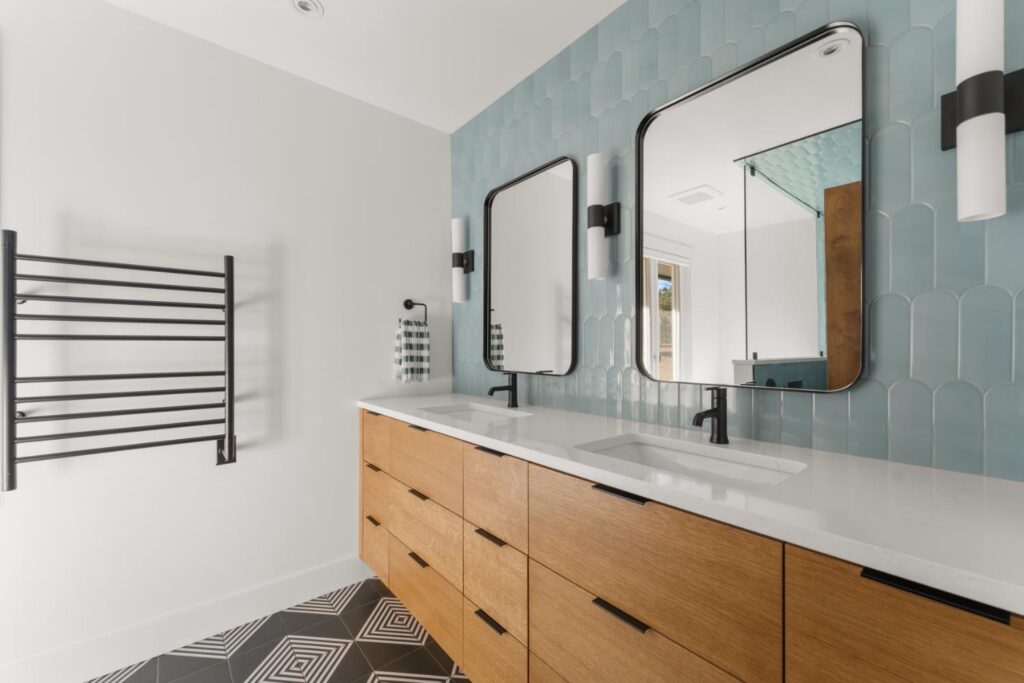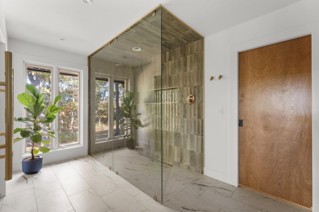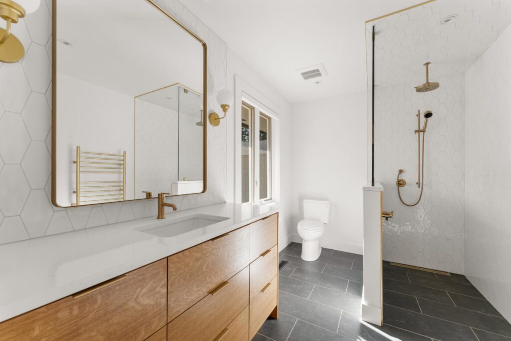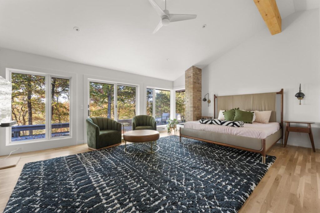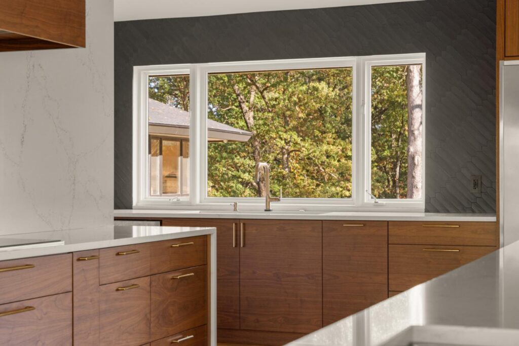 Complete update of 1980’s modern home creating open floor plan with vaulted ceilings and updated living spaces.