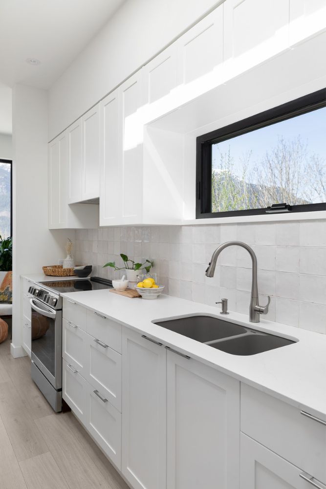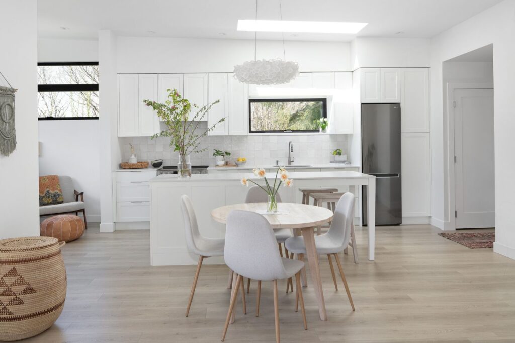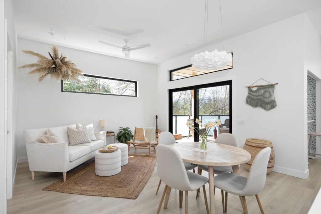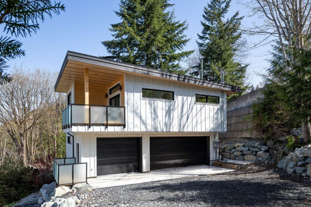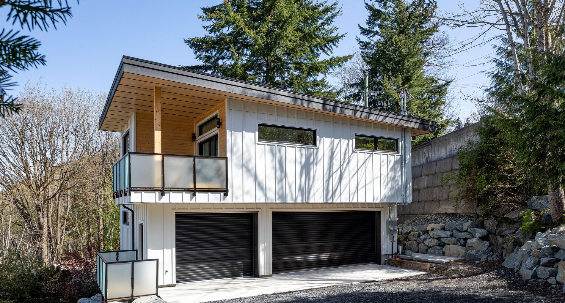 Due to the irregular lot shape and topography, the carriage house is located to the side and front of the primary residence. The building is client-occupied, so every detail was carefully thought out. Careful attention was taken to window locations and sizing to ensure that views were maximized while providing privacy and still letting in plenty of natural light. The air barrier and insulation were carefully planned which created an ultra energy-efficient building.
