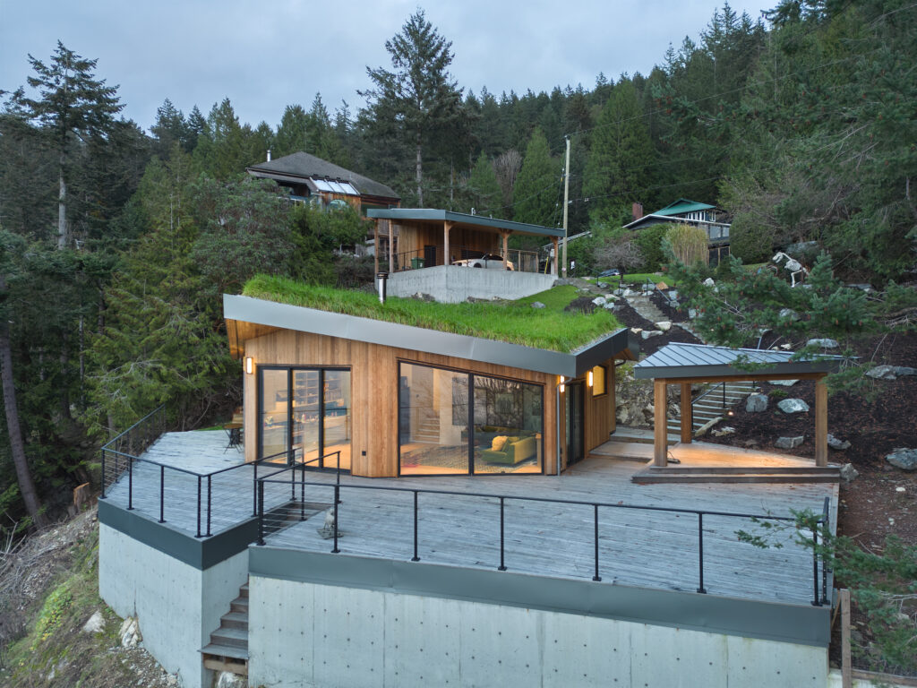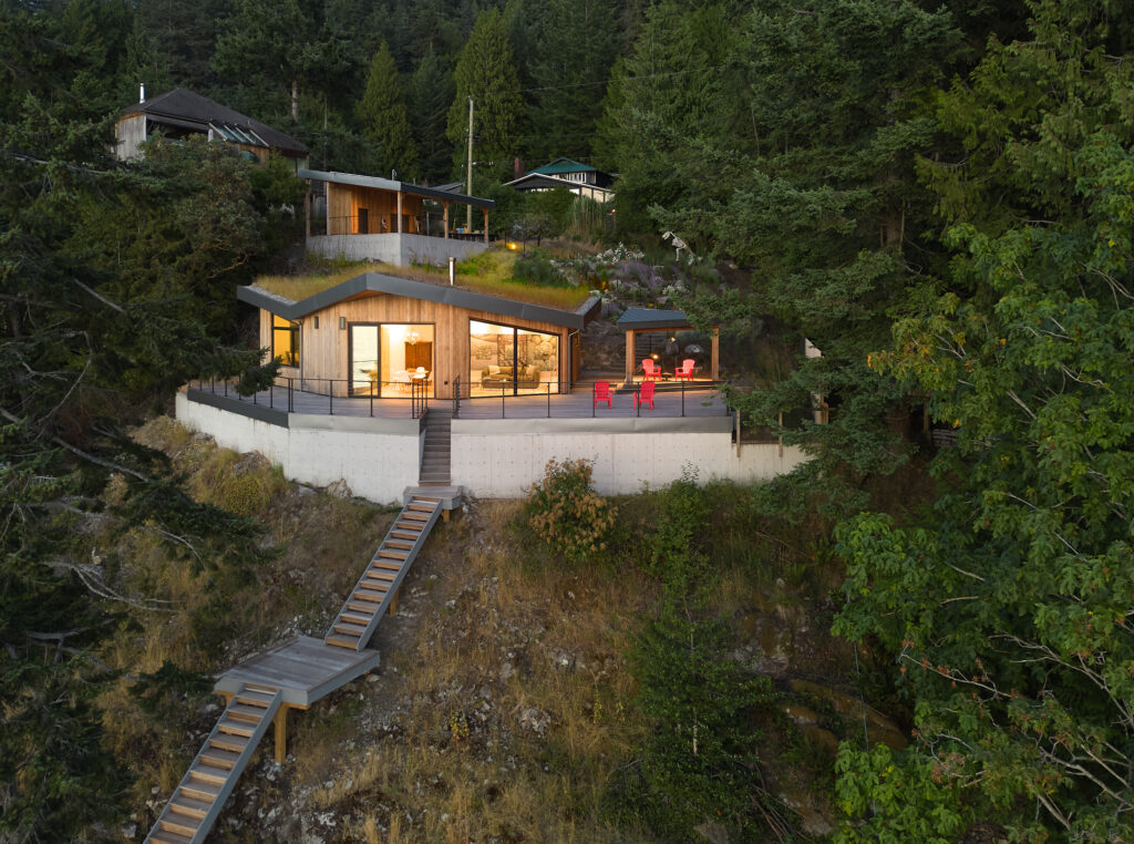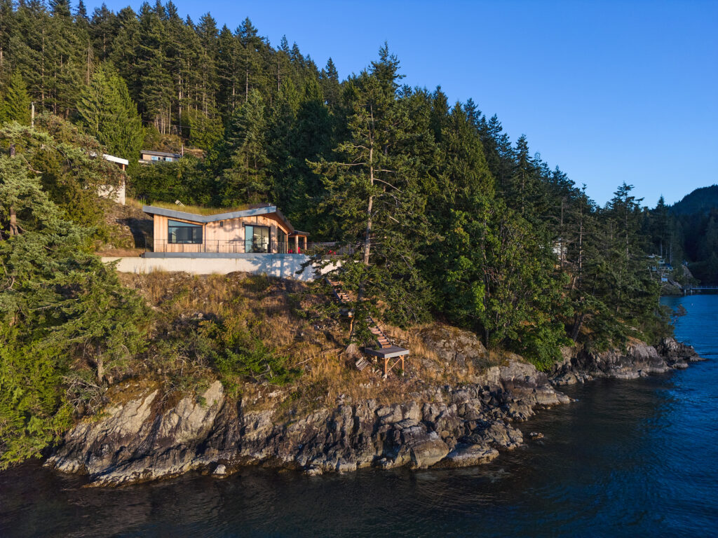 Perched on a cliffside above the Pacific, this 1,000 sq. ft. Bowen Island home is a striking fusion of architecture and nature. Built by Alair Homes Squamish and designed by GNAR Inc., it redefines West Coast living – bold, sustainable, and deeply connected to its surroundings.