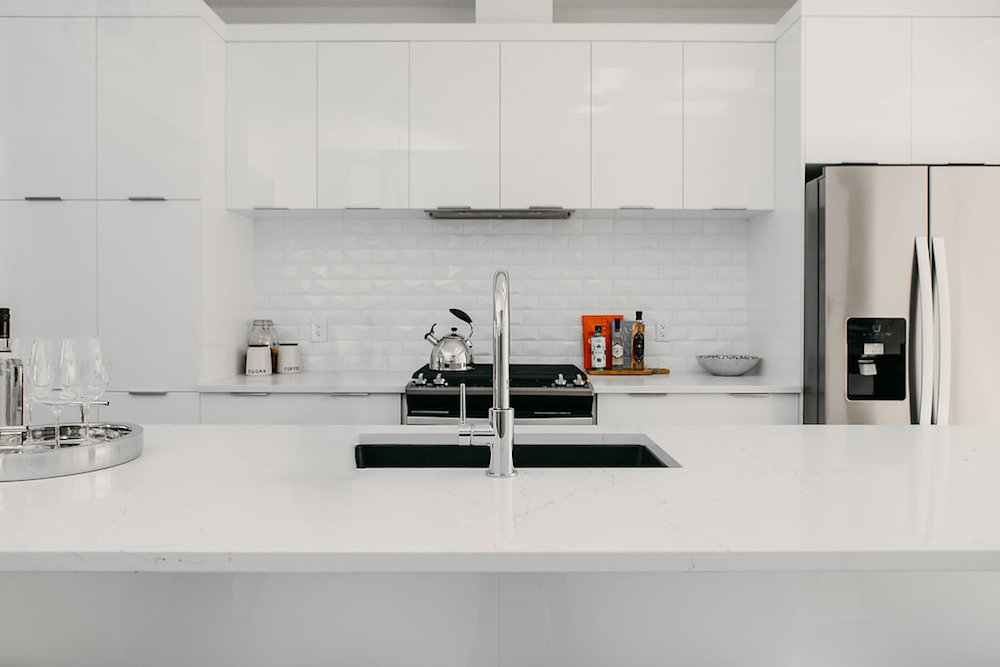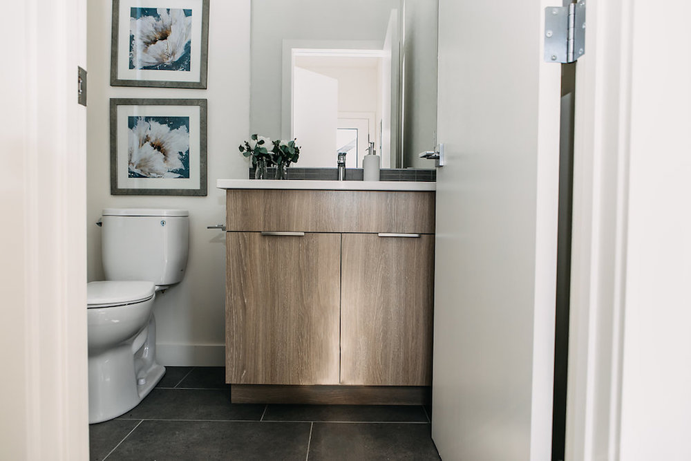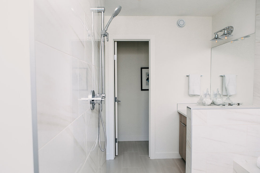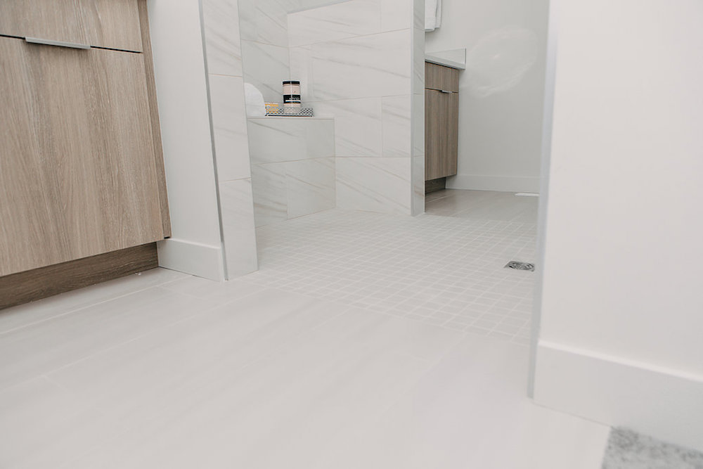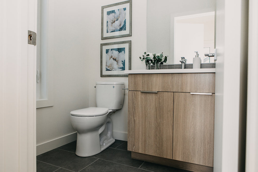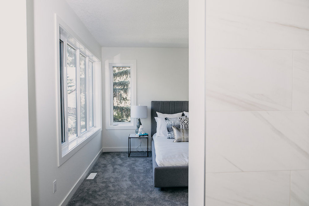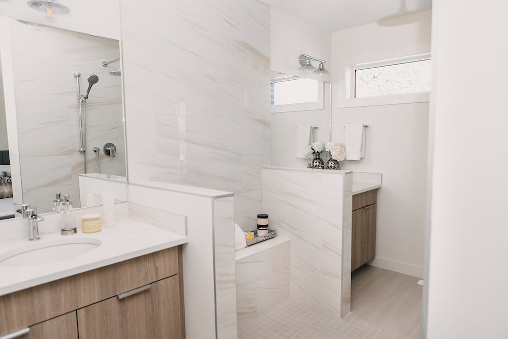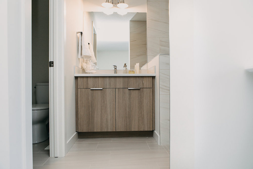 This custom home features an open concept layout, high-end finishes, and hardwood floors throughout. Unique lighting fixtures and glass tables give the space a modern and elegant feel.