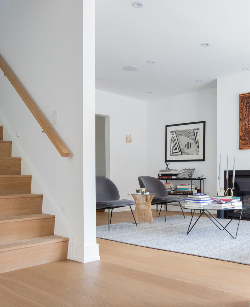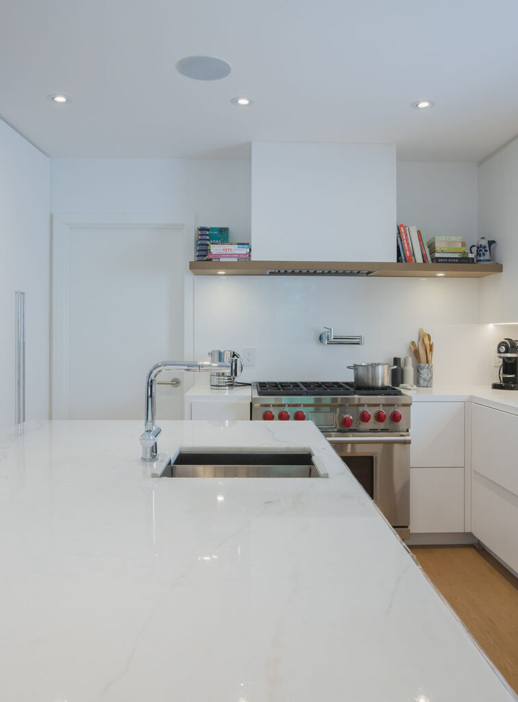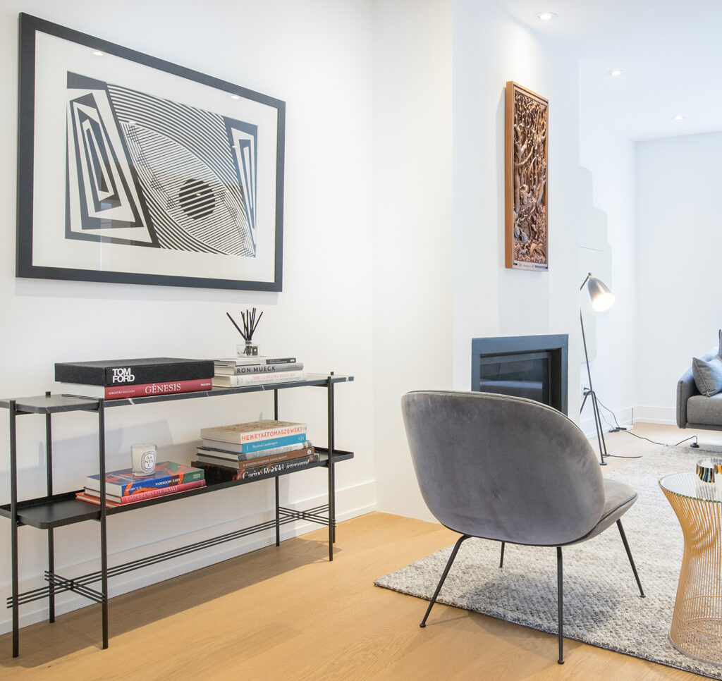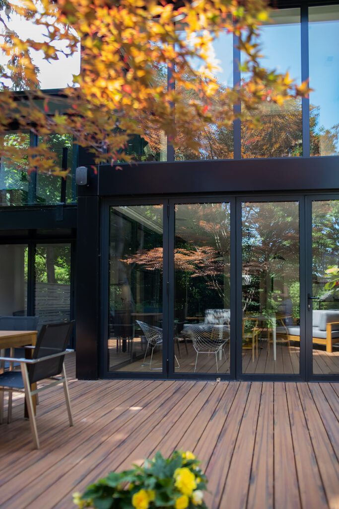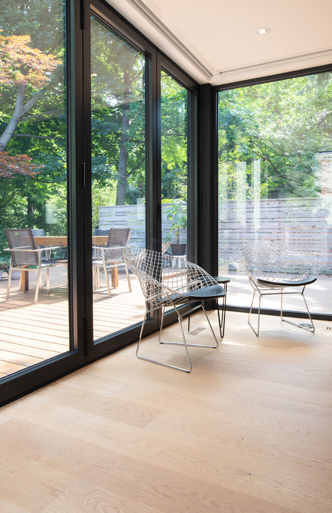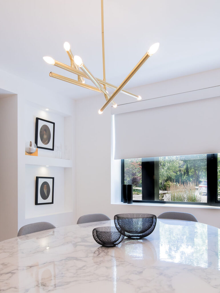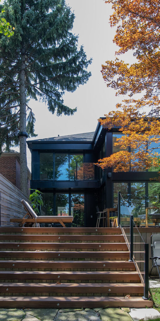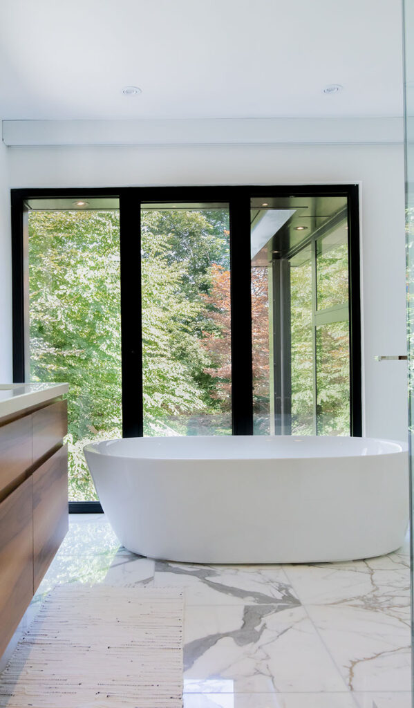 This gorgeous modern custom home features a full glass rear elevation with a view of the beautiful backyard, 9’ ceilings in the basement, and a frameless 3-sided fireplace in the great room.