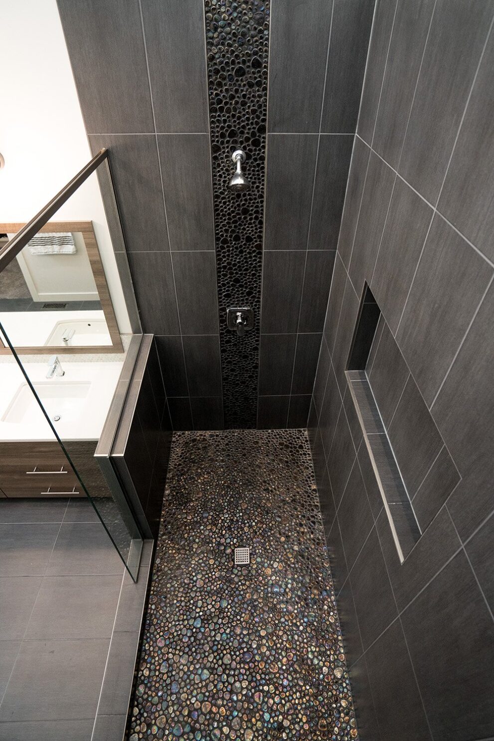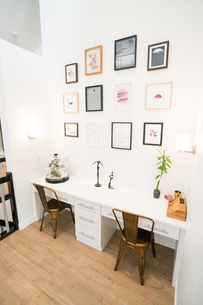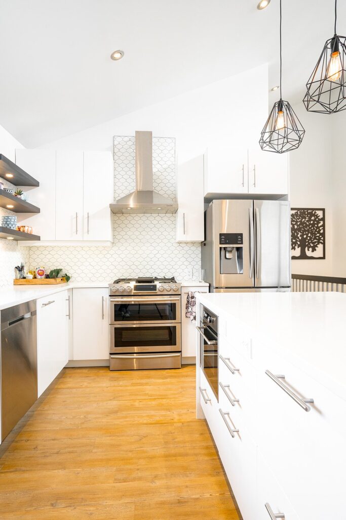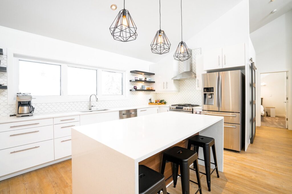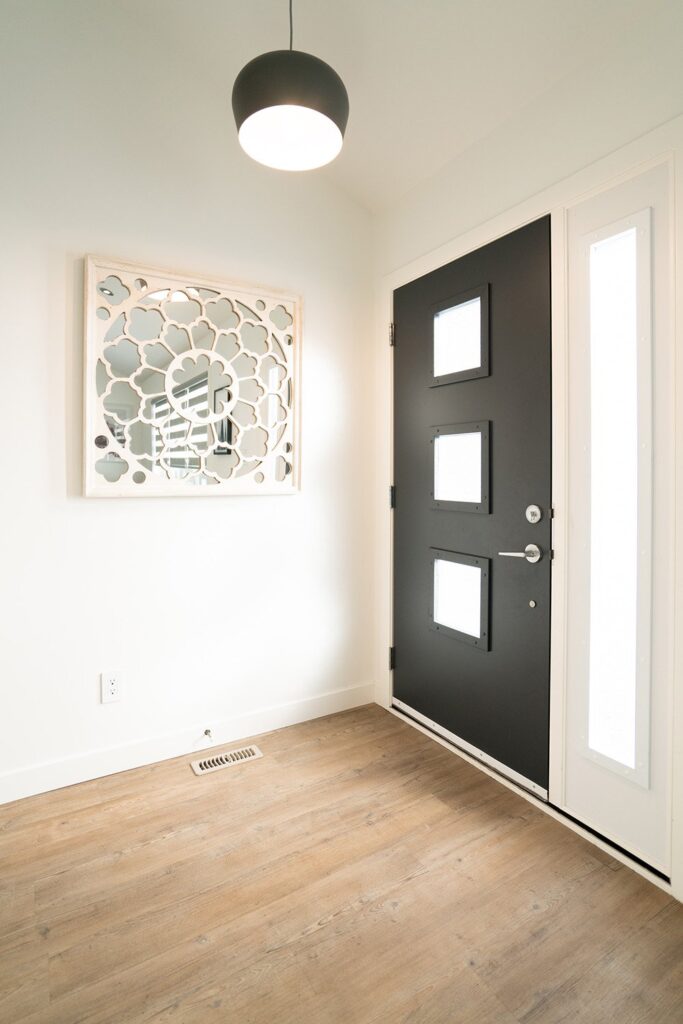 This mid-century family home has been completely renovated into a modern and contemporary space. The home features a new kitchen, updated living room and a customized mudroom area.