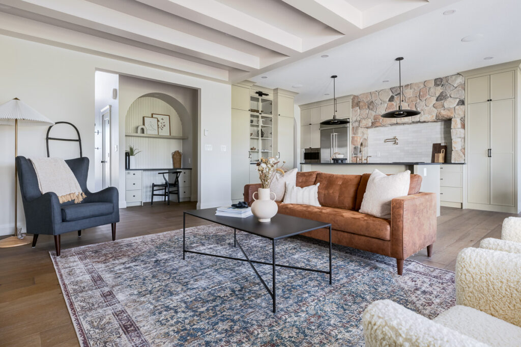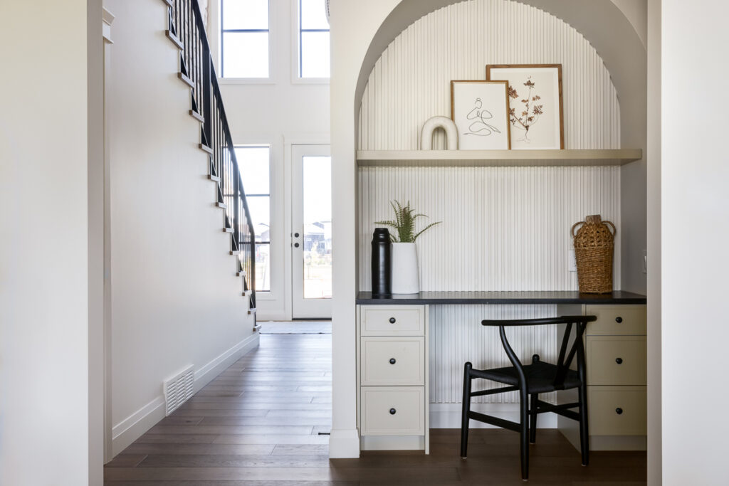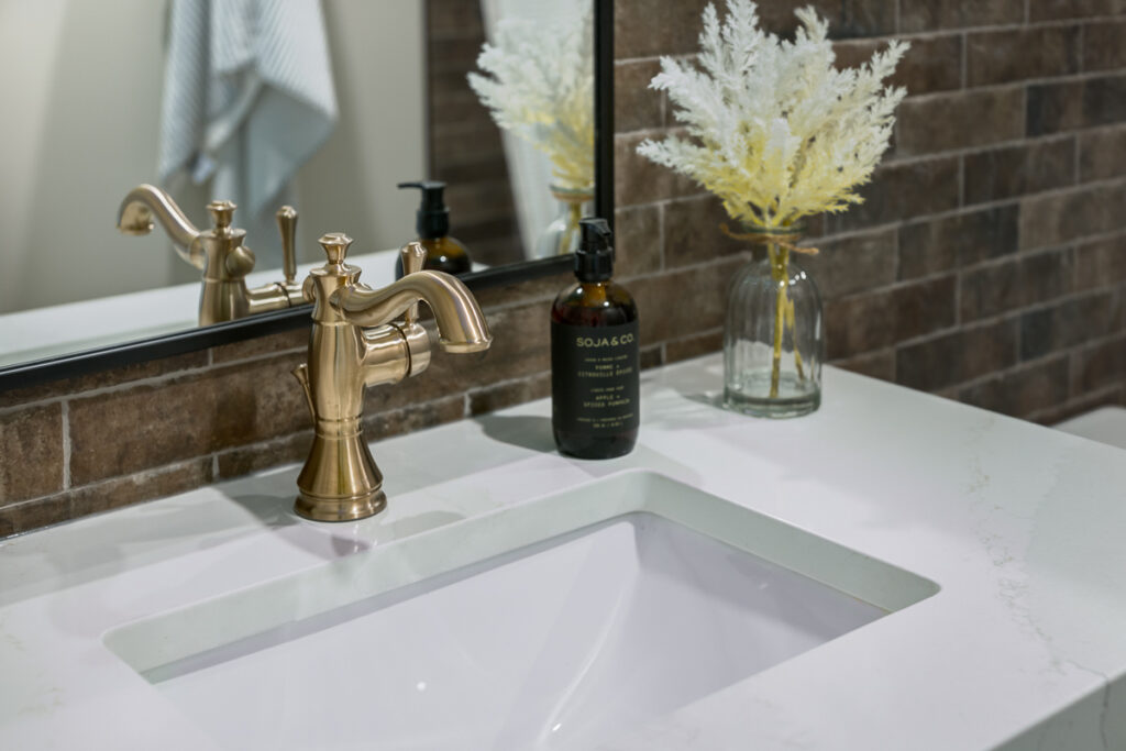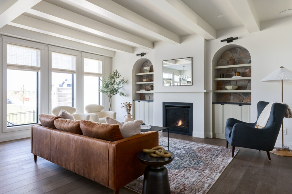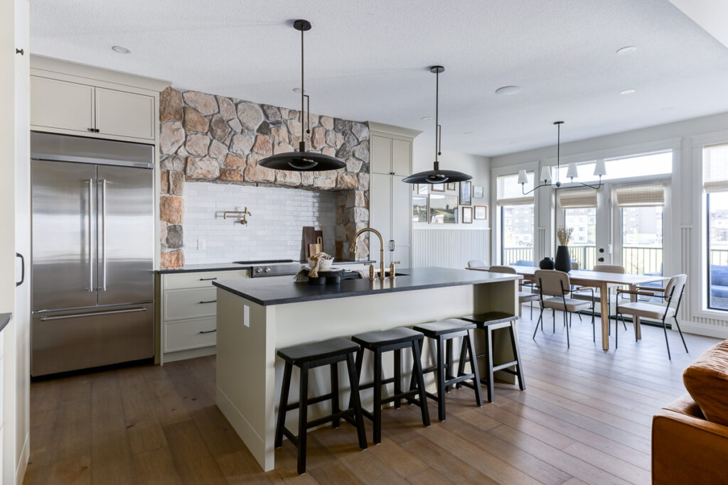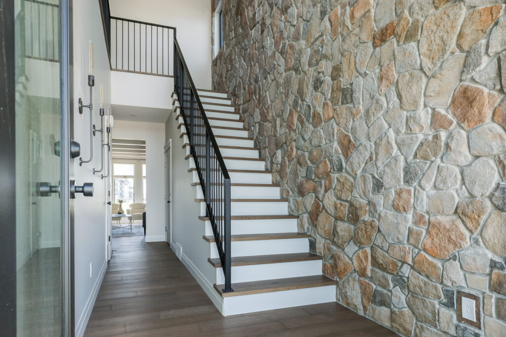 This custom home is filled with detail and high-end finishes. It has a modern, yet traditional, and European vibe. There is an abundance of high-end, earthy finishes used. These include waterproof hardwood, cultured stone walls, brick walls, and beautiful neutral tiles used throughout. Every detail has been meticulously designed and executed.