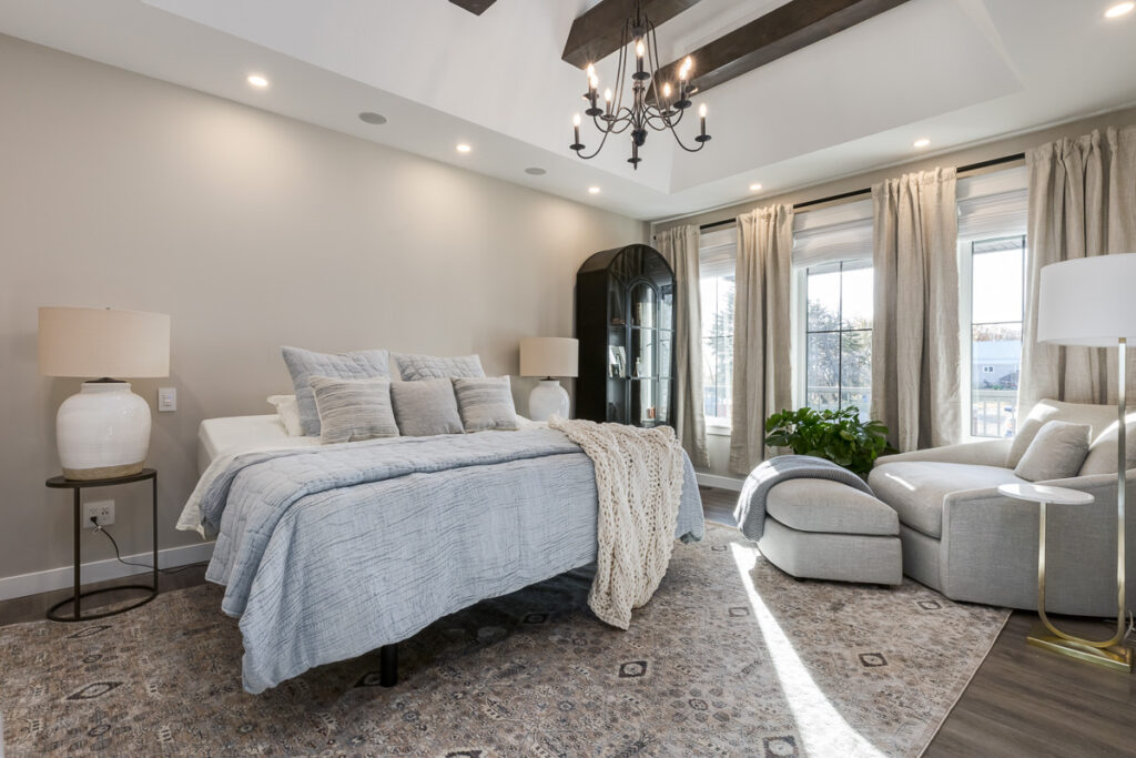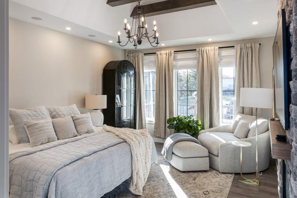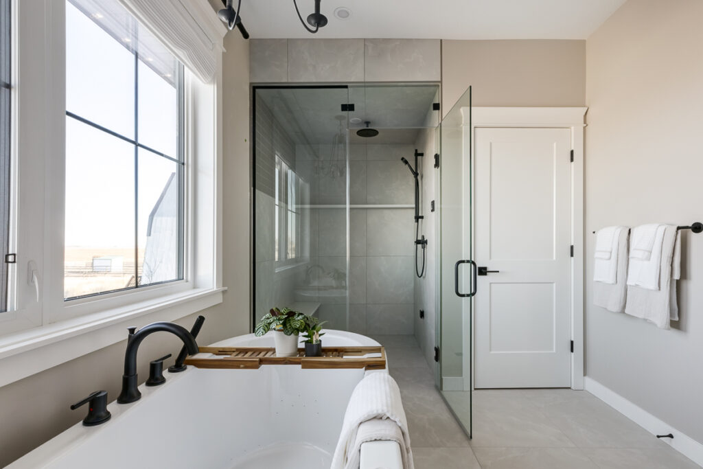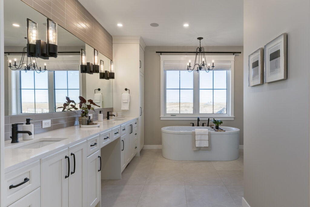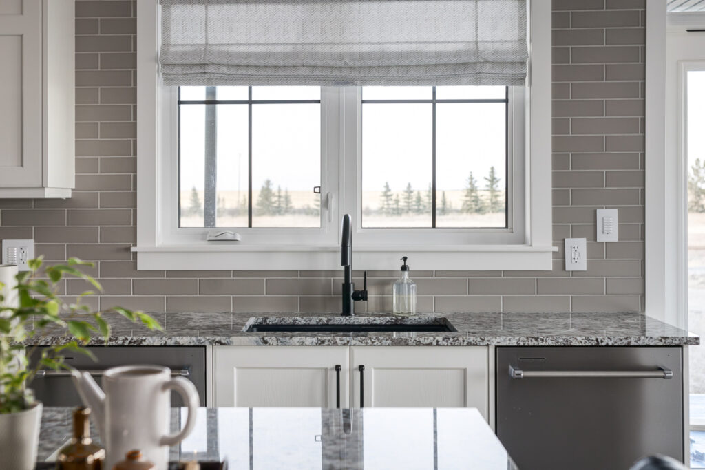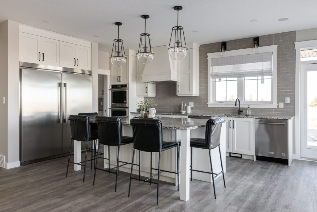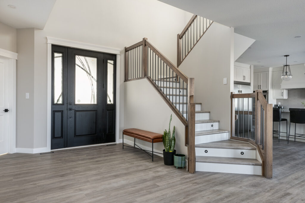 Beautiful custom home on a farm in Saskatchewan, with many traditional and farmhouse elements. High-end finishes.