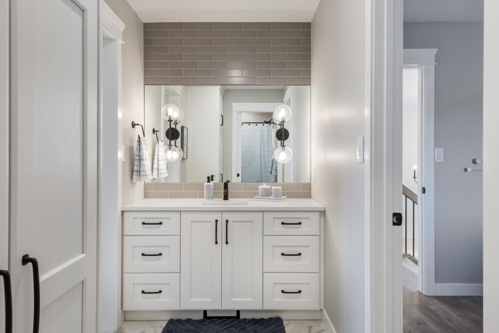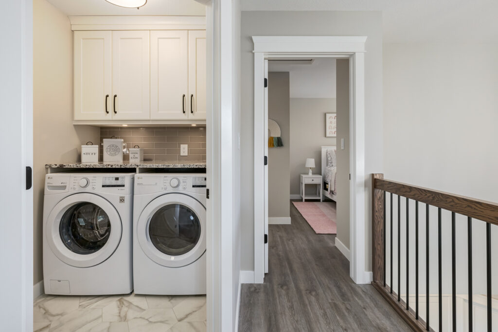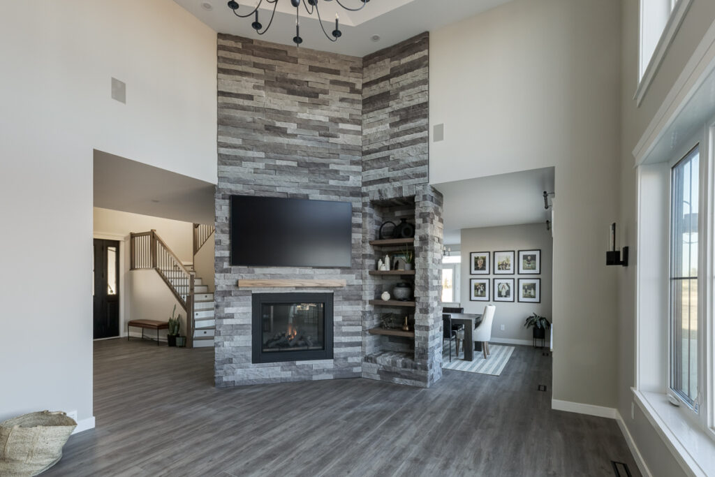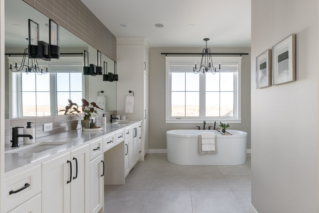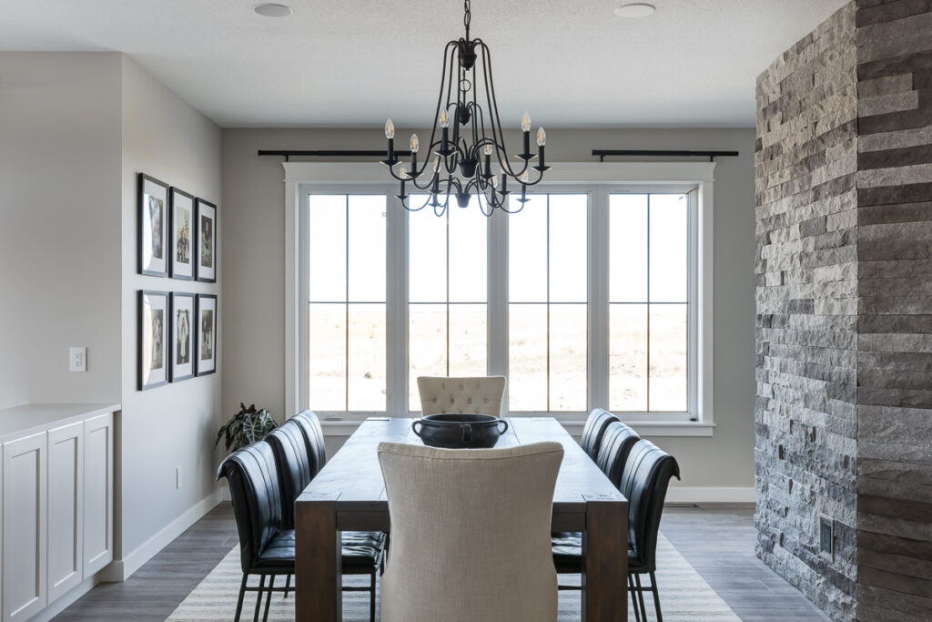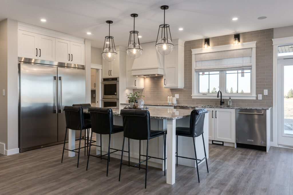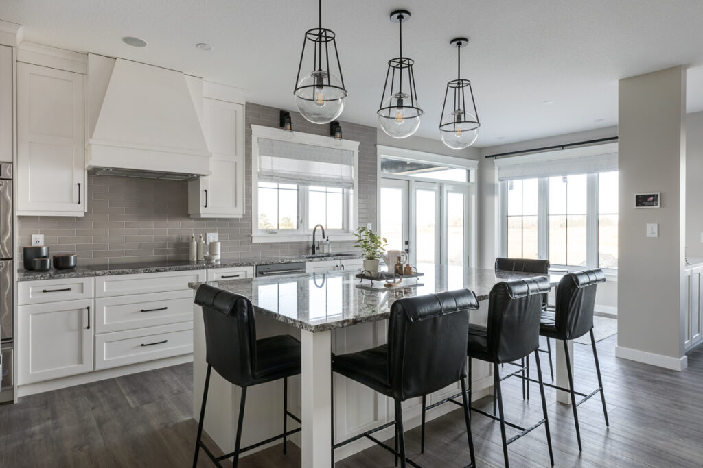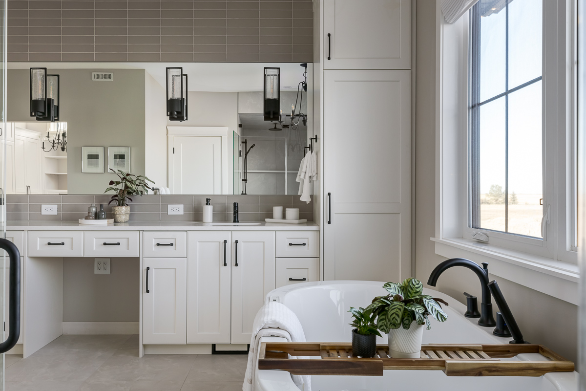 Beautiful custom home on a farm in Saskatchewan, with many traditional and farmhouse elements. High-end finishes.