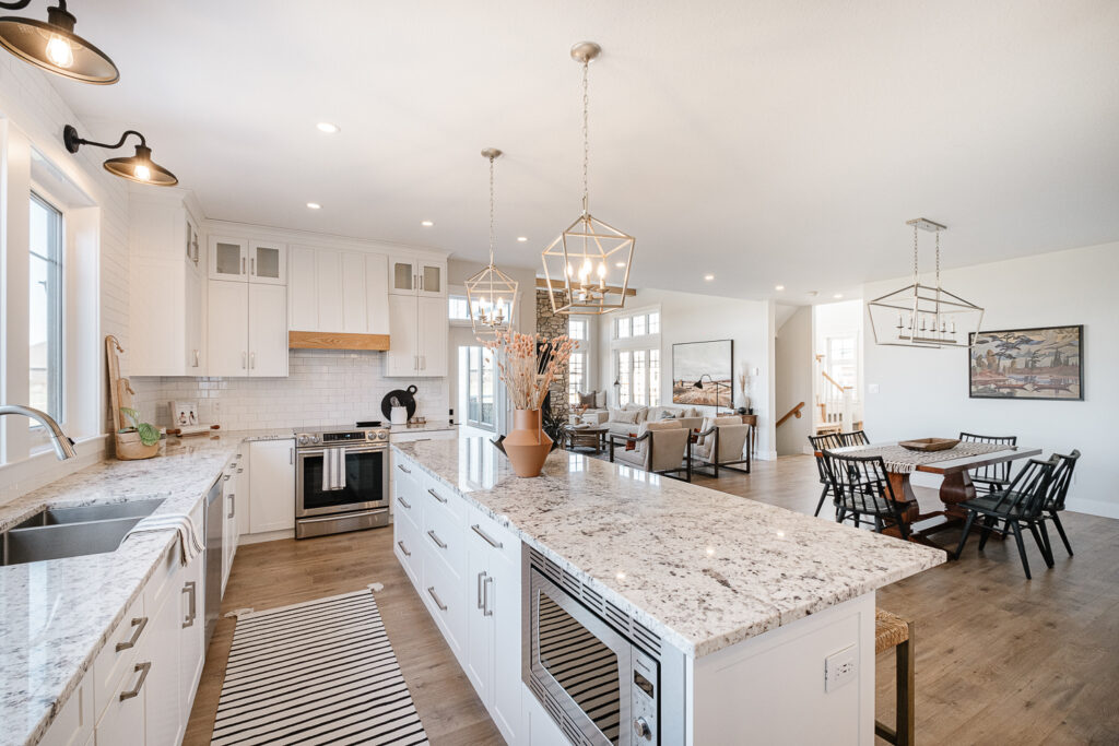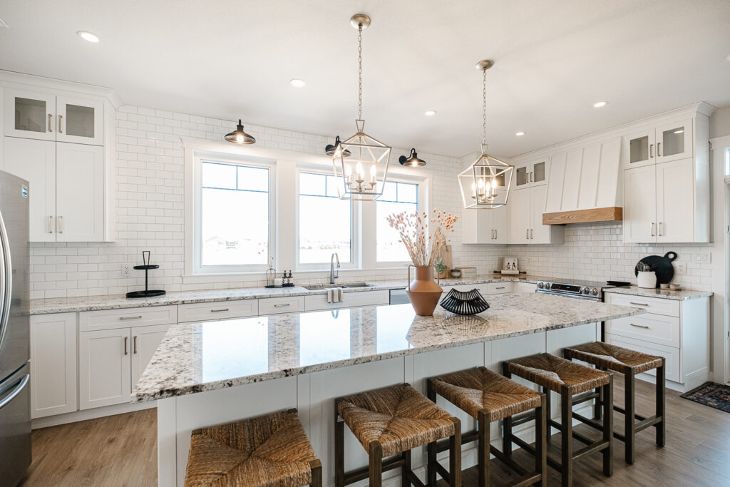 This expansive custom home was finished over two months early and features custom woodwork, exposed beams, and a large kitchen. The most impressive aspect of this build was how all the sub trades worked together to complete the work in time. The designer’s plans were exhaustive and detailed, which helped with scope of works, helping establish everyone’s role and being able to complete in a timely fashion.