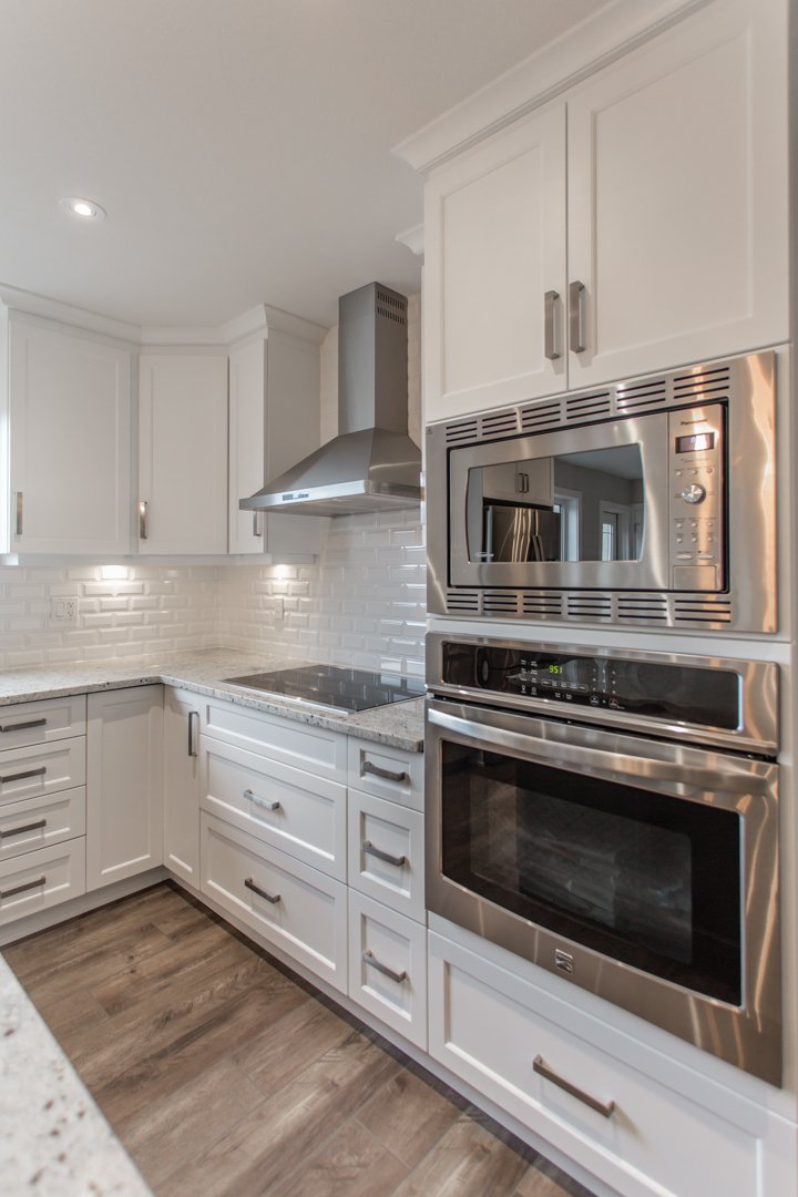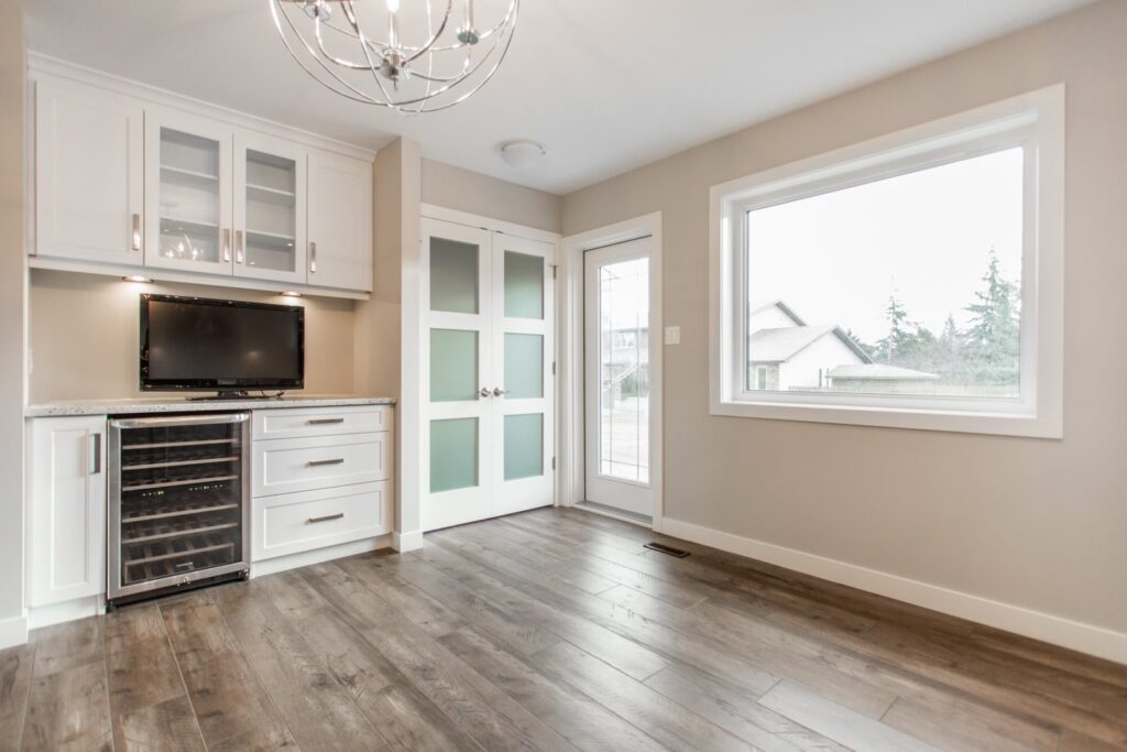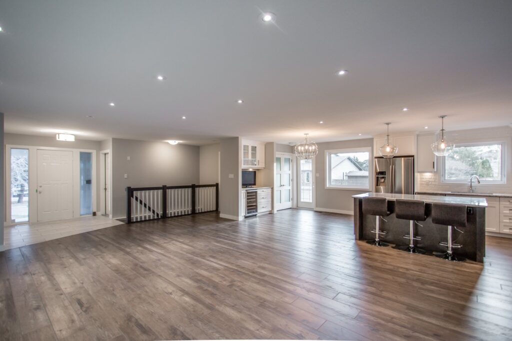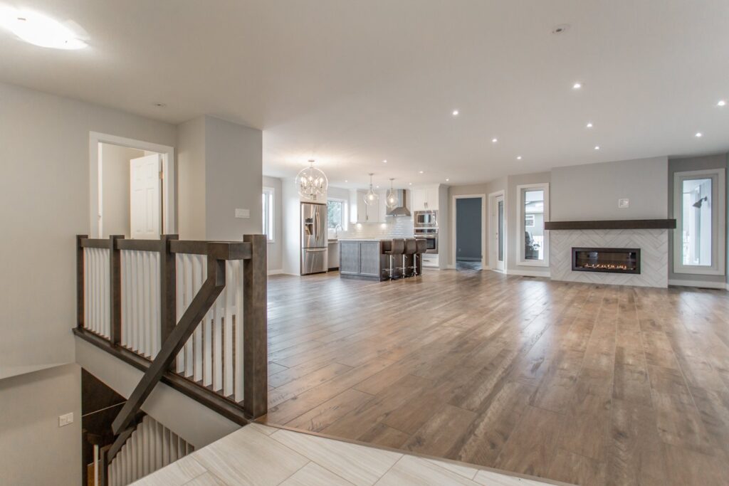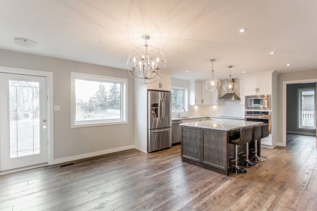 The entire main floor of this home was updated with carefully selected materials and finishes that give the space a modern, stylish, and high-end feel without the high-end price tag. A wall was removed in the kitchen/living area, which opened up the whole space, and the master ensuite was reconfigured for better flow and use of space.