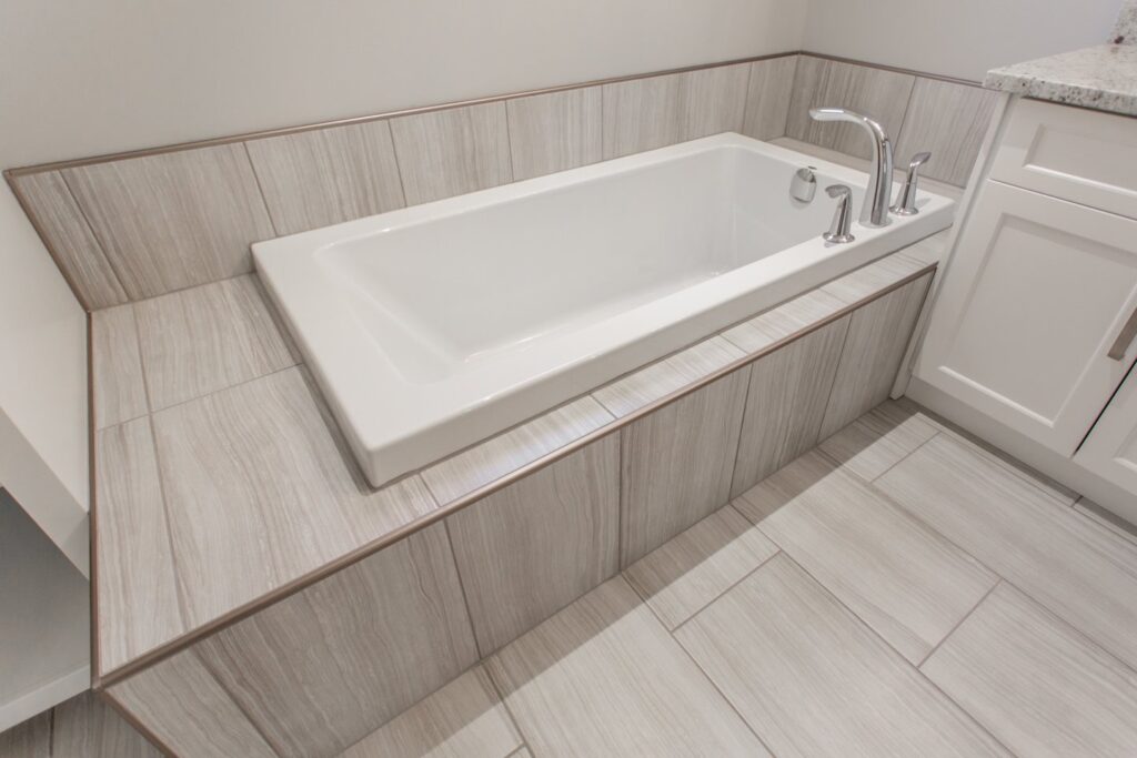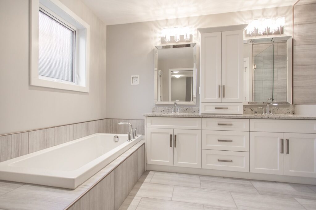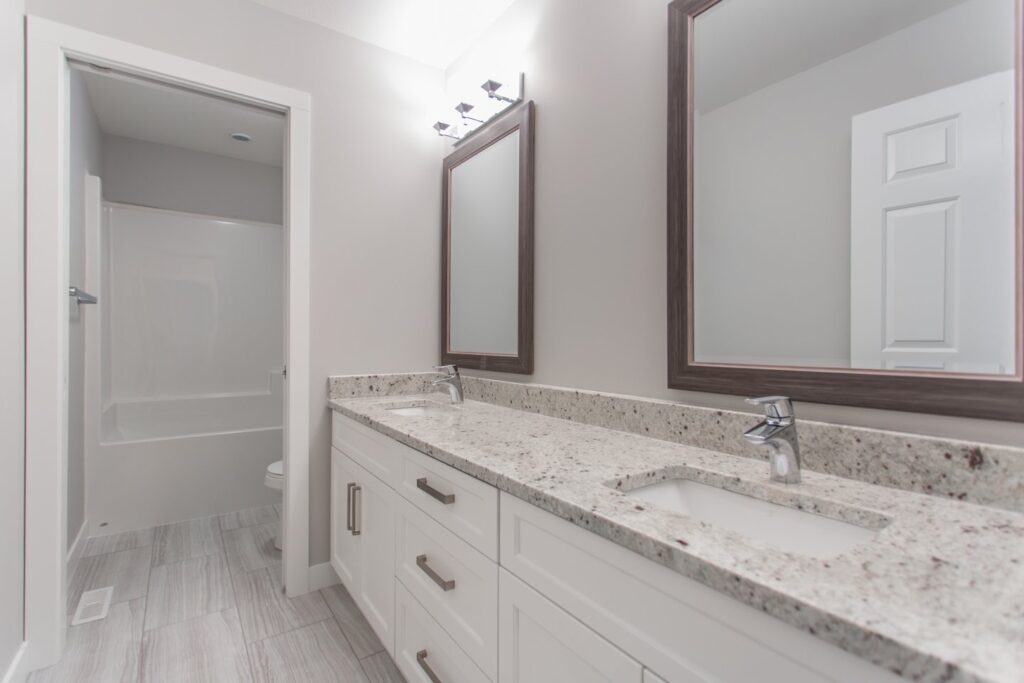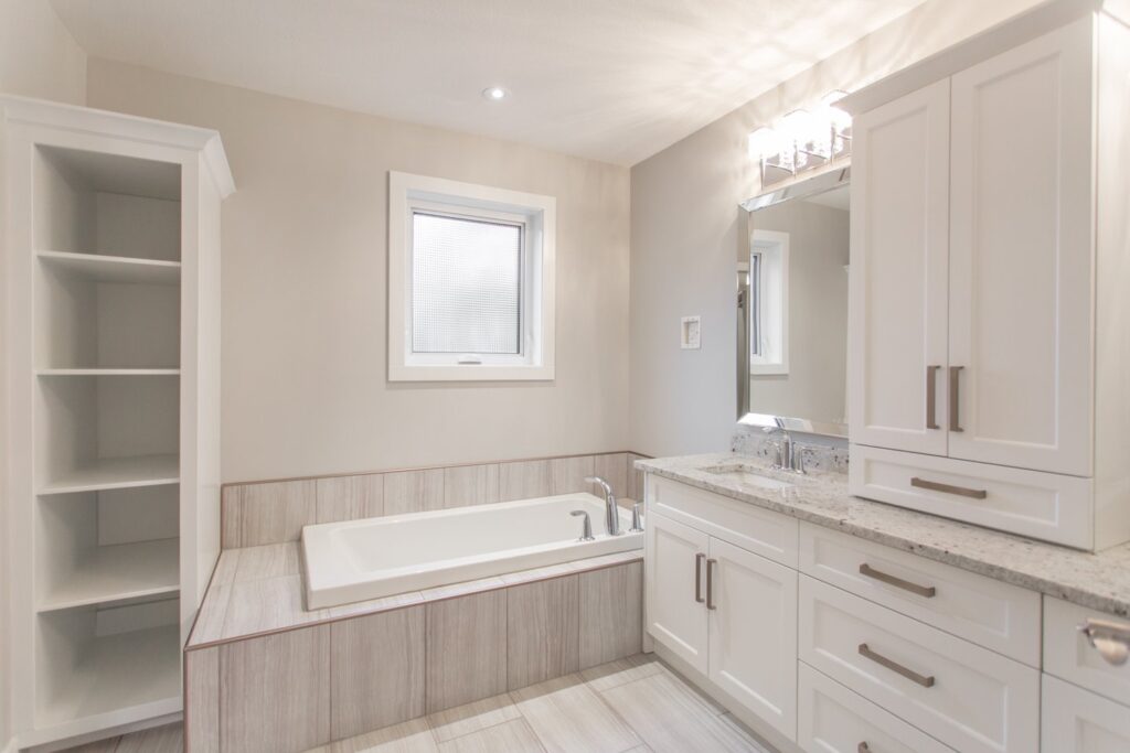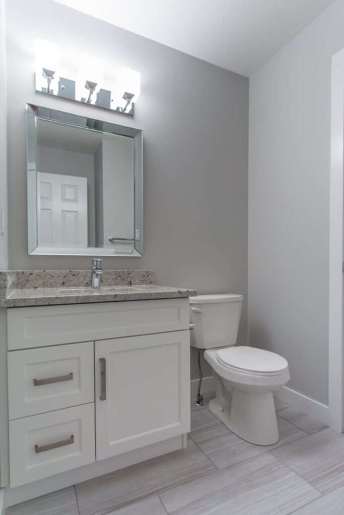 The entire main floor of this home was updated with carefully selected materials and finishes that give the space a modern, stylish, and high-end feel without the high-end price tag. A wall was removed in the kitchen/living area, which opened up the whole space, and the master ensuite was reconfigured for better flow and use of space.
