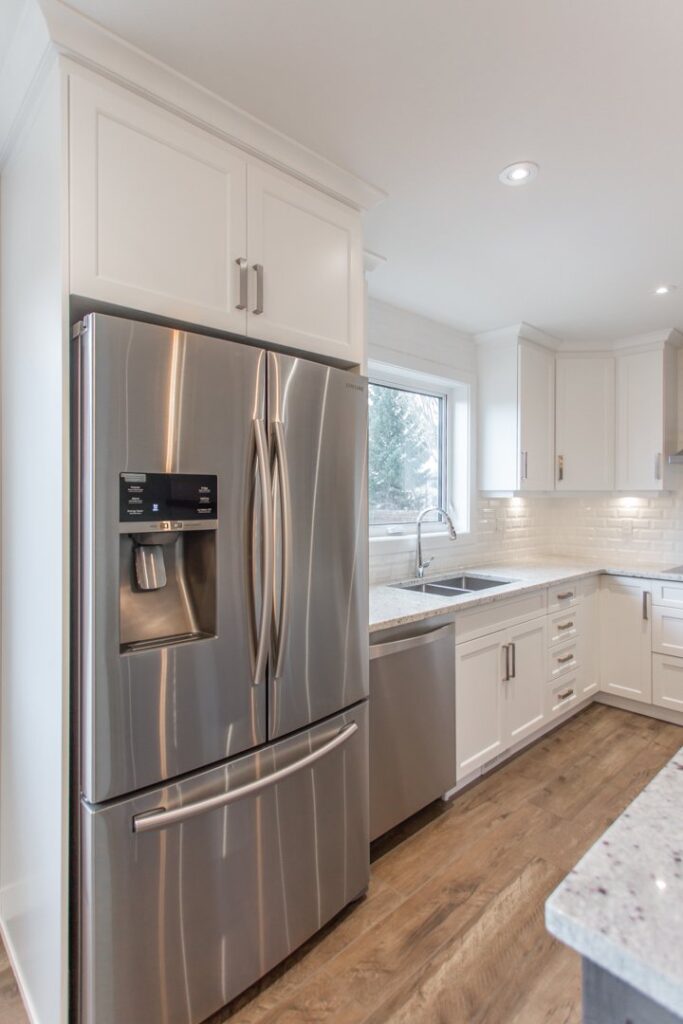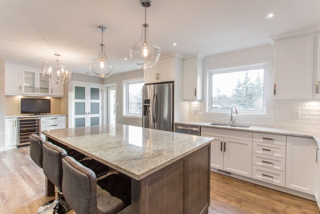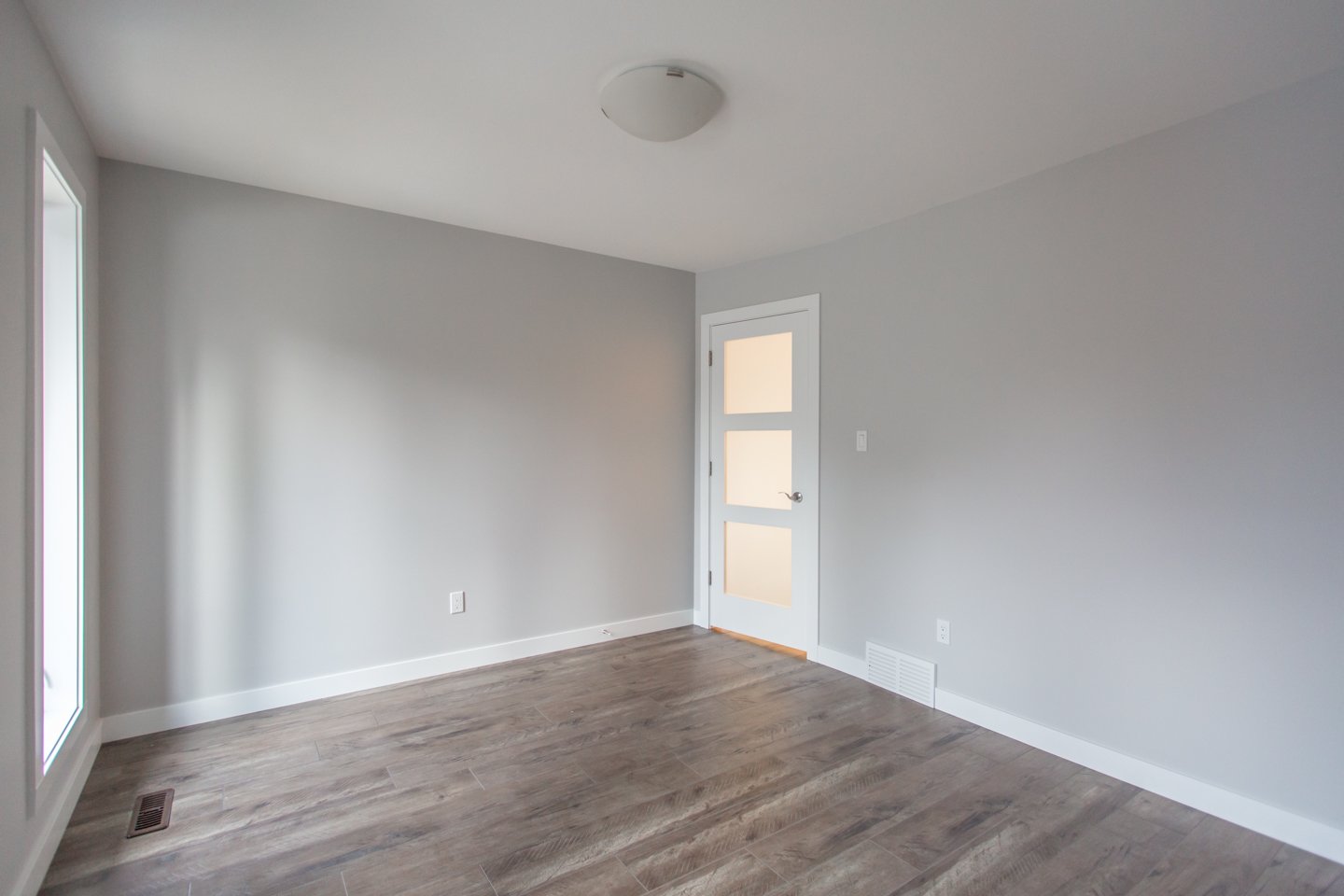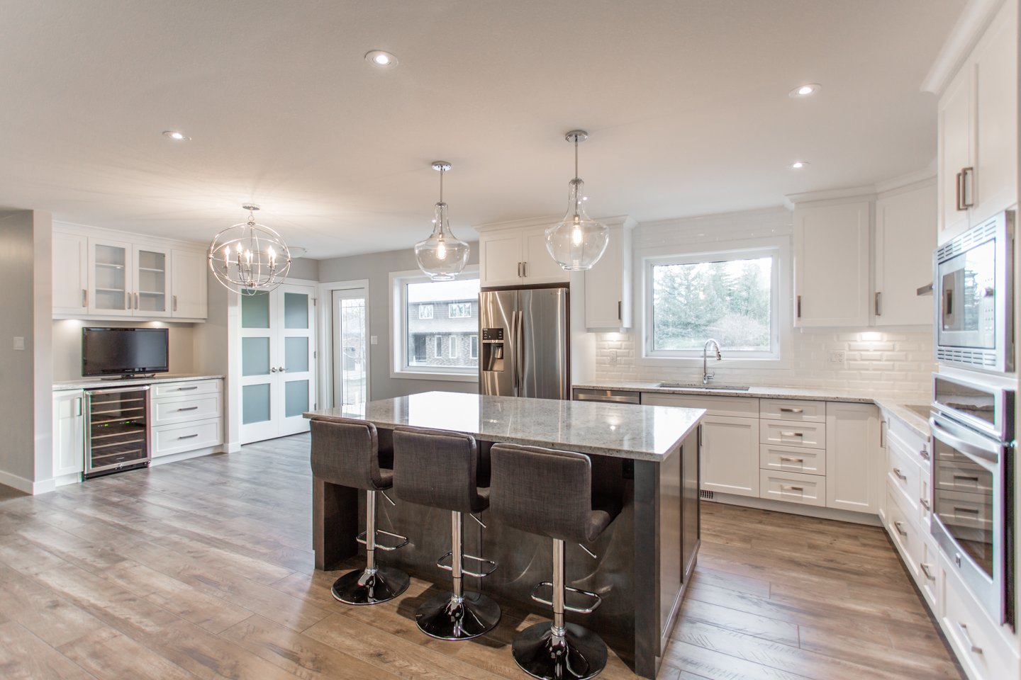 The entire main floor of this home was updated with carefully selected materials and finishes that give the space a modern, stylish, and high-end feel without the high-end price tag. A wall was removed in the kitchen/living area, which opened up the whole space, and the master ensuite was reconfigured for better flow and use of space.