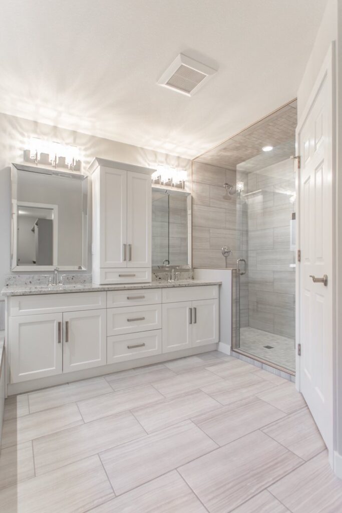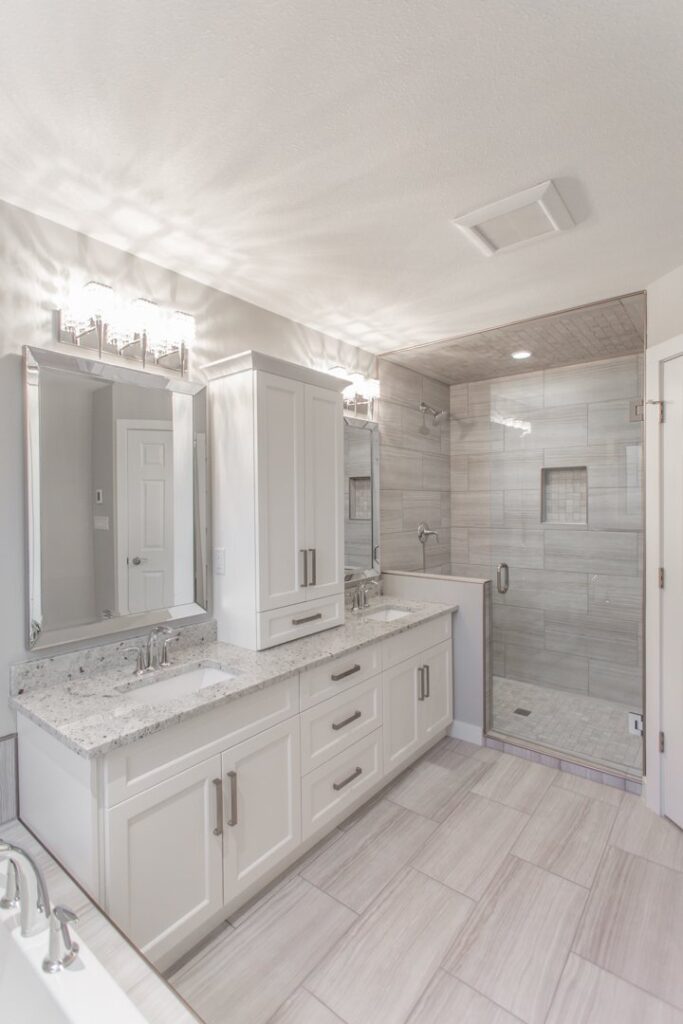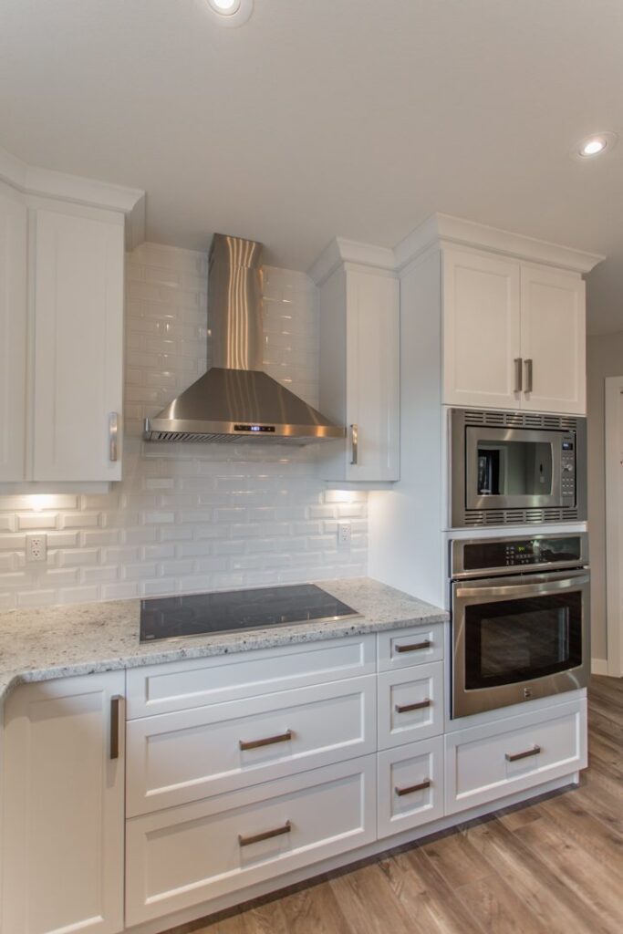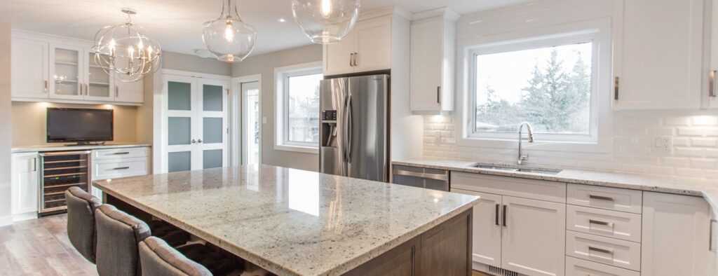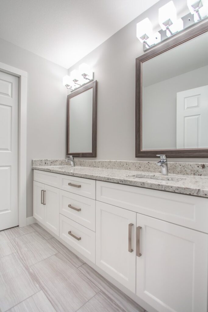 The entire main floor of this home was updated with carefully selected materials and finishes that give the space a modern, stylish, and high-end feel without the high-end price tag. A wall was removed in the kitchen/living area, which opened up the whole space, and the master ensuite was reconfigured for better flow and use of space.