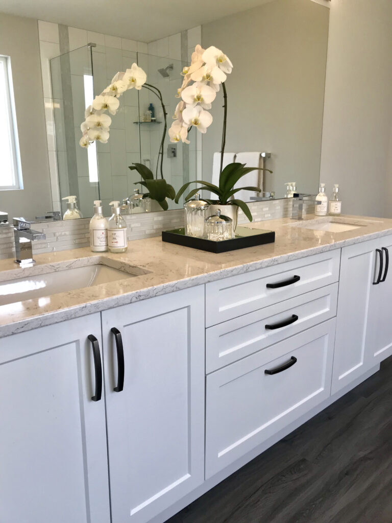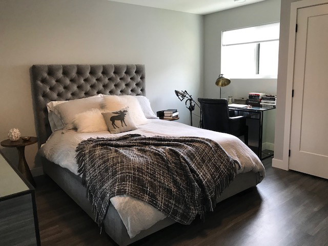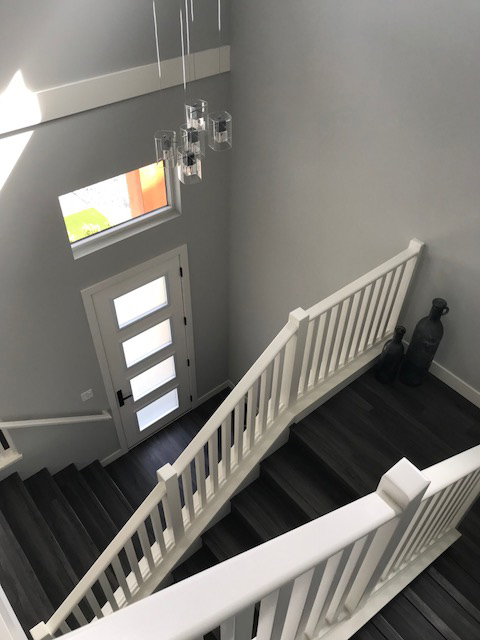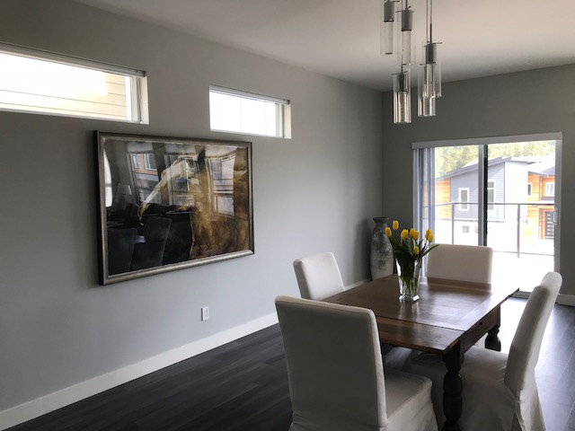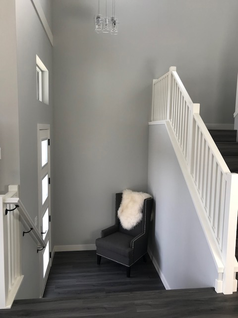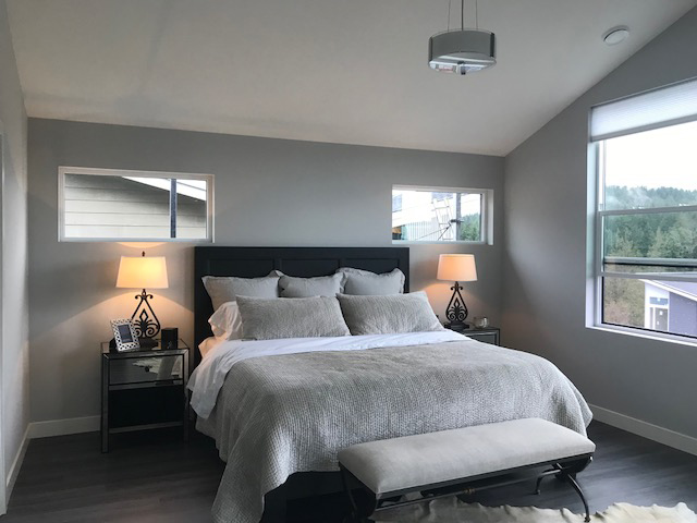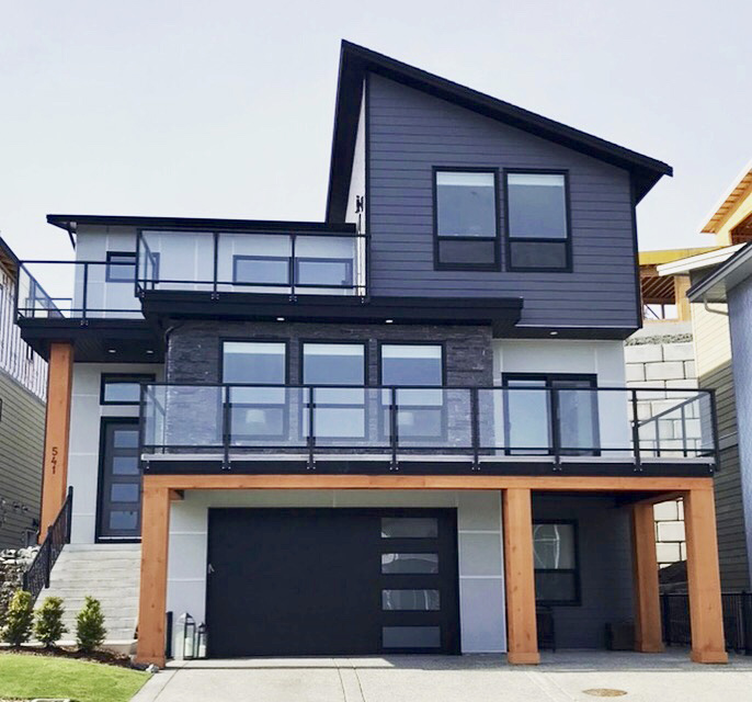 This home features a contemporary exterior, vaulted ceilings, and a modern open concept living space.