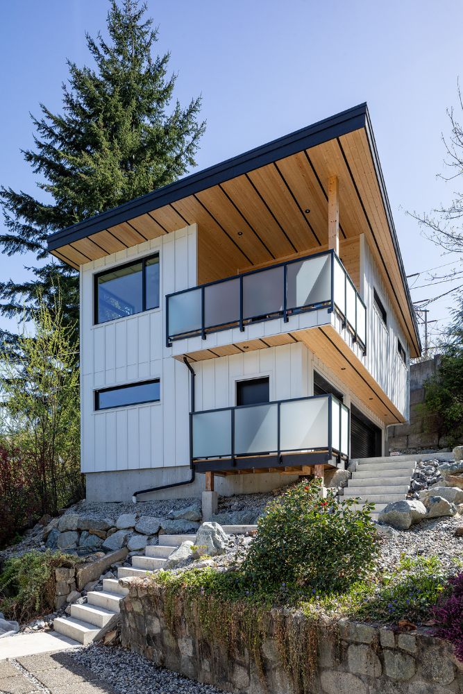 Due to the irregular lot shape and topography, the carriage house is located to the side and front of the primary residence. The building is client-occupied, so every detail was carefully thought out. Careful attention was taken to window locations and sizing to ensure that views were maximized while providing privacy and still letting in plenty of natural light. The air barrier and insulation were carefully planned which created an ultra energy-efficient building.