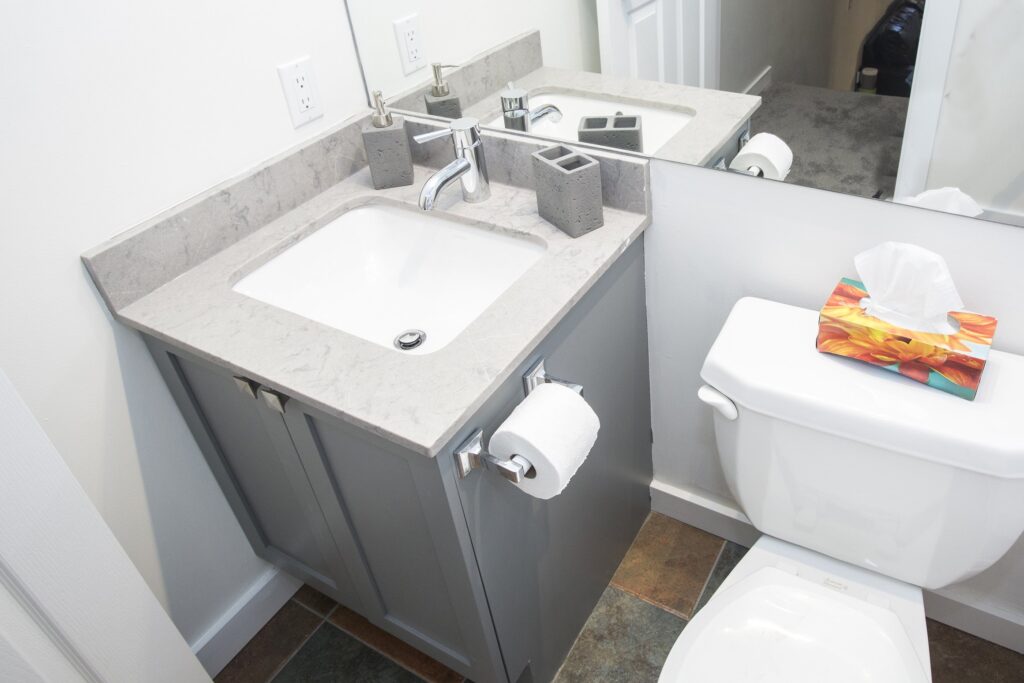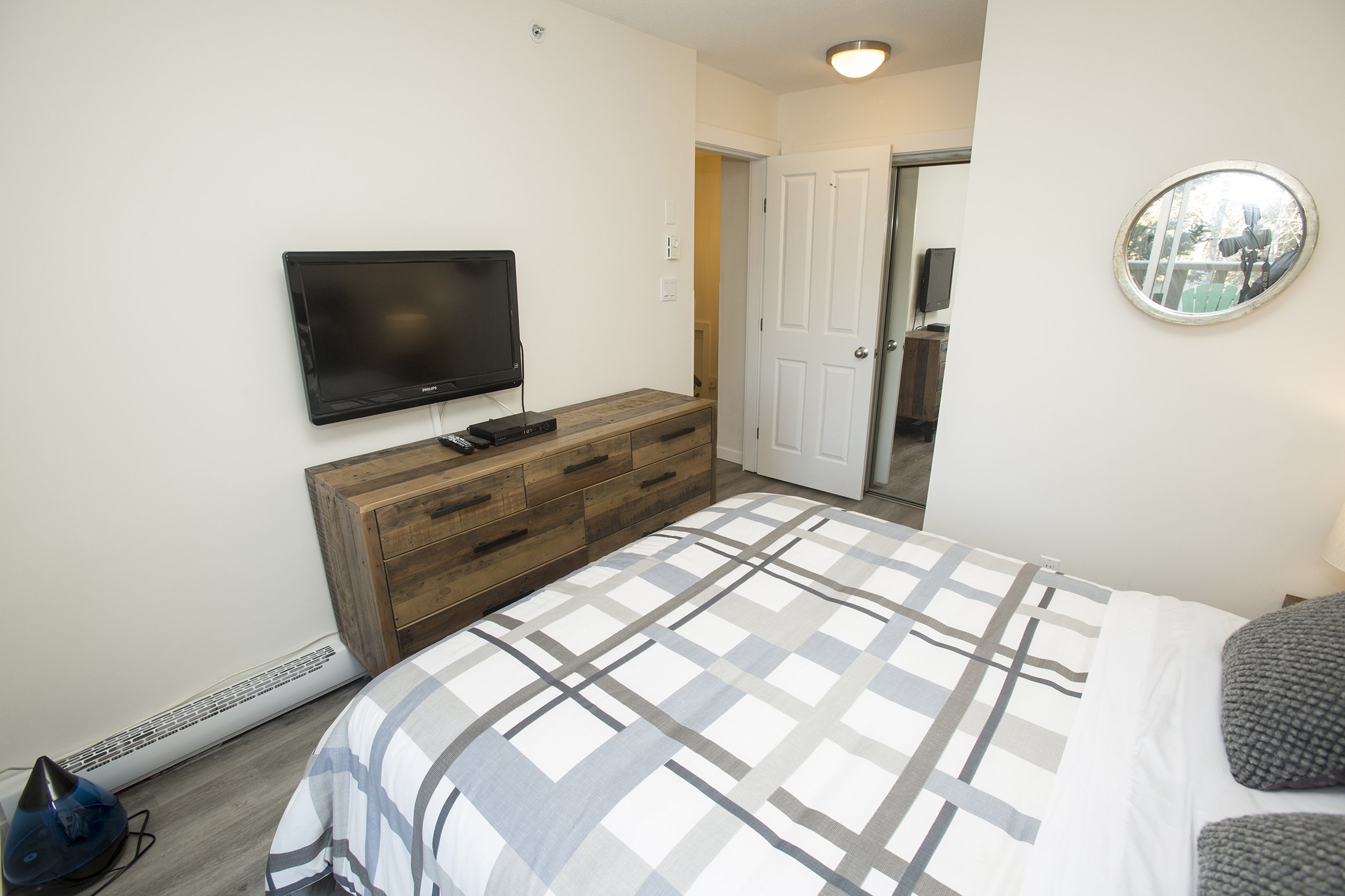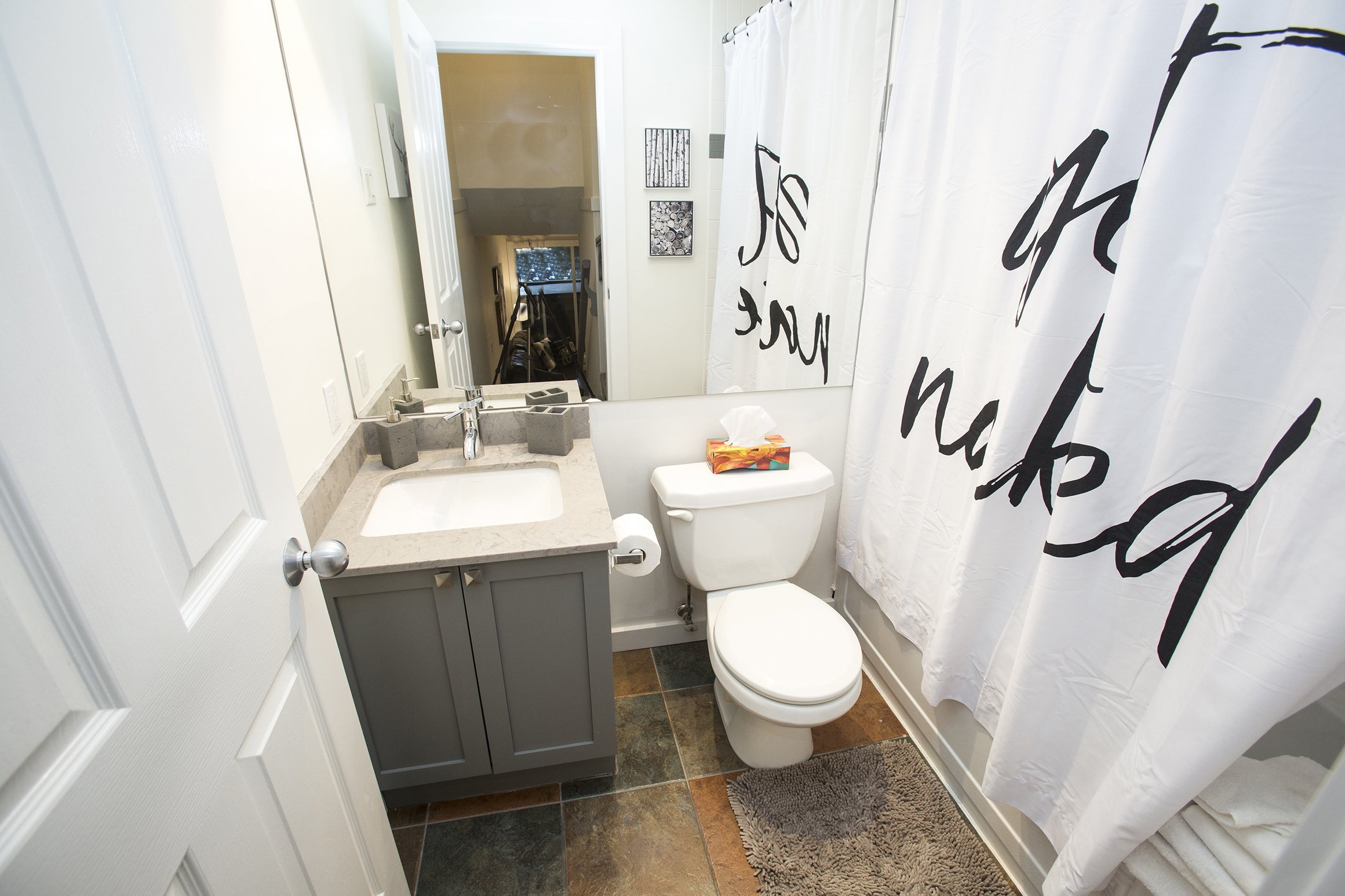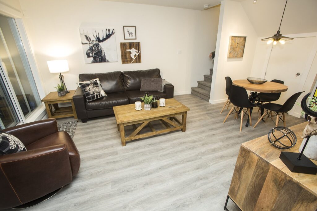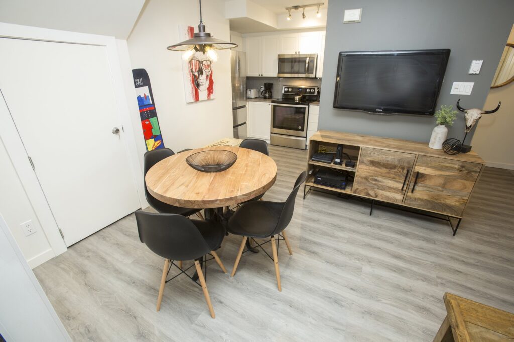 A fresh look on a classic Whistler condo. New flooring, paint and trim throughout. New counters and plumbing fixtures in the kitchen and bathroom while refinishing the existing cabinets instead of replacing them. New tile backsplash and fireplace surround with additional lighting throughout to really brighten up the unit.