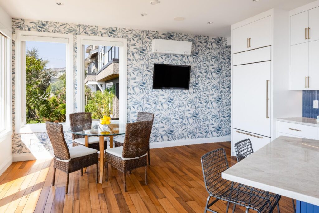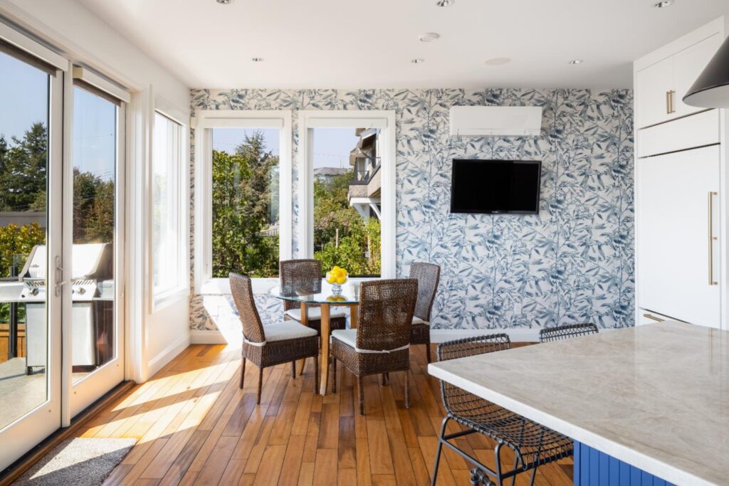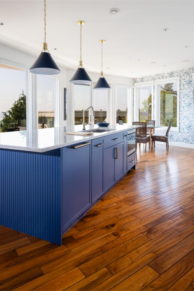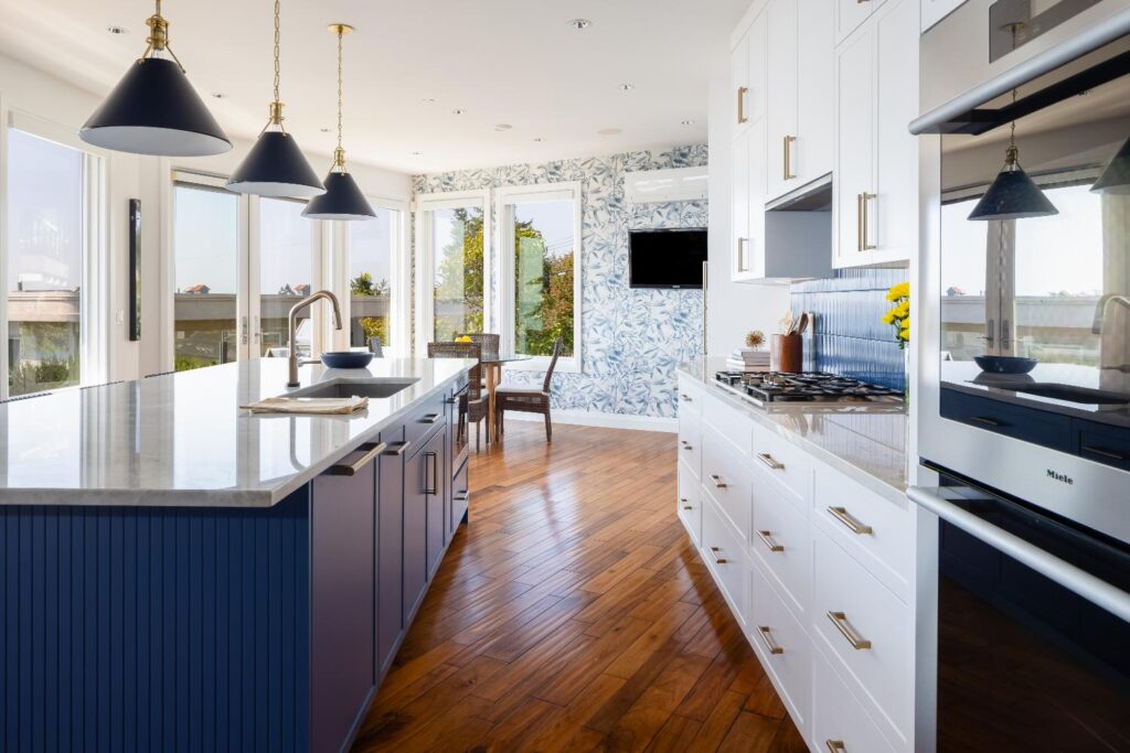Open-concept modern kitchen with panoramic views of Semiahmoo Bay