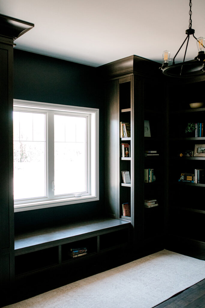 The client wanted to create a one of a kind craftsman style home with floor to ceiling custom millwork. The unique area of this home is a room dedicated to their love of reading and it was essential to create a library with built in shelving.